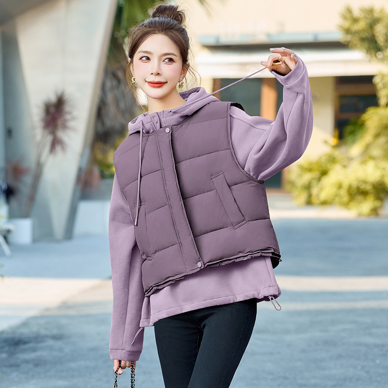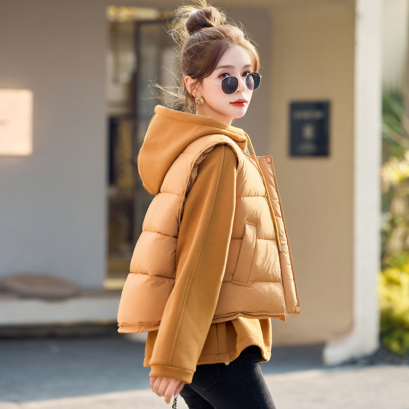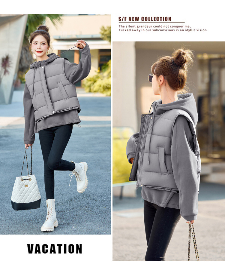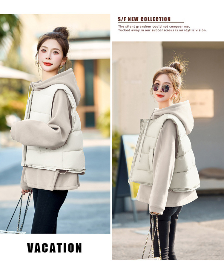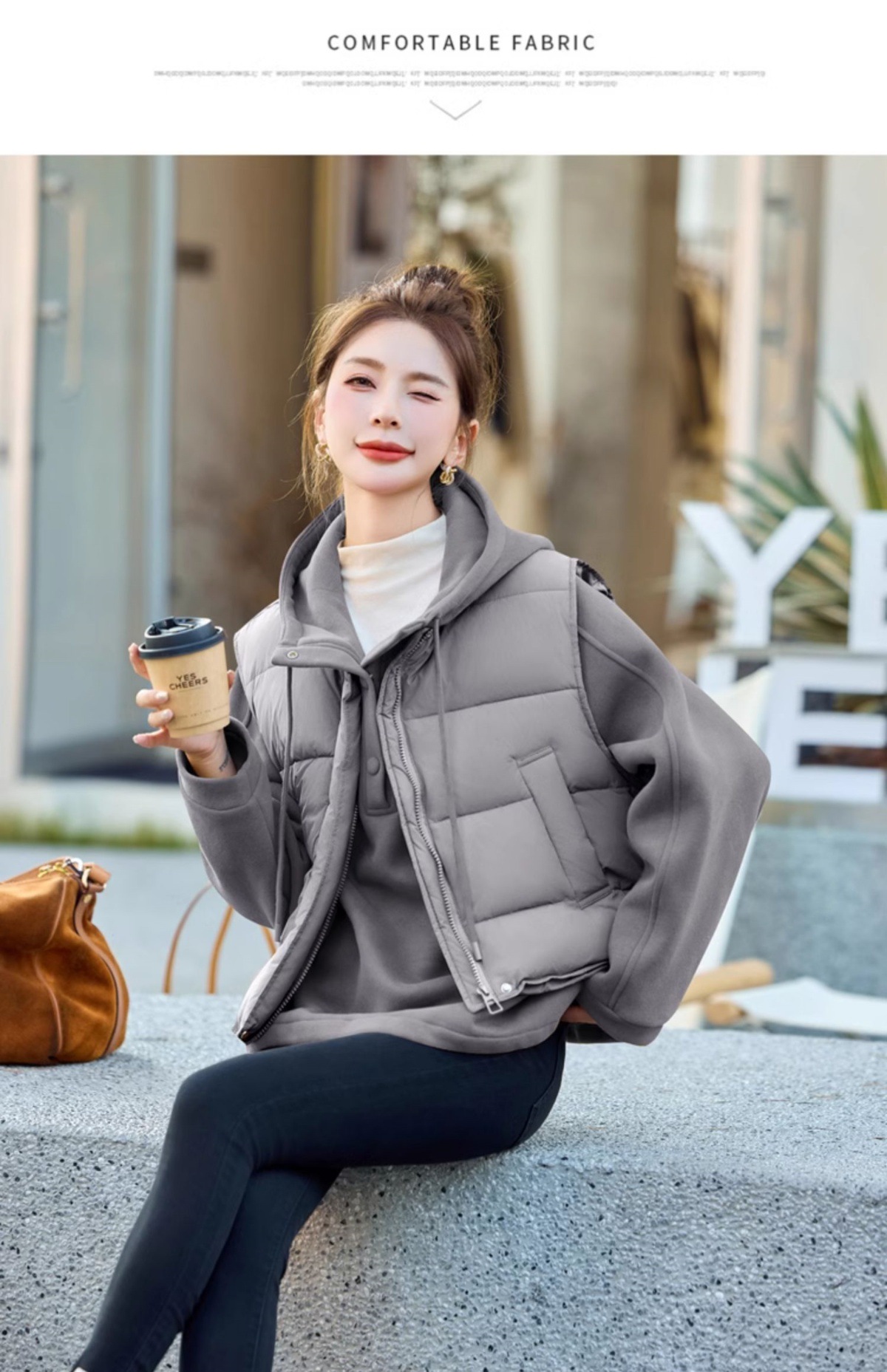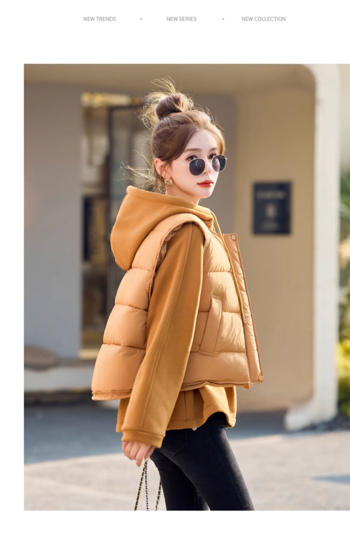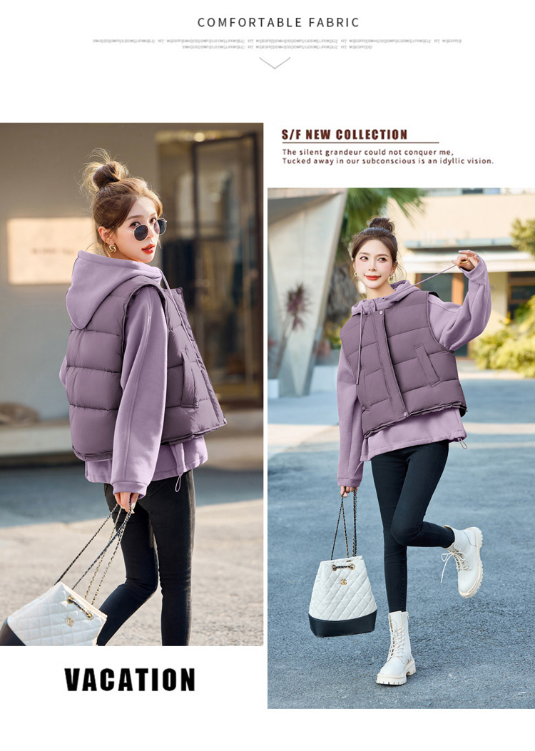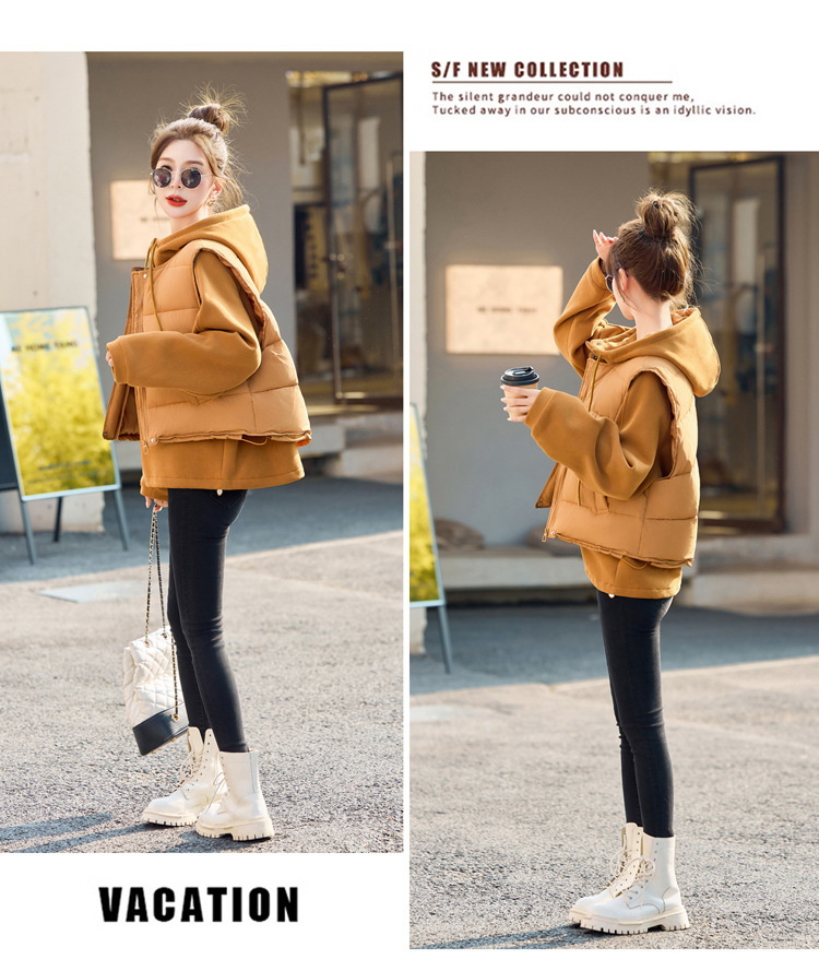 Bộ trang phục mùa đông này gồm áo khoác lông vũ và áo nỉ có mũ bên trong. Chất áo nỉ mềm mại, được dán thêm một lớp lông ấm áp. Áo khoác ngoài nhẹ nhưng giữ nhiệt tốt nhờ lớp lông vũ mỏng nhẹ. Kiểu dáng trẻ trung, năng động với mũ trùm tiện lợi. Có thể mặc nguyên bộ để giữ ấm toàn thân hoặc tách rời để phối với nhiều loại trang phục khác nhau. | Tên sản phẩm: Đồ Bộ Nữ Cả Bộ 2 Món Hàng Mùa Xuân Thu Đông Phong Cách Hàn Quốc - Thời Trang Nữ | Mã sản phẩm: L1898 - Giá: 3.030.000đ | Mã nhà sản xuất: HADA-G06Hình ảnh sản phẩm