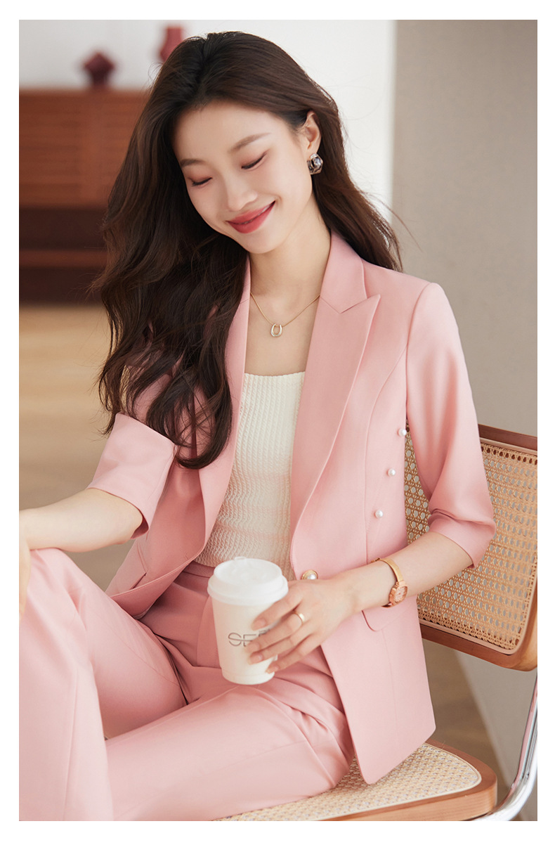 Áo khoác vest nữ dáng bảy phần tay, thiết kế cho công sở với tông màu hồng dịu nhẹ. Kiểu dáng thanh lịch, phù hợp mặc đi làm hoặc dự các buổi gặp mặt. Chất vải nhẹ, thoáng mát, tạo cảm giác dễ chịu khi mặc cả ngày. Dễ dàng phối cùng quần tây cùng tông hoặc chân váy để có bộ trang phục chỉn chu. Mặc kèm áo sơ mi trắng bên trong để trông lịch sự hơn. | Tên sản phẩm: Áo Vest Nữ Vest Hàng Mùa Xuân Thu Đông Đồ Công Sở - Thời Trang Nữ | Mã sản phẩm: L1899 - Giá: 1.020.000đ | Mã nhà sản xuất: SHRYIA-G03Hình ảnh sản phẩm