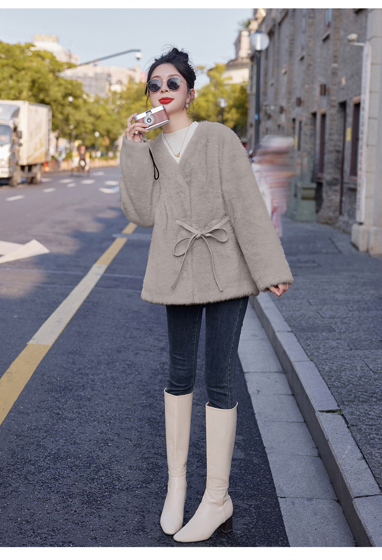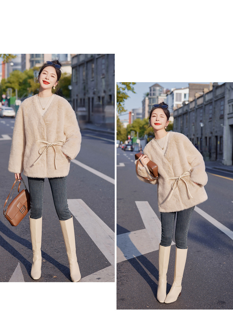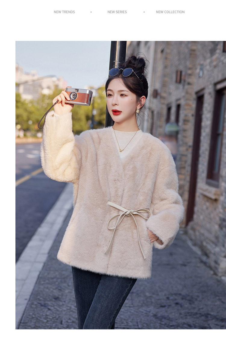Áo khoác ngắn dành cho nữ, có dây thắt eo tạo dáng thanh thoát. Chất liệu kết hợp giữa lớp lông mềm mại bên trong và mặt ngoài giả lông chồn, mang lại cảm giác ấm áp, nhẹ nhàng. Kiểu dáng năng động, phù hợp cho những ngày tiết trời se lạnh. Cách dùng đơn giản, chỉ cần khoác ngoài cùng áo thun hay áo len cơ bản, thắt dây tùy theo sở thích để tạo điểm nhấn. | Tên sản phẩm: Áo Khoác Nữ Hàng Mùa Xuân Thu Đông - Thời Trang Nữ | Mã sản phẩm: L1906 - Giá: 2.500.000đ | Mã nhà sản xuất: HADA-G05Hình ảnh sản phẩm