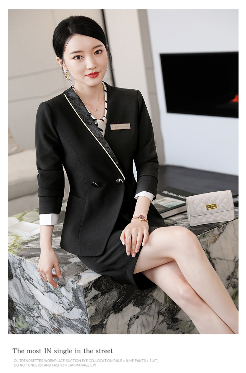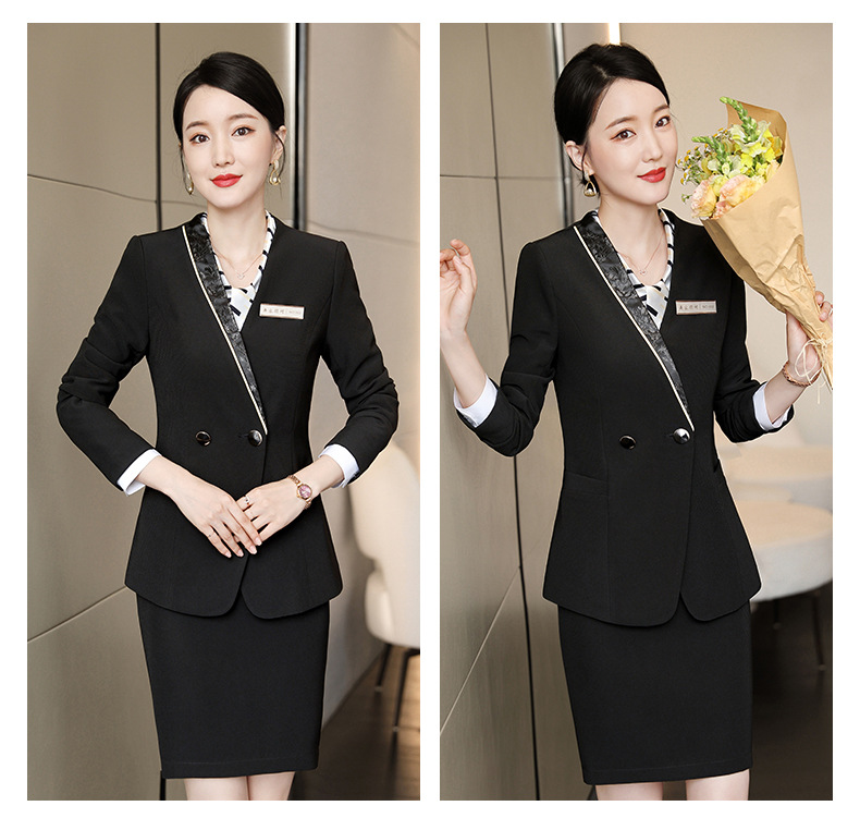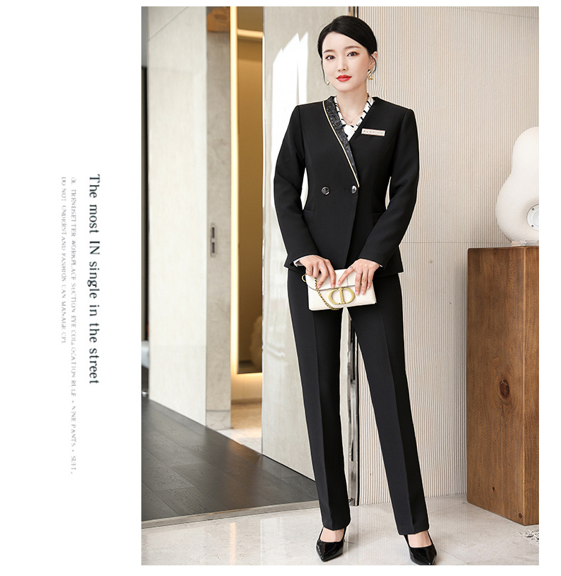 Bộ trang phục này dành cho phụ nữ trong môi trường làm việc như văn phòng, khách sạn hoặc tiệm chăm sóc sắc đẹp. Thiết kế gồm quần dài và chân váy ngắn, tạo vẻ ngoài lịch sự, gọn gàng. Chất vải co giãn nhẹ, thoáng mát giúp người mặc di chuyển thoải mái cả ngày dài. Có thể phối áo sơ mi hoặc áo kiểu bên trong để hoàn thiện bộ đồ. Phù hợp mặc khi tiếp khách hoặc làm các công việc dịch vụ. | Tên sản phẩm: Đồ Bộ Nữ Đồ Công Sở - Thời Trang Nữ | Mã sản phẩm: L1950 - Giá: 1.050.000đ | Mã nhà sản xuất: SHRYIA-G03Hình ảnh sản phẩm