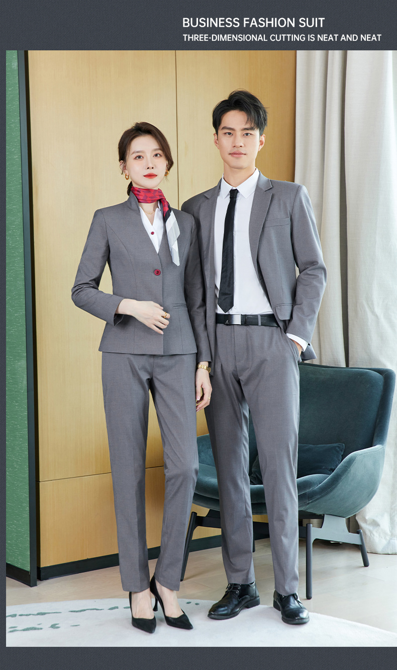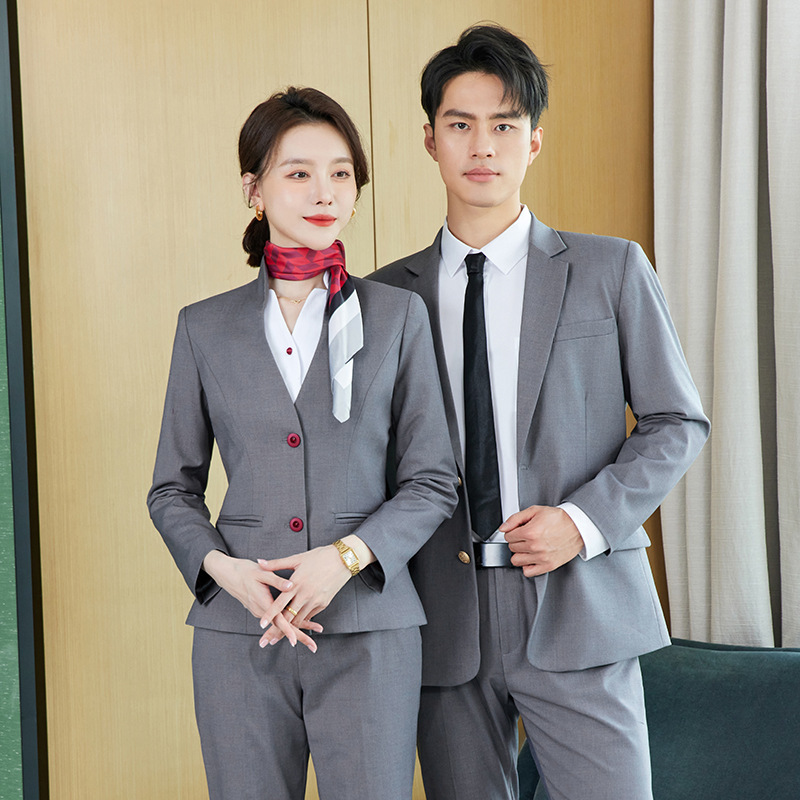 Bộ đồng phục này phù hợp cho nhân viên nhà hàng, khách sạn vào mùa xuân và mùa thu. Thiết kế chung cho cả nam và nữ với kiểu dáng tây phương kết hợp nét đẹp truyền thống, tạo vẻ chỉn chu, lịch sự. Chất vải co giãn nhẹ mang lại sự thoải mái khi vận động trong suốt ca làm việc. Sản phẩm dễ dàng giặt sạch và ít nhăn, giúp người mặc luôn gọn gàng khi tiếp đón khách hàng hoặc phục vụ tiệc. | Tên sản phẩm: Đồ Bộ Nữ Hàng Mùa Xuân Thu Đông Đồ Công Sở - Thời Trang Nữ | Mã sản phẩm: L1967 - Giá: 640.000đ | Mã nhà sản xuất: SHRYIA-G02Hình ảnh sản phẩm