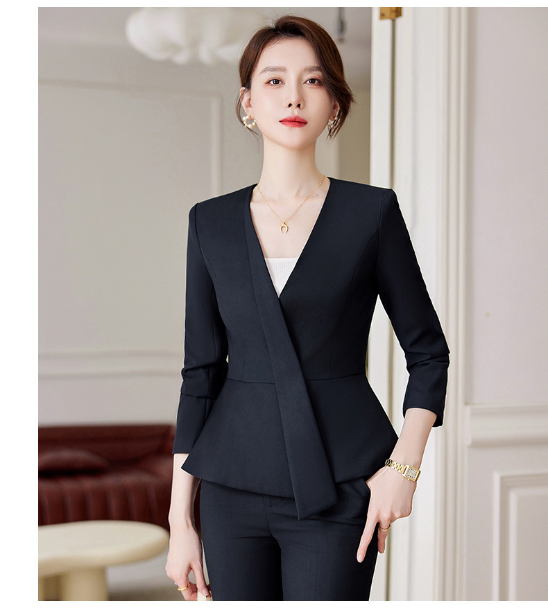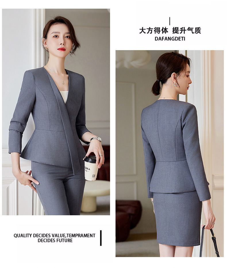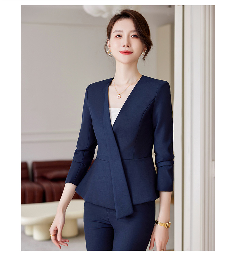 Bộ trang phục làm việc này có thiết kế dạng áo vét và quần tây, mang đến vẻ ngoại hình chỉn chu và chuyên nghiệp. Chất vải mềm mại, thoáng mát giúp người mặc thoải mái vận động suốt ngày dài. Sản phẩm phù hợp cho nhân viên tiếp tân tại các tiệm trang sức, spa hoặc môi trường văn phòng. Dễ dàng phối cùng áo sơ mi bên trong và giày tây lịch sự. Giặt máy nhẹ nhàng để giữ form vải lâu bền. | Tên sản phẩm: Đồ Bộ Nữ Đồ Công Sở - Thời Trang Nữ | Mã sản phẩm: L2035 - Giá: 1.520.000đ | Mã nhà sản xuất: SHRYIA-G04Hình ảnh sản phẩm