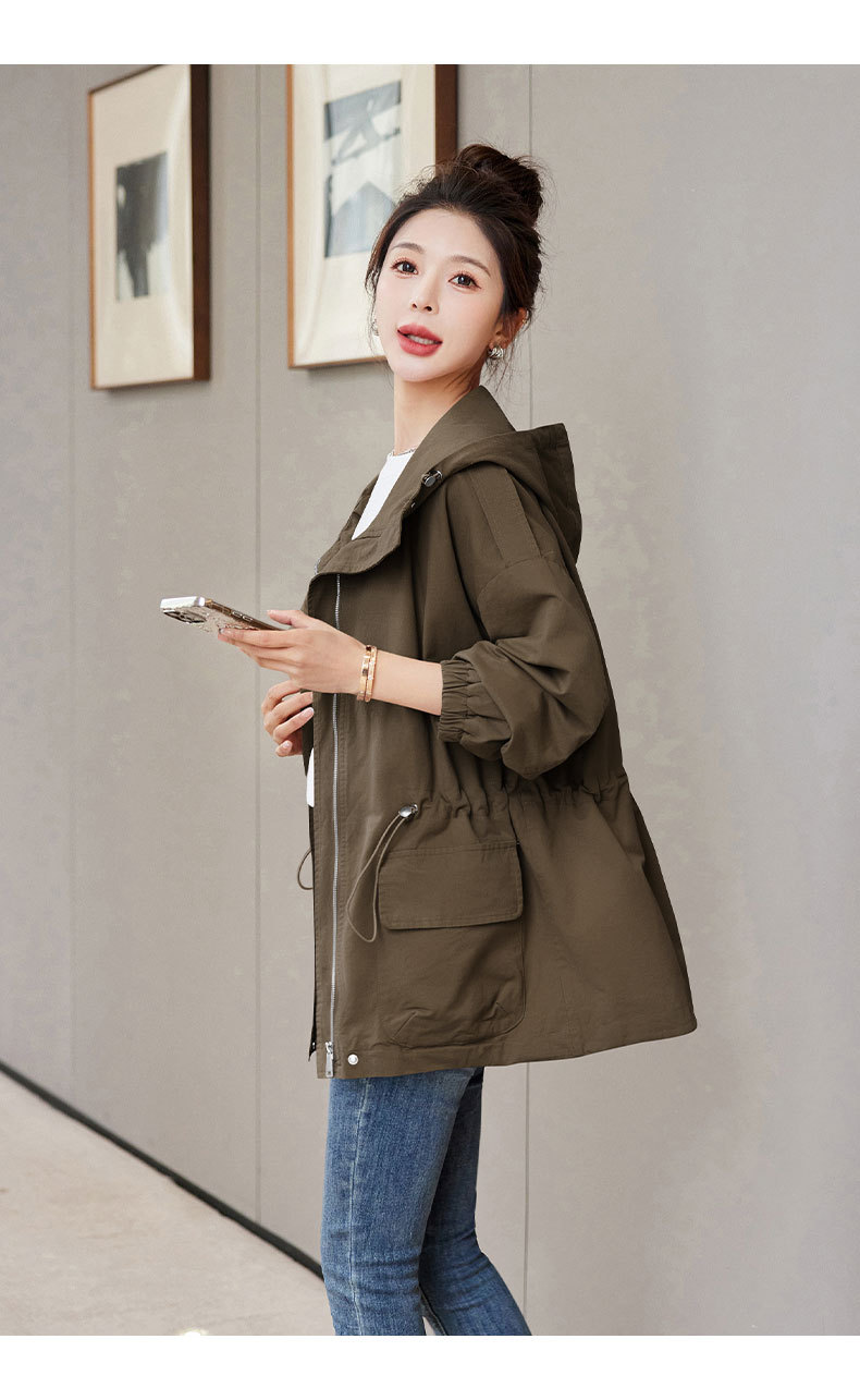 Áo khoác mỏng dành cho nữ, thiết kế ngắn vừa vặn phù hợp với nhiều dáng người. Sản phẩm có mũ trùm tiện lợi và phần eo được may ôm tinh tế, tạo điểm nhấn. Chất vải nhẹ, mềm mại, dễ dàng phối cùng nhiều trang phục khác nhau như quần jeans hay váy. Mặc thoải mái cho những ngày tiết trời mát mẻ, dạo phố hay đi làm. Dễ dàng giặt sạch và bảo quản. | Tên sản phẩm: Áo Khoác Nữ Mũ Liền Hàng Mùa Xuân Thu Đông - Thời Trang Nữ | Mã sản phẩm: L2128 - Giá: 1.780.000đ | Mã nhà sản xuất: HADA-G05Hình ảnh sản phẩm