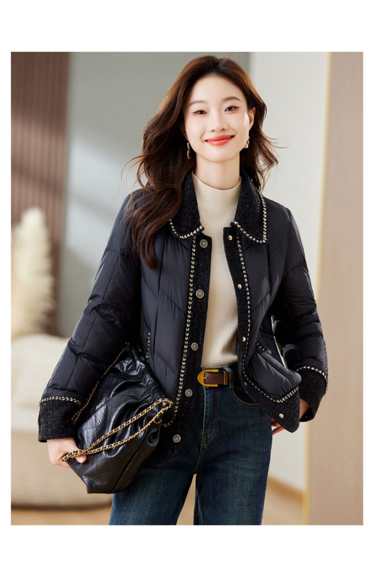 Áo khoác dáng ngắn dành cho các bạn nữ, thiết kế ôm vừa vặn giúp tôn dáng hiệu quả. Sản phẩm sử dụng chất liệu lông vũ nhẹ và ấm, phù hợp giữ nhiệt trong thời tiết lạnh. Kiểu dáng trẻ trung, hiện đại, dễ dàng phối cùng nhiều trang phục khác nhau. Bạn có thể mặc khi đi làm, đi chơi hoặc dạo phố. Chỉ cần giặt nhẹ và phơi khô tự nhiên để bảo quản chất liệu tốt nhất. | Tên sản phẩm: Áo Khoác Nữ Hàng Mùa Xuân Thu Đông - Thời Trang Nữ | Mã sản phẩm: L2148 - Giá: 3.560.000đ | Mã nhà sản xuất: HADA-G06Hình ảnh sản phẩm