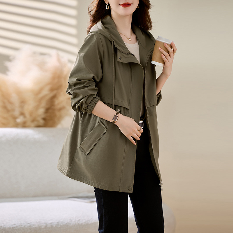 Áo khoác nữ dáng dài vừa, thiết kế thời trang cho mùa xuân và mùa thu năm nay. Áo có mũ trùm tiện lợi tạo phong cách trẻ trung, năng động. Kiểu dáng phù hợp cho các bạn nữ có chiều cao khiêm tốn, dễ dàng phối với nhiều loại trang phục khác nhau. Chất liệu nhẹ, thoáng khí, mang lại sự thoải mái khi mặc trong những ngày tiết trời mát mẻ. Có thể mặc đi làm, đi chơi hoặc dạo phố. | Tên sản phẩm: Áo Khoác Nữ Mũ Liền Hàng Mùa Xuân Thu Đông Phong Cách Hàn Quốc - Thời Trang Nữ | Mã sản phẩm: L2157 - Giá: 1.640.000đ | Mã nhà sản xuất: HADA-G05Hình ảnh sản phẩm