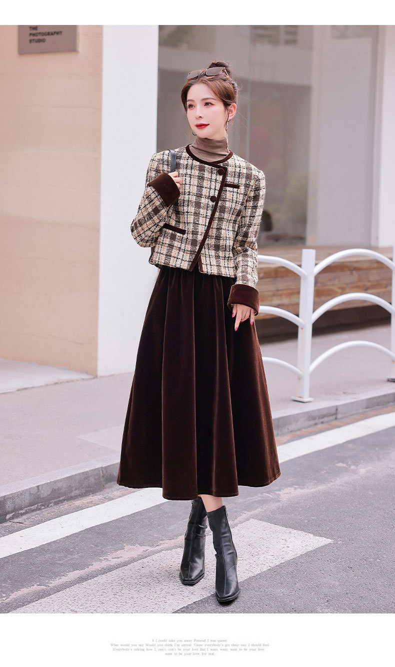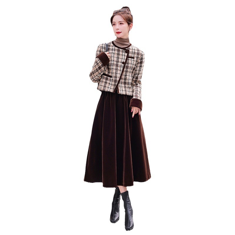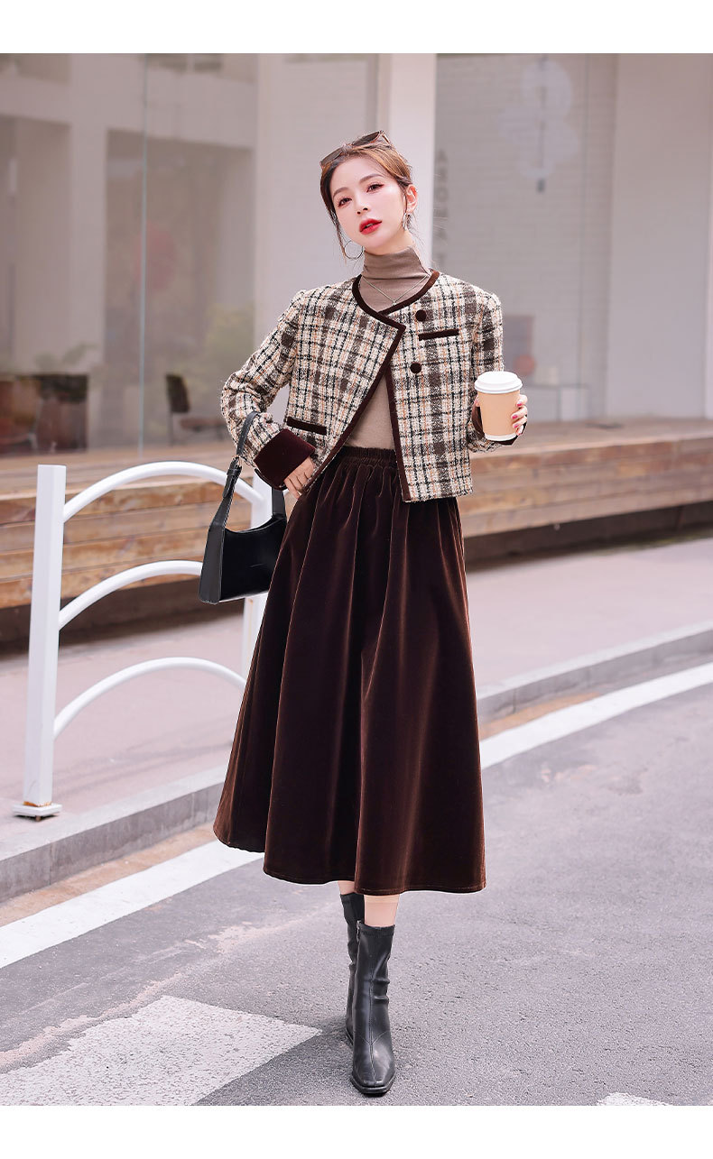 Bộ trang phục hai mảnh này gồm áo khoác kiểu dáng vừa vặn và chân váy dài đến gối, tạo nên một tổng thể hài hòa. Chất liệu vải dày dặn, giữ ấm tốt cho những ngày thu đông. Kiểu dáng thiết kế có điểm nhấn ở đường cắt và khuy áo, mang đến vẻ ngoại thanh lịch và hiện đại. Bạn có thể mặc nguyên bộ để đi làm, đi học hoặc phối cùng các áo len, áo phông cơ bản để tạo sự mới mẻ. | Tên sản phẩm: Áo Khoác Nữ Cả Bộ 2 Món Hàng Mùa Xuân Thu Đông - Thời Trang Nữ | Mã sản phẩm: L2166 - Giá: 2.120.000đ | Mã nhà sản xuất: HADA-G05Hình ảnh sản phẩm