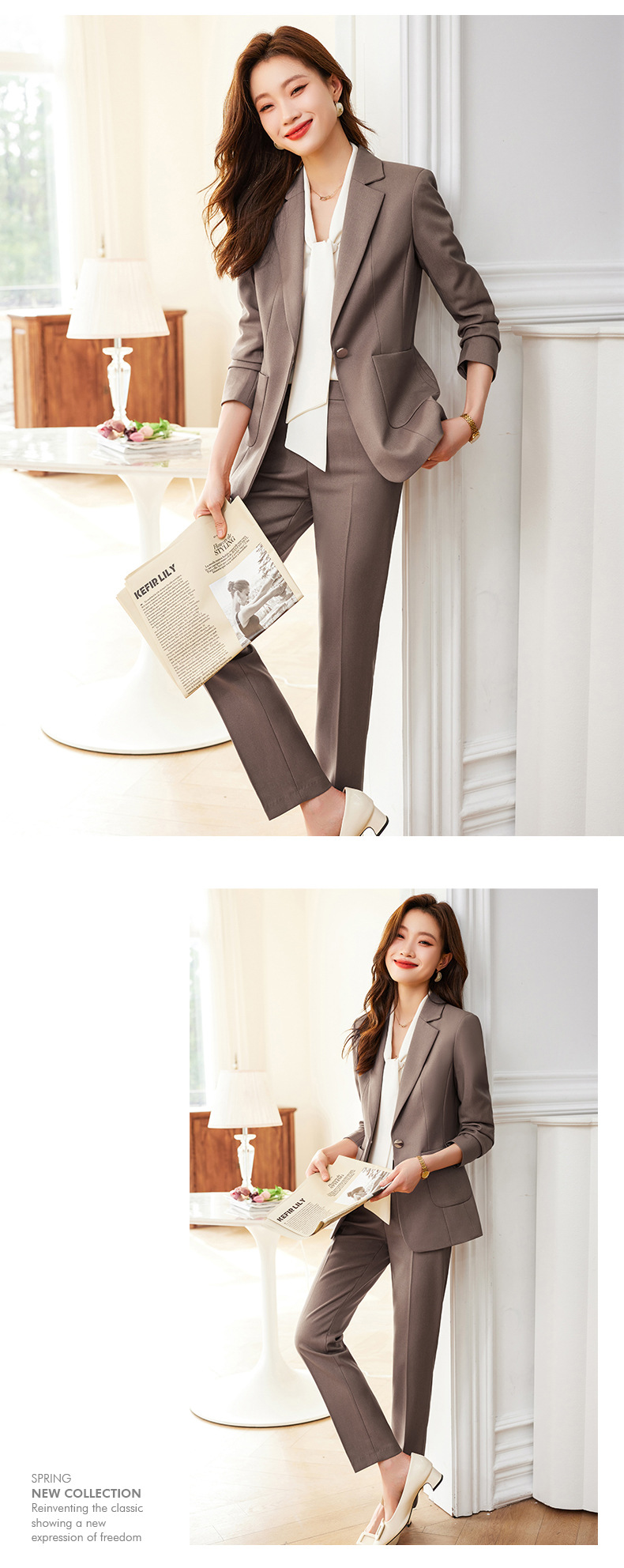 Bộ trang phục hai mảnh này mang phong cách lịch sự, phù hợp cho môi trường công sở vào mùa thu. Áo kiểu có thiết kế tinh tế, kết hợp cùng quần ống nhỏ ôn tôn dáng. Chất vải mềm mại tạo cảm giác dễ chịu khi mặc. Bạn có thể phối cùng áo sơ mi bên trong hoặc mặc trực tiếp, dễ dàng tạo nên những bộ trang phục chỉn chu cho ngày làm việc. Kiểu dáng đơn giản nhưng giúp tôn lên vẻ tự tin và năng động. | Tên sản phẩm: Áo Vest Nữ Vest Cả Bộ 2 Món Hàng Mùa Xuân Thu Đông Đồ Công Sở - Thời Trang Nữ | Mã sản phẩm: L2167 - Giá: 1.200.000đ | Mã nhà sản xuất: SHRYIA-G04Hình ảnh sản phẩm