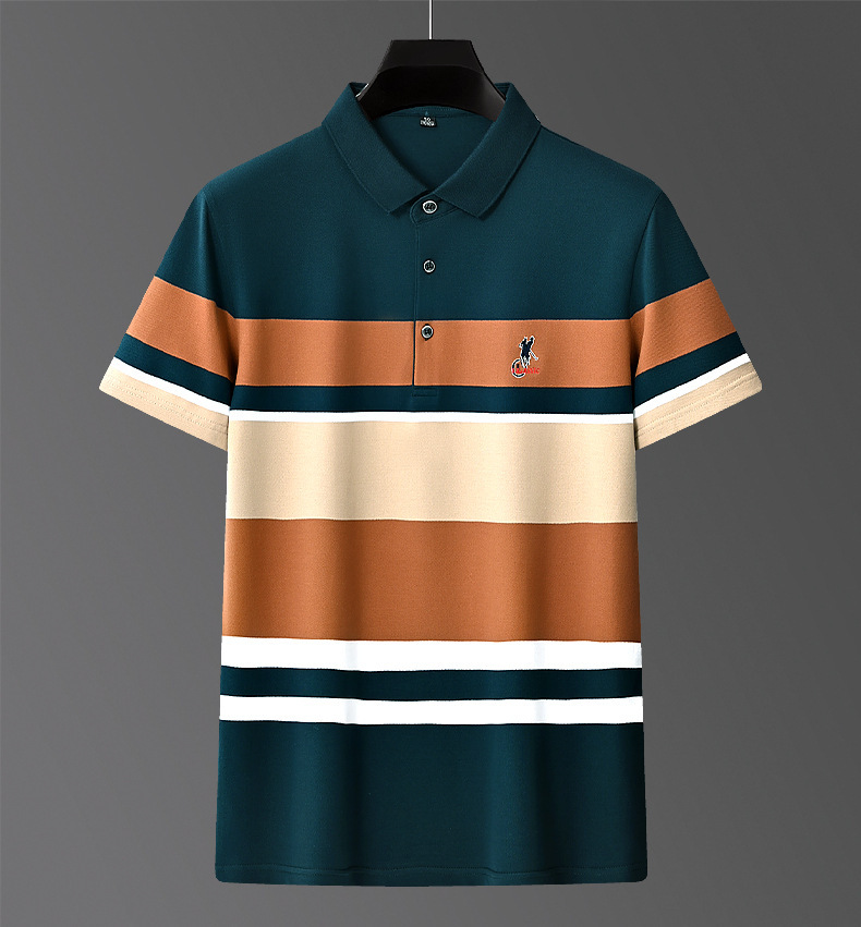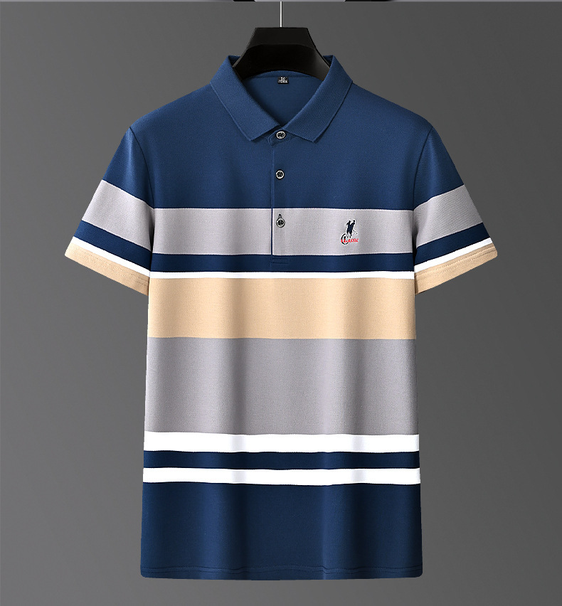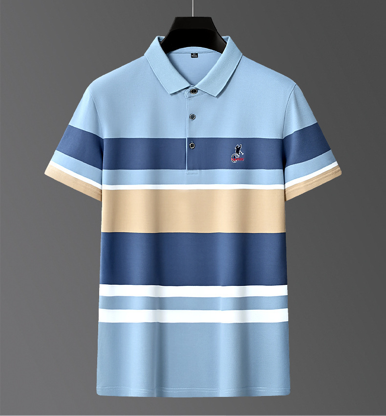 Áo polo ngắn tay thiết kế dáng ôm vừa vặn, phù hợp cho nam giới trung niên trong những dịp làm việc hay sinh hoạt thường ngày. Chất vải mỏng nhẹ thấm hút mồ hôi tốt, kết hợp các lỗ thông hơi giúp mang lại cảm giác mát mẻ suốt ngày hè. Điểm nổi bật là họa tiết thêu tinh tế cùng các đường sọc trang nhã tạo nên vẻ lịch sự. Có thể phối cùng quần tây hoặc quần jeans để hoàn thiện bộ trang phục. | Tên sản phẩm: Áo Sơ Mi Nam Ngắn Tay Thêu Họa Tiết Hoa Thoáng Khí Hàng Mùa Hè Trung Niên - Thời Trang Nam | Mã sản phẩm: L2180 - Giá: 670.000đ | Mã nhà sản xuất: GUDN-G02Hình ảnh sản phẩm