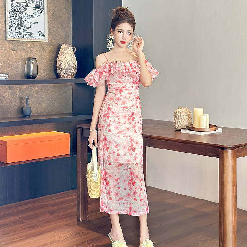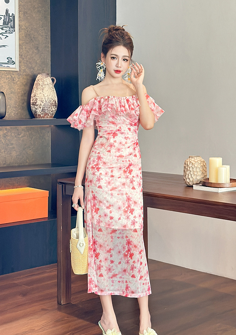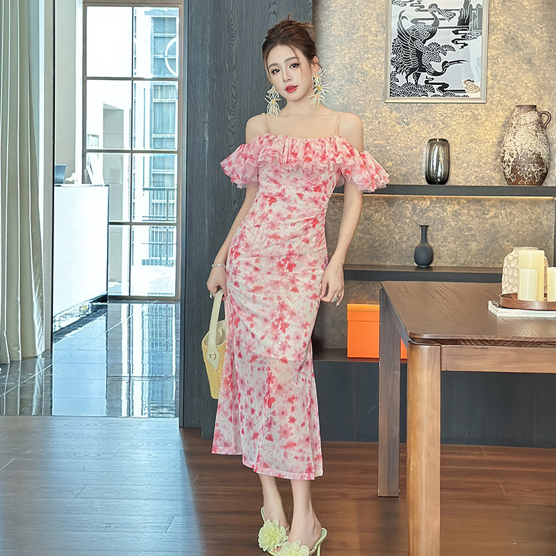 Chiếc đầm dành cho nữ này mang phong cách thiết kế mới. Váy có phần cổ vuông thanh lịch, điểm nhấn là đường viền tay xòe mềm mại. Dáng đầm ôn nhẹ cơ thể và xòe ra ở phần gấu như đuôi cá, tạo nên sự duyên dáng. Sản phẩm có họa tiết hoa nhỏ in khắp thân váy. Bạn có thể mặc nó một mình hoặc kết hợp với áo khoác mỏng để đi chơi, dự tiệc. | Tên sản phẩm: Áo Hai Dây Nữ Dáng Ôm Họa Tiết Hoa Hai Dây Hở Vai - Thời Trang Nữ | Mã sản phẩm: L2215 - Giá: 1.380.000đ | Mã nhà sản xuất: CHDG-G04Hình ảnh sản phẩm