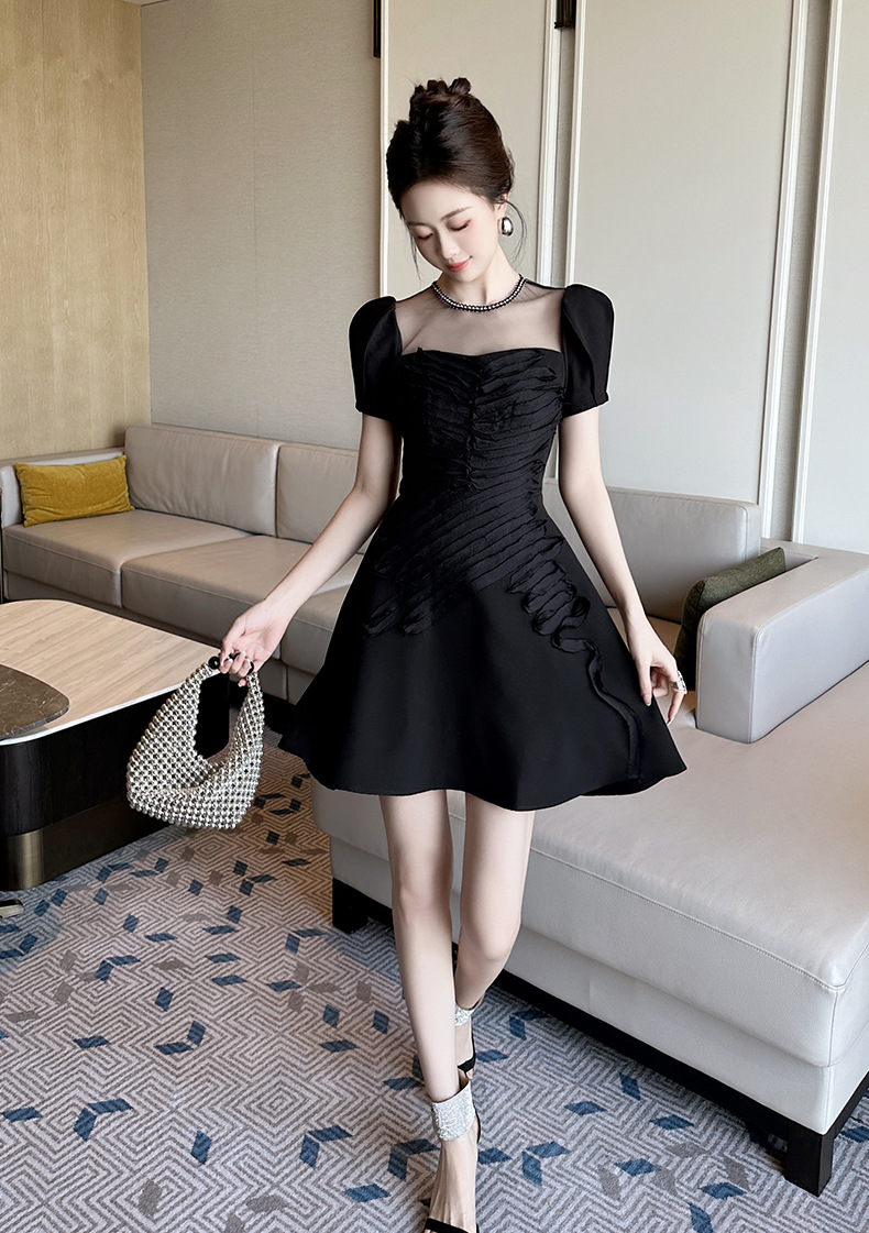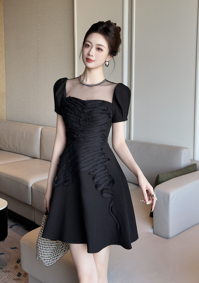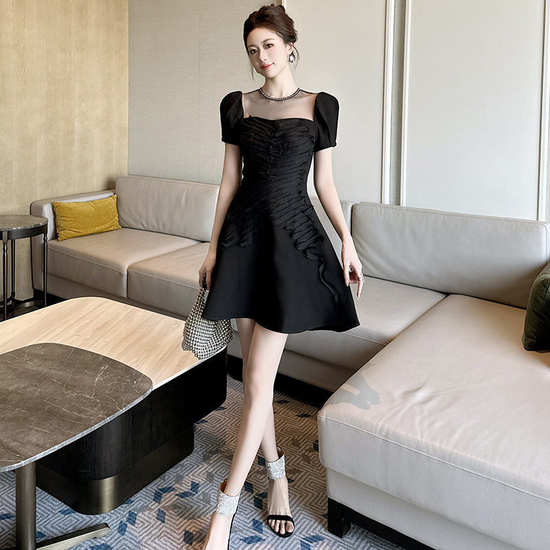 Chiếc đầm ngắn tay màu đen lấy cảm hứng từ phong cách cổ điển. Thiết kế ôm nhẹ ở eo tôn dáng, kết hợp cùng các đường nhún tinh tế tạo điểm nhấn. Chất vải mềm mại mang lại sự thoải mái khi mặc. Sản phẩm phù hợp cho nhiều dịp đi chơi, dạo phố hay gặp mặt bạn bè. Có thể phối cùng giày búp bê hoặc giày gót nhọn để hoàn thiện bộ trang phục. | Tên sản phẩm: Váy Đầm Liền Thân Nữ Hàng Mùa Hè Phục Cổ Cổ Điển - Thời Trang Nữ | Mã sản phẩm: L2223 - Giá: 1.380.000đ | Mã nhà sản xuất: CHDG-G04Hình ảnh sản phẩm