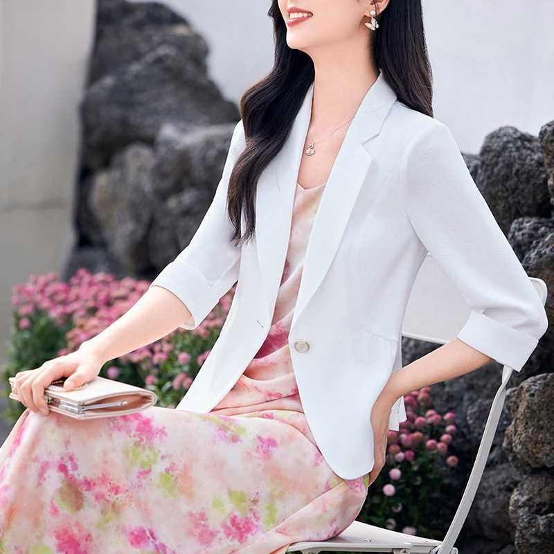 Áo khoác kiểu dáng ngắn, tay dài ba phần tư, phù hợp mặc trong mùa hè. Chất vải có đường vân mờ cùng các nếp gấp xếp tạo nên điểm nhấn riêng. Kiểu dáng trẻ trung, dễ phối đồ khi đi làm hoặc dạo phố. Có thể mặc cùng quần tây, chân váy hoặc quần jeans. Giúp người mặc trông thanh lịch và tự tin hơn trong nhiều hoàn cảnh. | Tên sản phẩm: Áo Vest Nữ Vest Hàng Mùa Hè - Thời Trang Nữ | Mã sản phẩm: L2242 - Giá: 1.000.000đ | Mã nhà sản xuất: SHRYIA-G03Hình ảnh sản phẩm