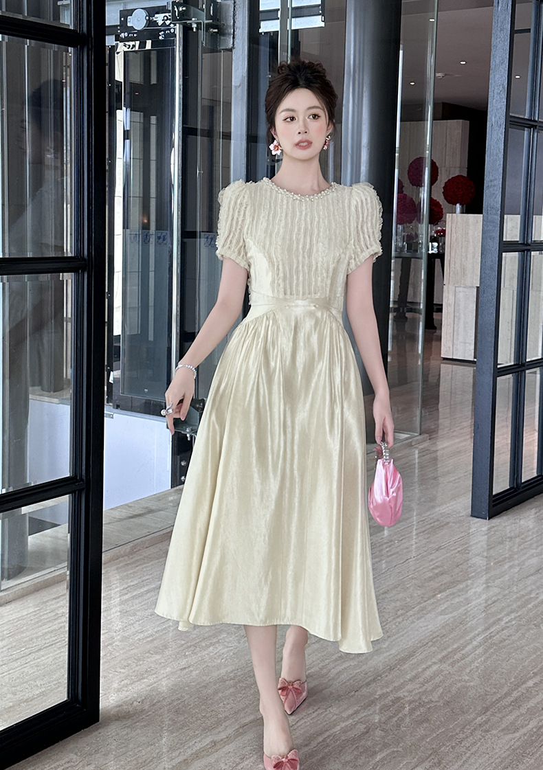 Chiếc đầm dáng dài cho nàng thêm phần duyên dáng với điểm nhấn là phần tay bồng bềnh. Thiết kế này có eo ôm tôn dáng, cùng phần chân váy xòe rộng tạo cảm giác nhẹ nhàng, thanh thoát. Chất vải mềm mại giúp người mặc cảm thấy dễ chịu trong những ngày hè. Rất phù hợp để đi dạo, gặp gỡ bạn bè hay dự các buổi tiệc nhẹ. Bạn có thể phối cùng giày sandal hoặc giày bệt để hoàn thiện bộ trang phục. | Tên sản phẩm: Váy Đầm Liền Thân Dáng Dài Nữ Tay Phồng Hàng Mùa Hè - Thời Trang Nữ | Mã sản phẩm: L2249 - Giá: 1.520.000đ | Mã nhà sản xuất: CHDG-G04Hình ảnh sản phẩm