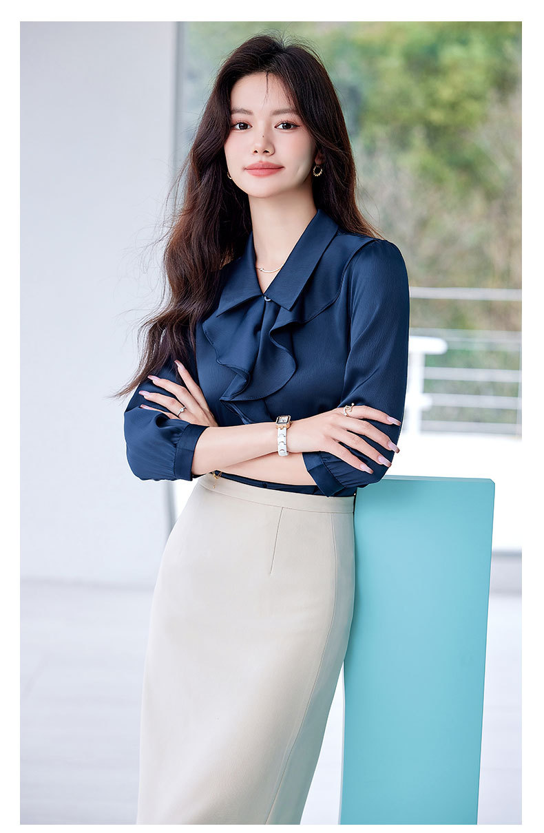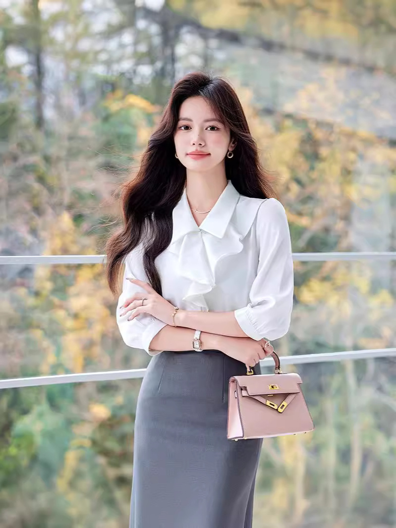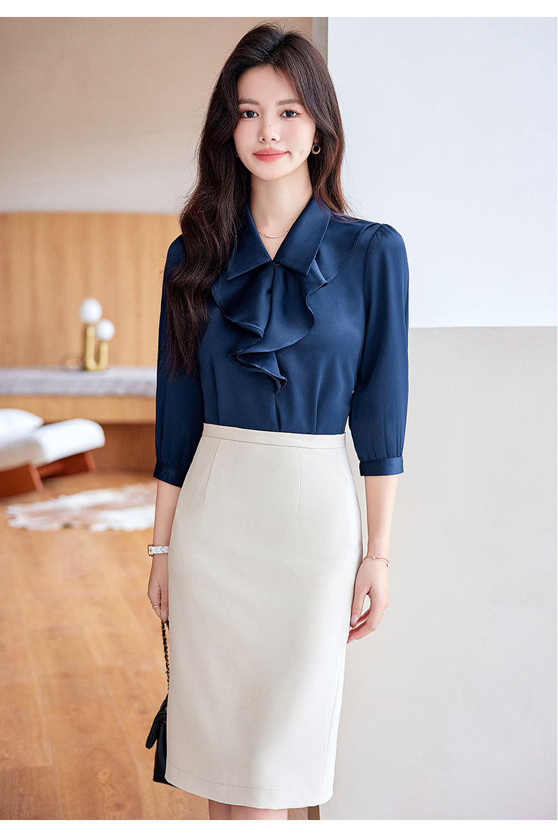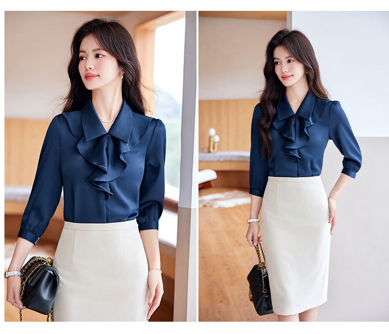 Bộ trang phục này gồm áo sơ mi dài tay và chân váy, có màu xanh biển sẫm rất dễ phối đồ. Áo được thiết kế với những đường cắt hiện đại, tạo điểm nhấn riêng nhưng vẫn rất phù hợp cho môi trường công sở. Chất vải mềm mại, thoáng mát giúp người mặc cảm thấy dễ chịu. Có thể mặc nguyên bộ để đồng bộ, hoặc tách riêng từng món để kết hợp với các trang phục khác. Phù hợp sử dụng trong nhiều dịp khác nhau. | Tên sản phẩm: Đồ Bộ Nữ Dài Tay Hàng Mùa Xuân Thu Đông Đồ Công Sở - Thời Trang Nữ | Mã sản phẩm: L2291 - Giá: 730.000đ | Mã nhà sản xuất: SHRYIA-G02Hình ảnh sản phẩm
