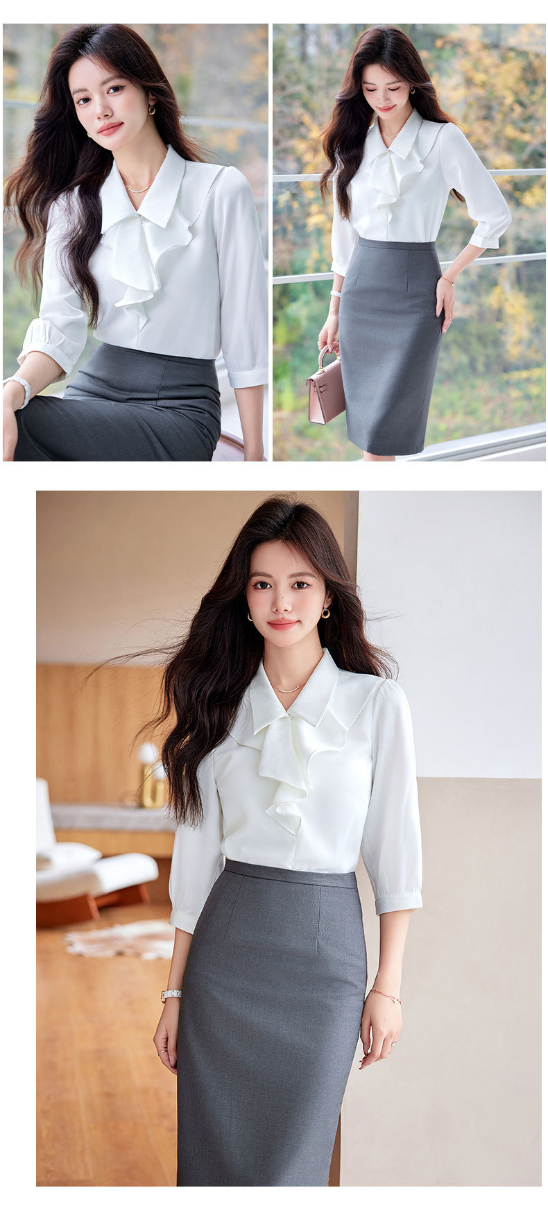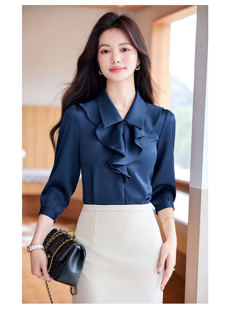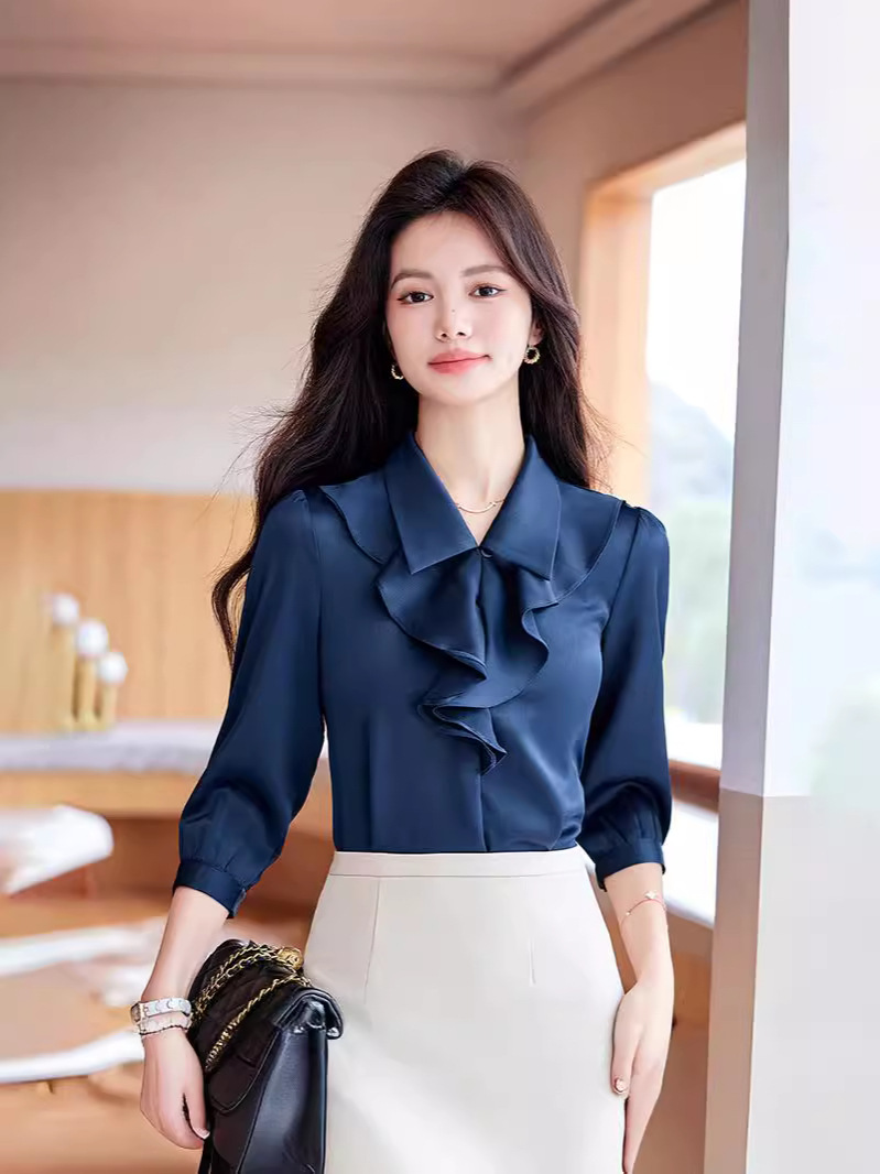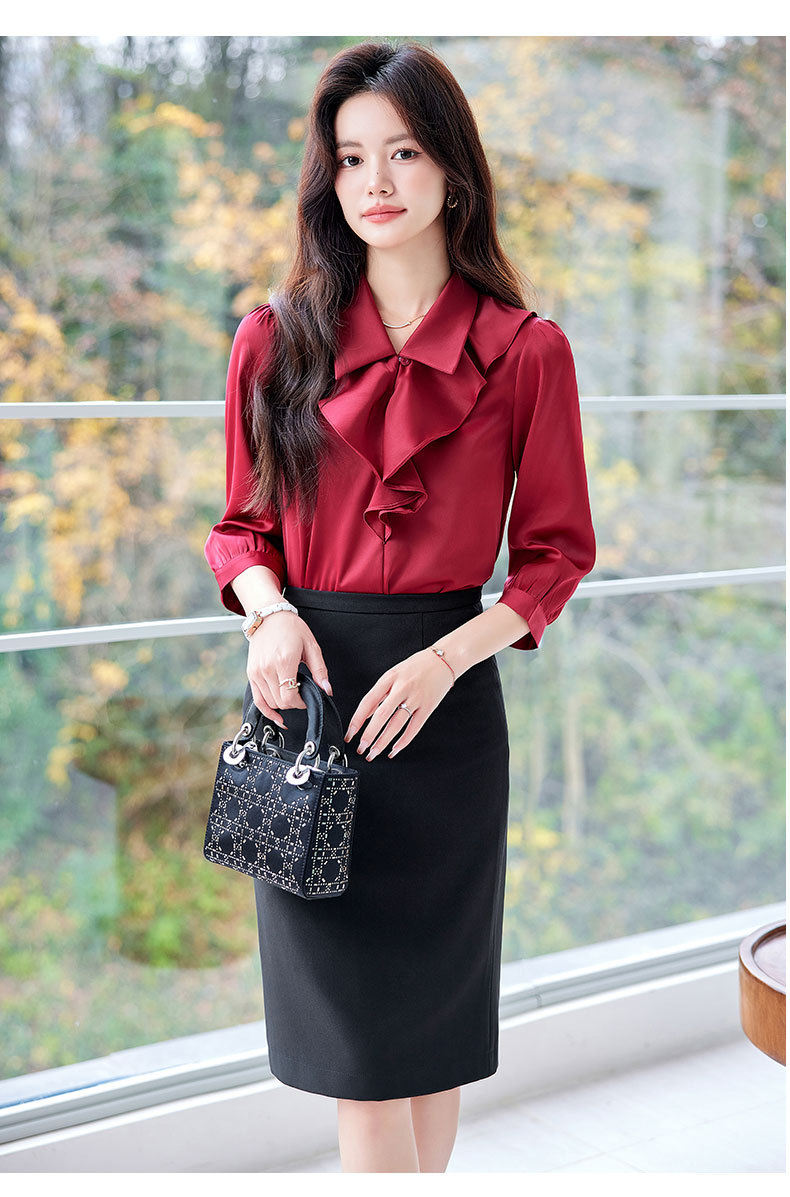 Bộ trang phục này gồm áo sơ mi dài tay và chân váy, có màu xanh biển sẫm rất dễ phối đồ. Áo được thiết kế với những đường cắt hiện đại, tạo điểm nhấn riêng nhưng vẫn rất phù hợp cho môi trường công sở. Chất vải mềm mại, thoáng mát giúp người mặc cảm thấy dễ chịu. Có thể mặc nguyên bộ để đồng bộ, hoặc tách riêng từng món để kết hợp với các trang phục khác. Phù hợp sử dụng trong nhiều dịp khác nhau. | Tên sản phẩm: Đồ Bộ Nữ Dài Tay Hàng Mùa Xuân Thu Đông Đồ Công Sở - Thời Trang Nữ | Mã sản phẩm: L2291 - Giá: 730.000đ | Mã nhà sản xuất: SHRYIA-G02Hình ảnh sản phẩm