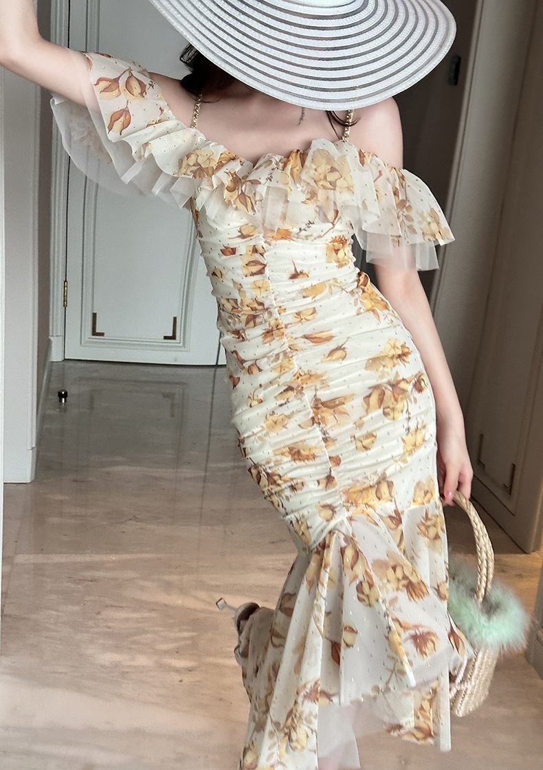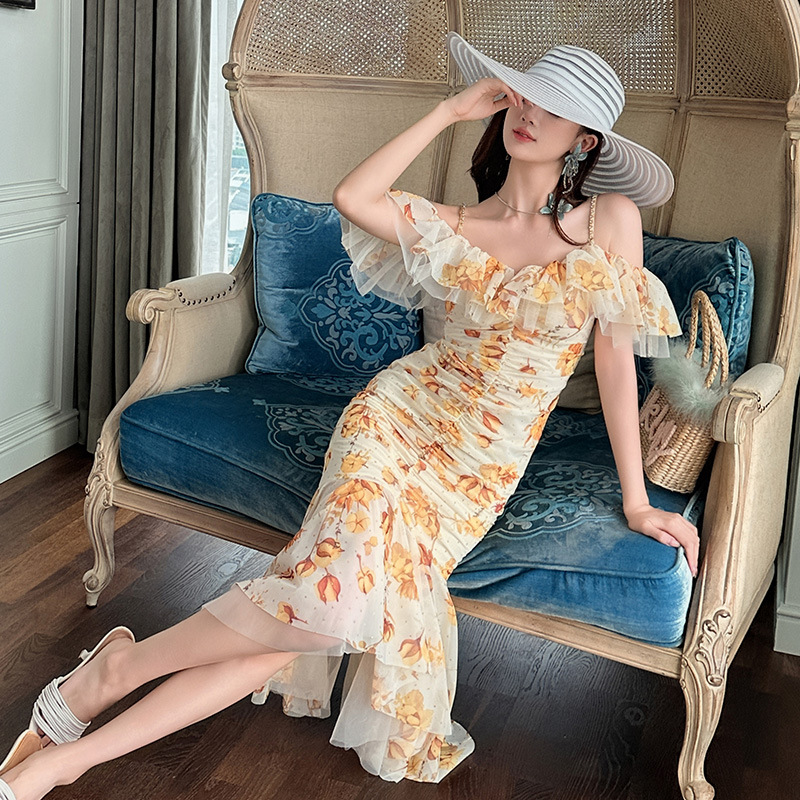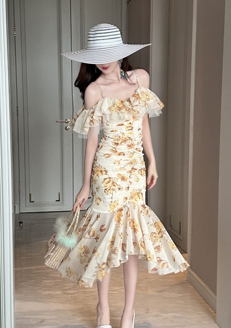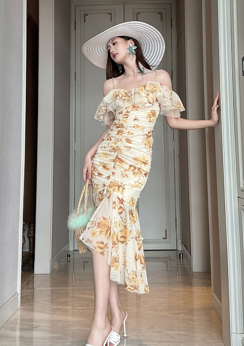 Chiếc đầm dáng ôm dành cho nữ, điểm nhấn là phần cổ khoét ngang và đường viền tà áo cách điệu xòe ra như đuôi cá. Tay áo được thiết kế dạng dây đeo, phần thân trên có các nếp gấp xếp lớp tinh tế. Kiểu dáng không đối xứng ở tà áo mang đến nét cá tính và duyên dáng. Sản phẩm phù hợp để mặc trong nhiều dịp, dễ dàng phối cùng giày cao gót hoặc sandal. | Tên sản phẩm: Áo Hai Dây Nữ Dáng Ôm Kiểu Đuôi Cá Hai Dây Hở Vai Hàng Mùa Hè - Thời Trang Nữ | Mã sản phẩm: L2295 - Giá: 1.440.000đ | Mã nhà sản xuất: CHDG-G04Hình ảnh sản phẩm
