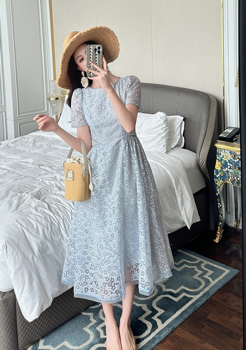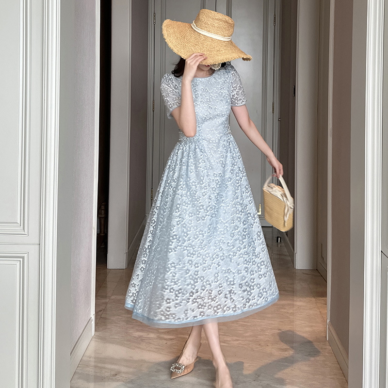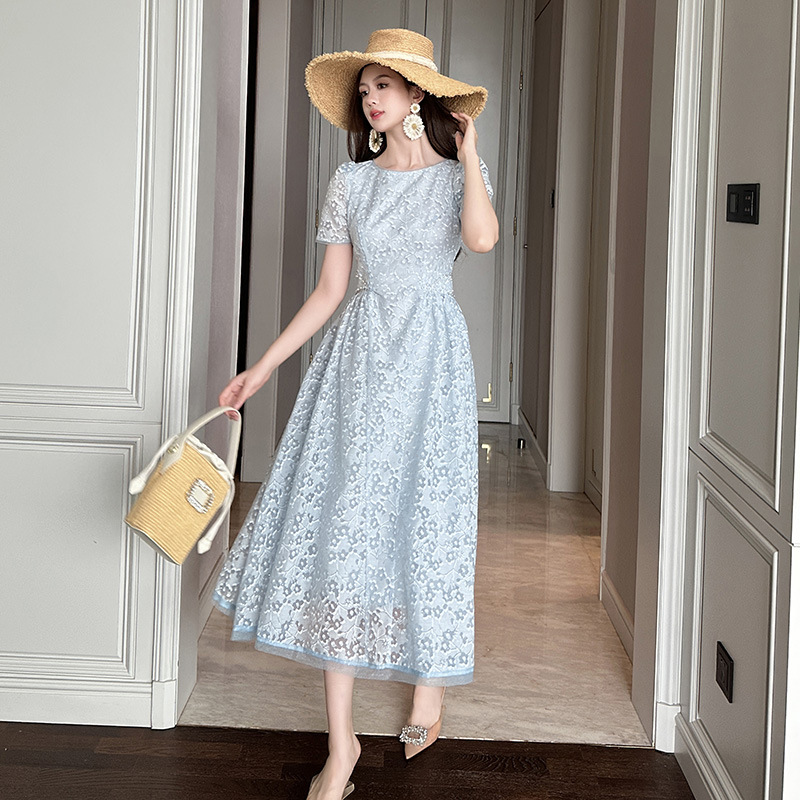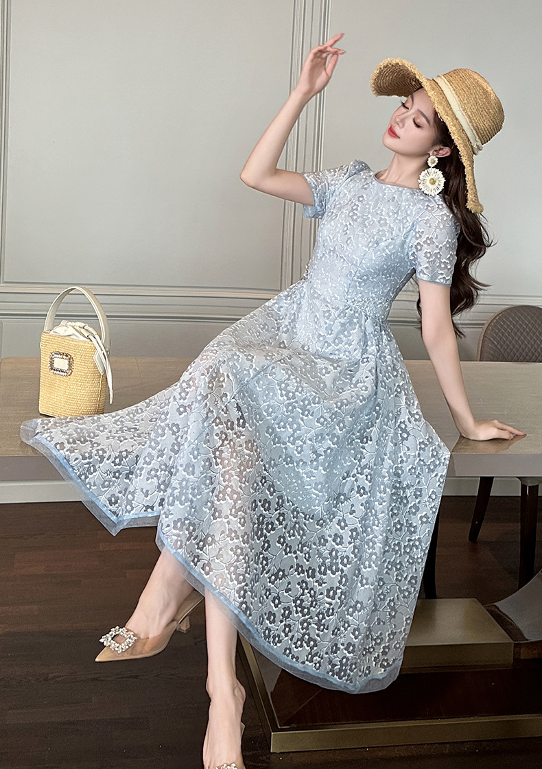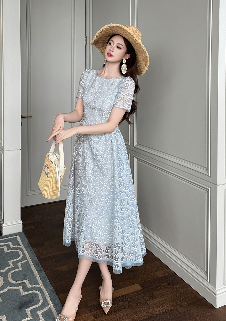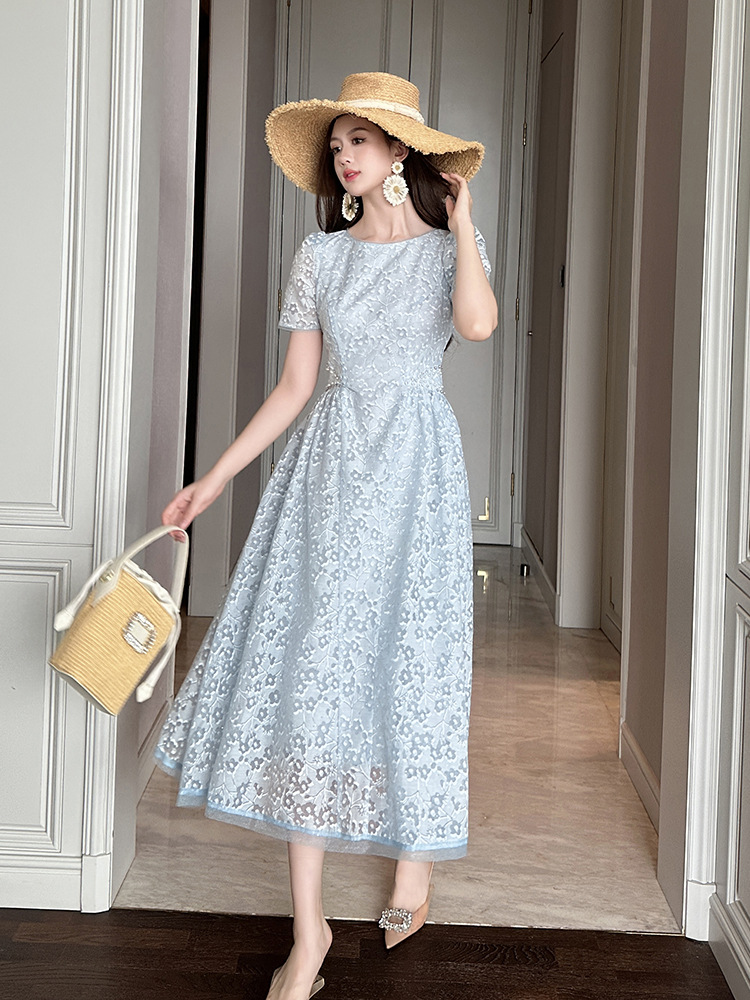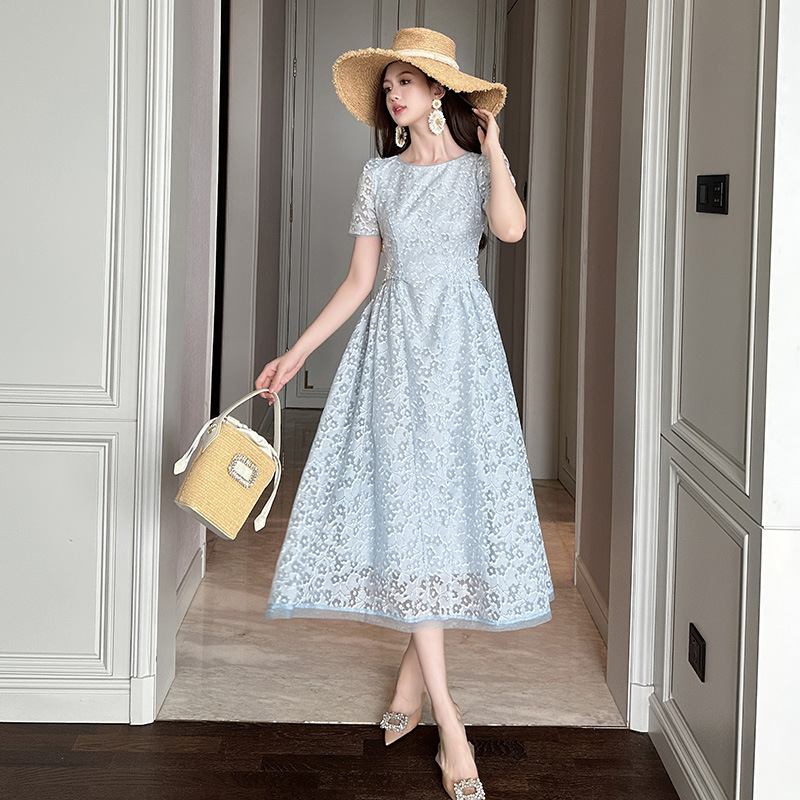 Chiếc đầm dài mang phong cách Pháp với điểm nhấn là chất ren màu xanh dịu mắt. Thiết kế ôm eo tinh tế kết hợp cùng phần chân váy xòe rộng, tạo dáng điệu duyên dáng và thoải mái. Sản phẩm thích hợp cho những dịp đi chơi, dạo phố. Mặc cùng giày sandal hoặc giày đế bằng để hoàn thiện bộ trang phục. | Tên sản phẩm: Váy Đầm Liền Thân Dáng Dài Nữ Chất Liệu Ren Hàng Mùa Hè - Thời Trang Nữ | Mã sản phẩm: L2324 - Giá: 1.530.000đ | Mã nhà sản xuất: CHDG-G04Hình ảnh sản phẩm