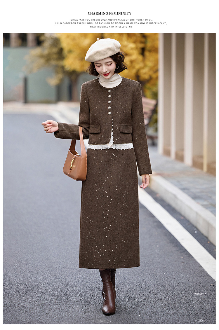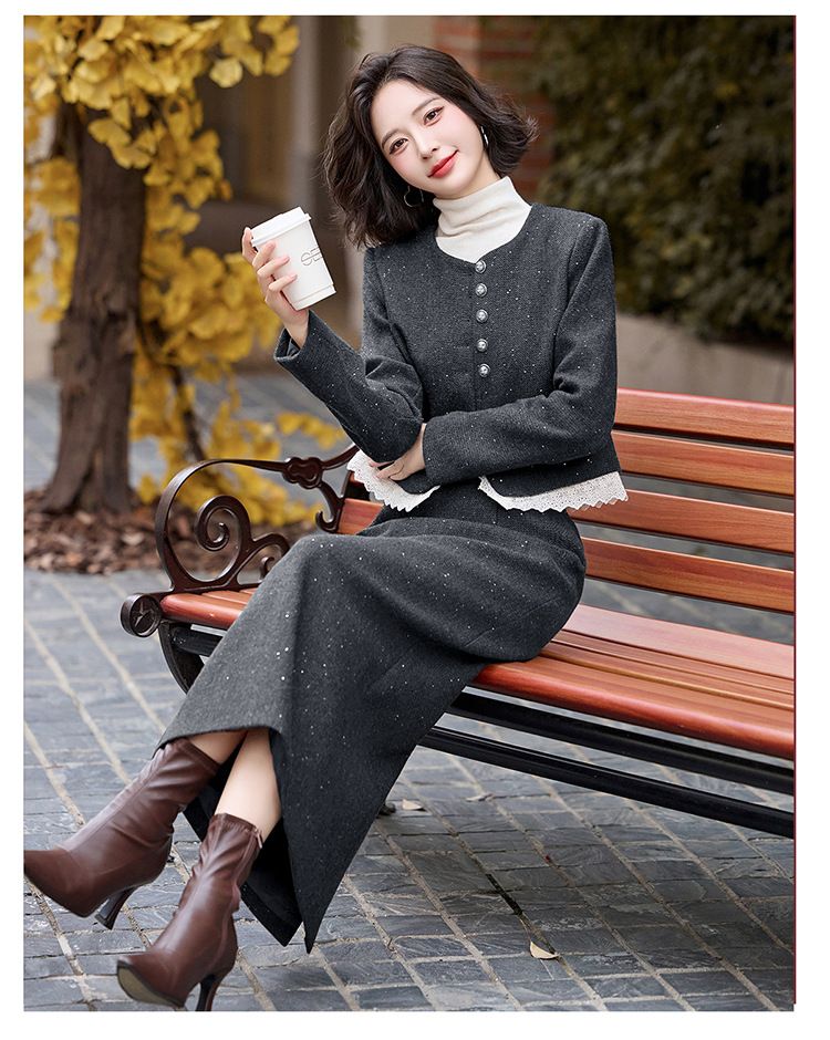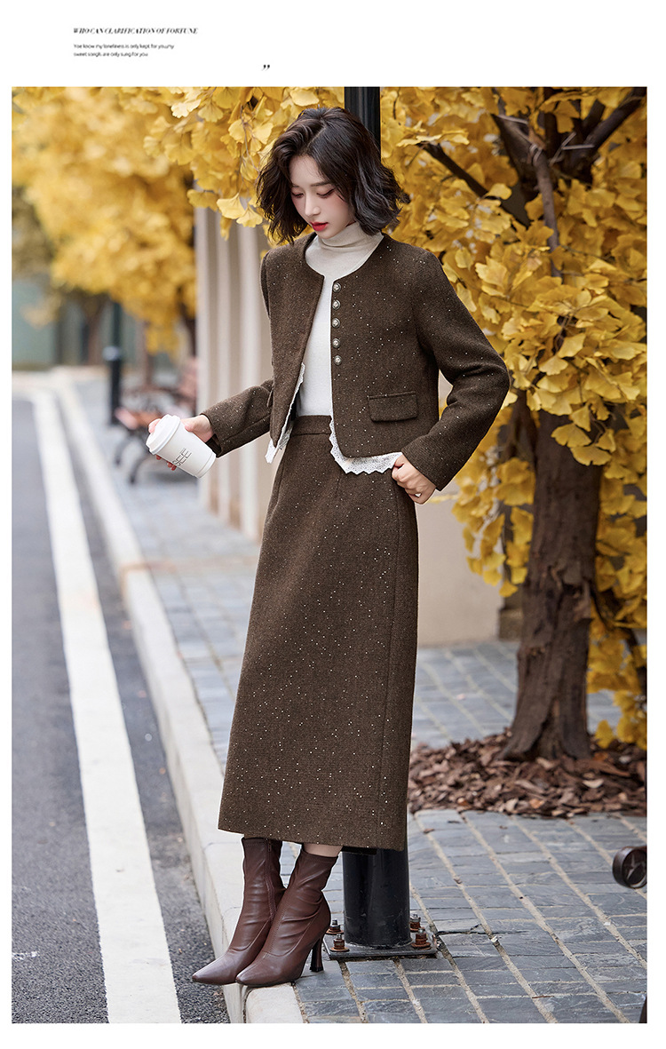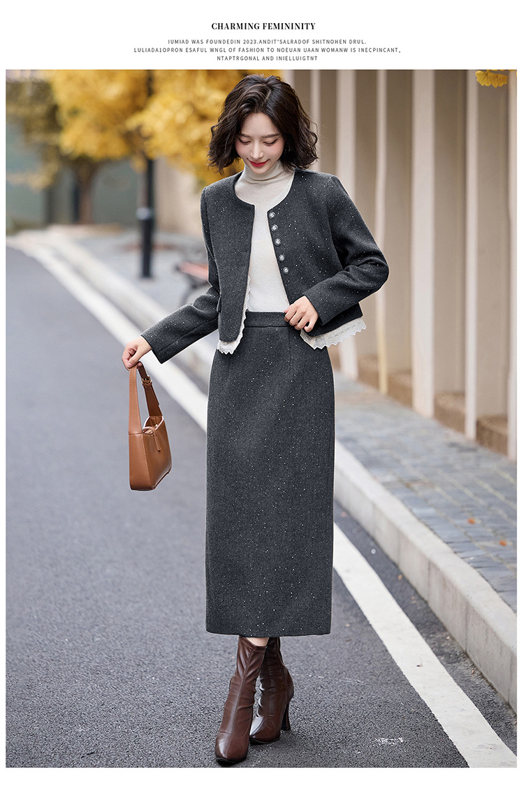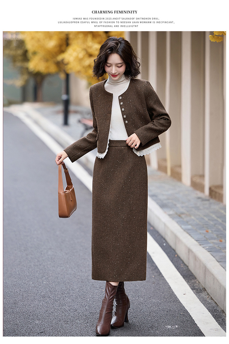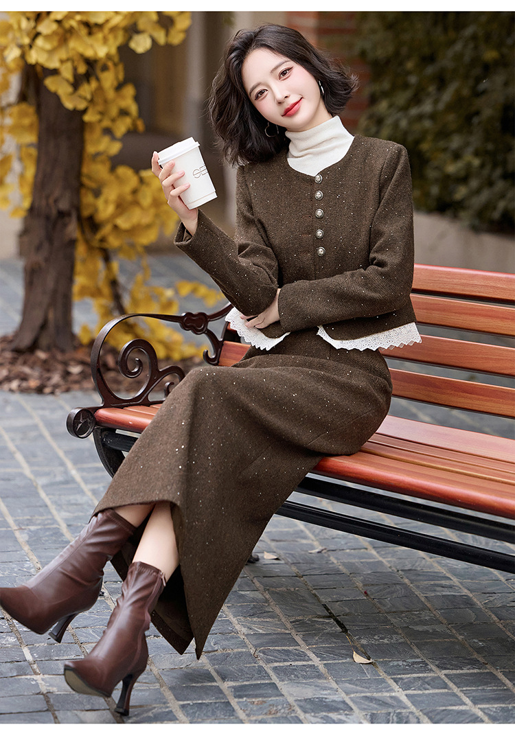 Bộ trang phục hai mảnh dành cho nữ, mang phong cách thanh lịch, phù hợp cho mùa thu đông. Chất liệu dệt từ sợi len ấm áp, giúp giữ nhiệt tốt. Bộ sản phẩm gồm áo khoác ngắn và chân váy, dễ dàng phối đồ. Kiểu dáng tinh tế, tôn dáng người mặc. Có thể mặc đi làm, dự tiệc hoặc gặp mặt bạn bè. Phối cùng áo thun và giày búp bê để tạo vẻ đẹp dịu dàng. | Tên sản phẩm: Đồ Bộ Nữ Cả Bộ 2 Món Hàng Mùa Xuân Thu Đông - Thời Trang Nữ | Mã sản phẩm: L2370 - Giá: 2.260.000đ | Mã nhà sản xuất: HADA-G05Hình ảnh sản phẩm