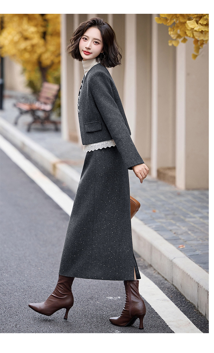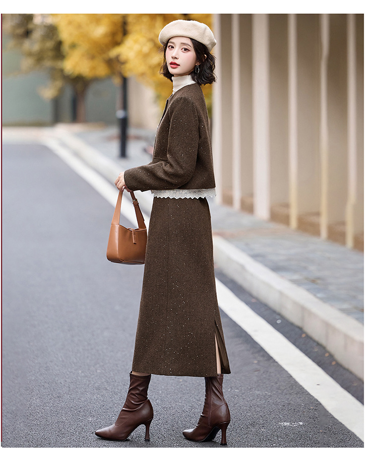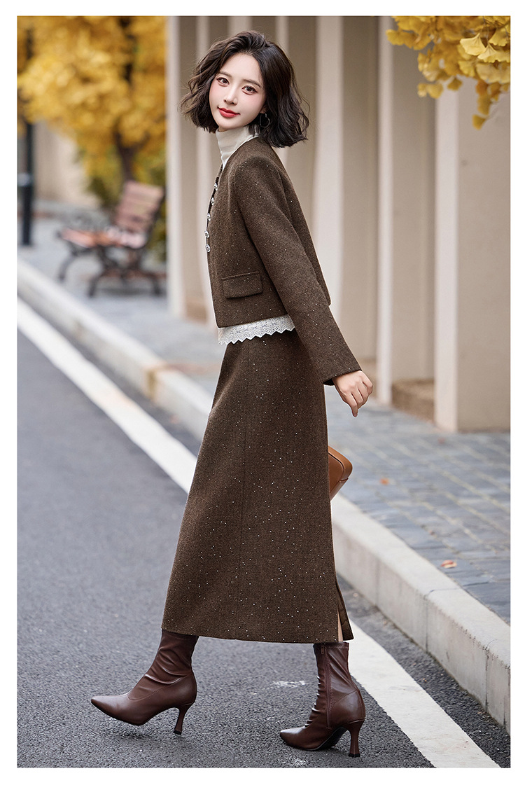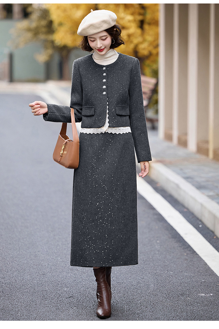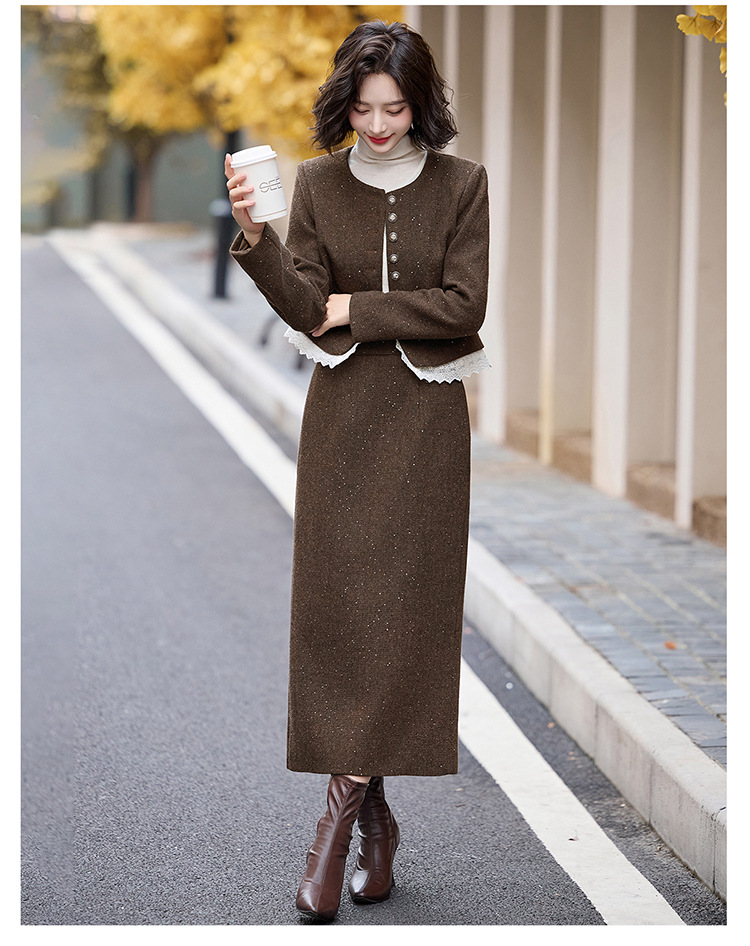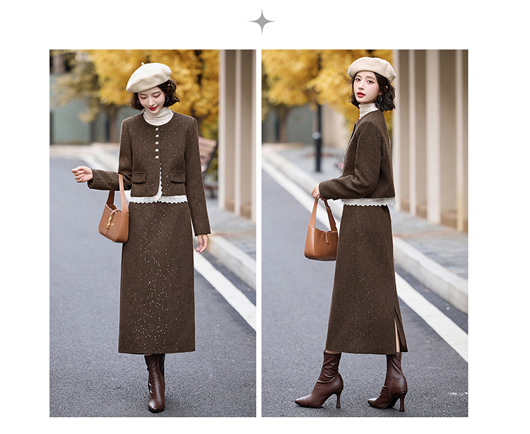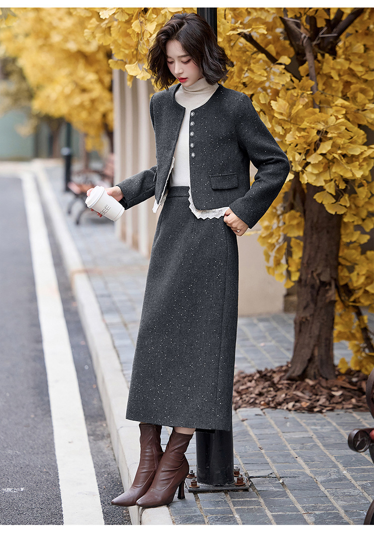 Bộ trang phục hai mảnh dành cho nữ, mang phong cách thanh lịch, phù hợp cho mùa thu đông. Chất liệu dệt từ sợi len ấm áp, giúp giữ nhiệt tốt. Bộ sản phẩm gồm áo khoác ngắn và chân váy, dễ dàng phối đồ. Kiểu dáng tinh tế, tôn dáng người mặc. Có thể mặc đi làm, dự tiệc hoặc gặp mặt bạn bè. Phối cùng áo thun và giày búp bê để tạo vẻ đẹp dịu dàng. | Tên sản phẩm: Đồ Bộ Nữ Cả Bộ 2 Món Hàng Mùa Xuân Thu Đông - Thời Trang Nữ | Mã sản phẩm: L2370 - Giá: 2.260.000đ | Mã nhà sản xuất: HADA-G05Hình ảnh sản phẩm
