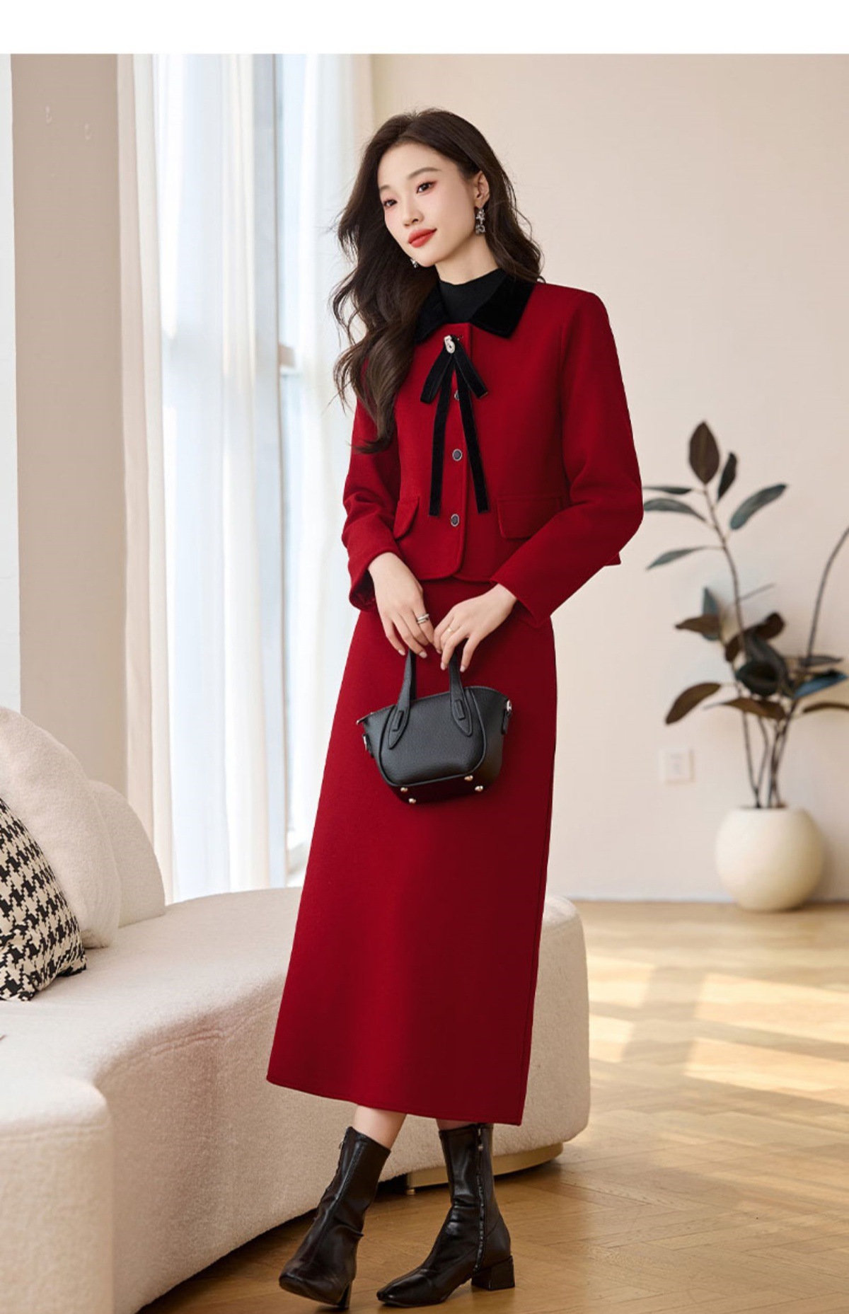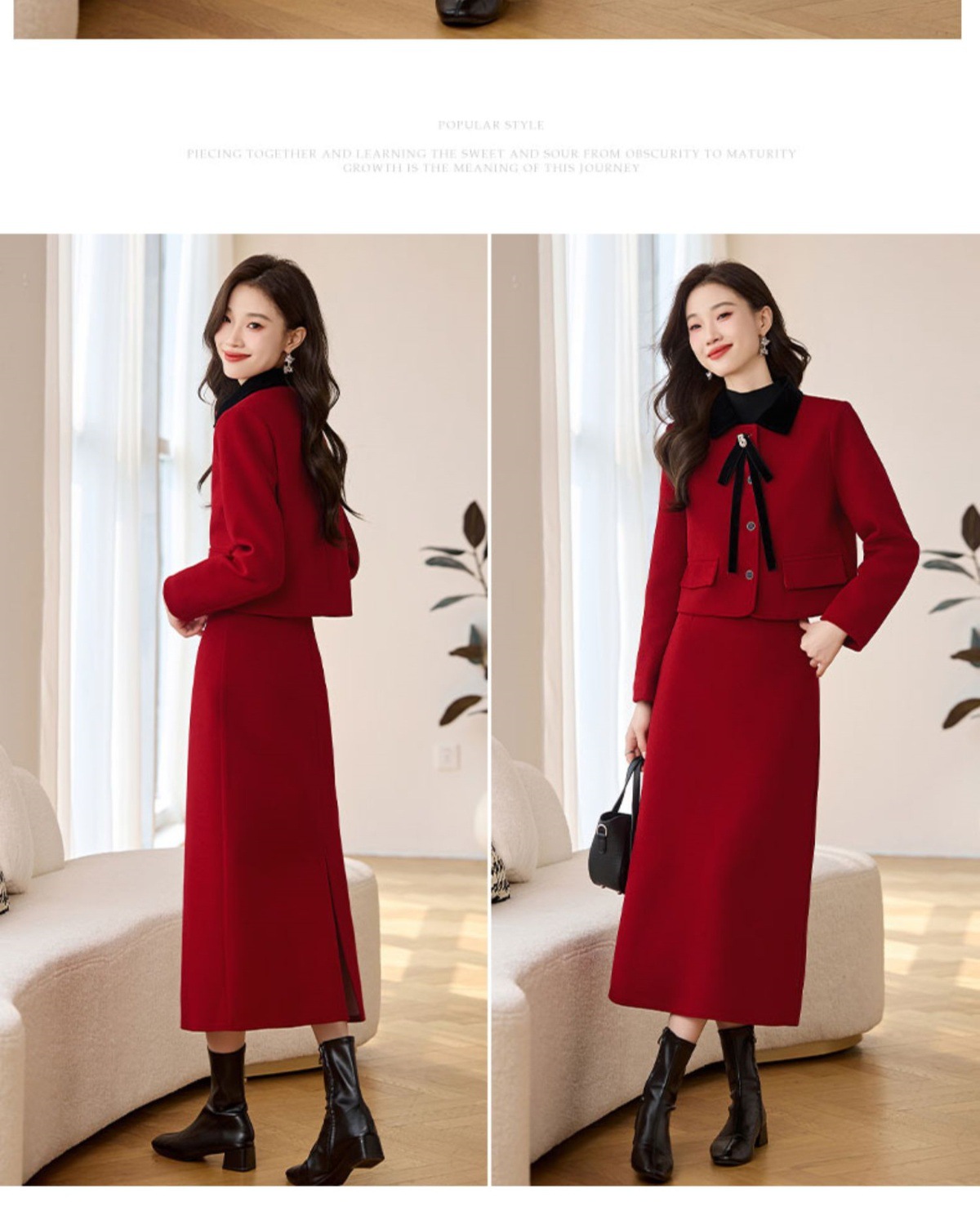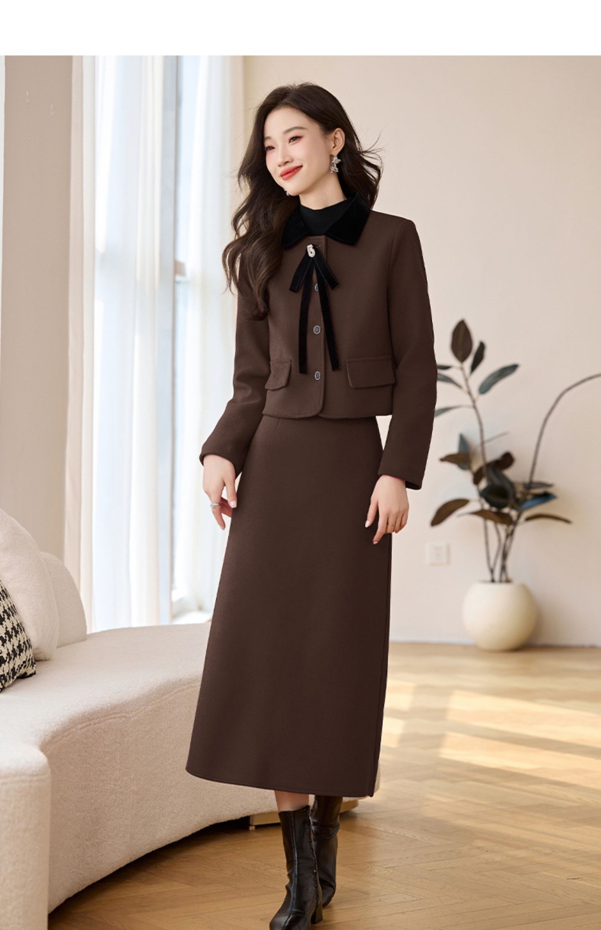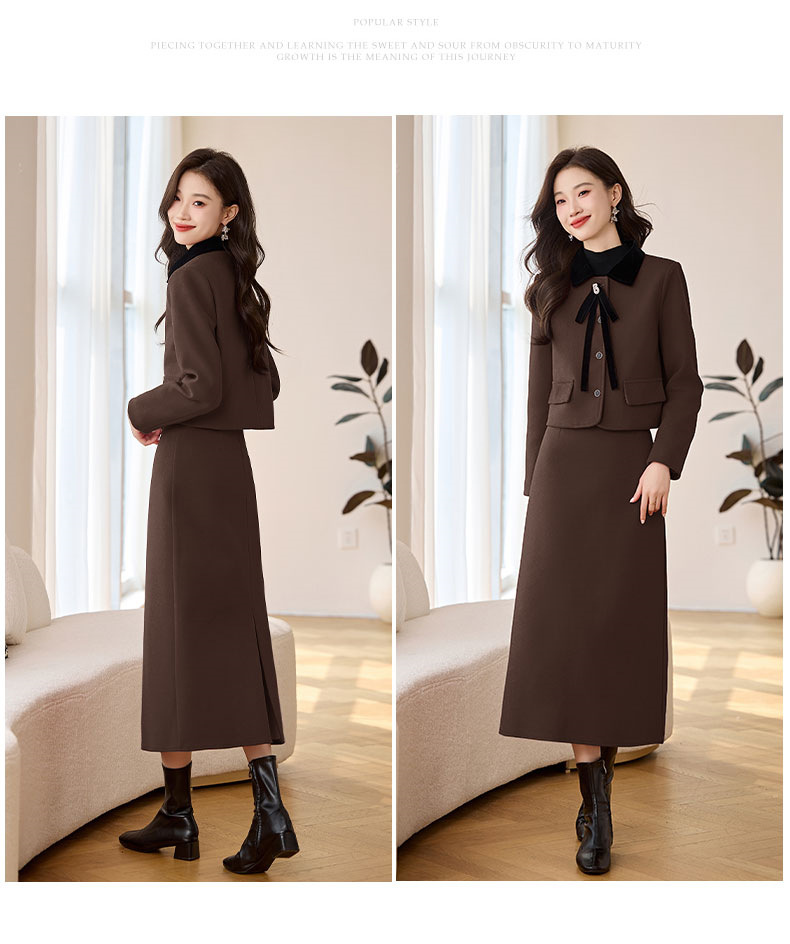 Bộ trang phục hai mảnh này gồm áo khoác và chân váy, được làm từ chất liệu dạ dày dày ấm áp, thích hợp cho thời tiết mùa thu đông. Kiểu dáng mang phong cách thanh lịch, nhẹ nhàng. Bạn có thể mặc nguyên bộ để tạo vẻ chỉn chu, hoặc phối áo khoác với quần dài khác. Chân váy dễ dàng kết hợp cùng nhiều loại áo để tạo nên những diện mạo đa dạng. | Tên sản phẩm: Áo Khoác Nữ Cả Bộ 2 Món Dày Ấm Hàng Mùa Xuân Thu Đông - Thời Trang Nữ | Mã sản phẩm: L2392 - Giá: 2.290.000đ | Mã nhà sản xuất: HADA-G05Hình ảnh sản phẩm