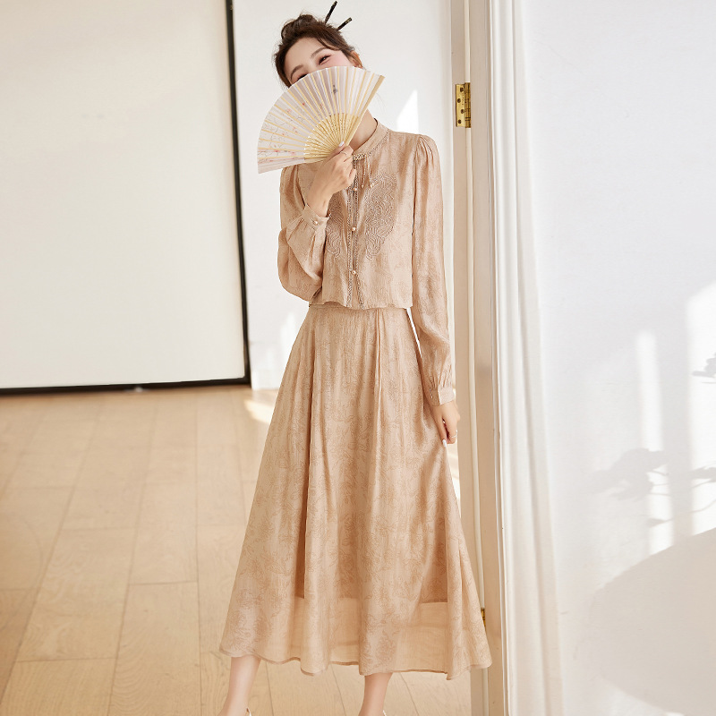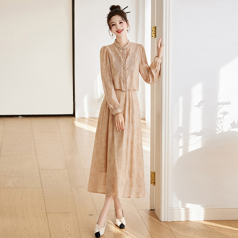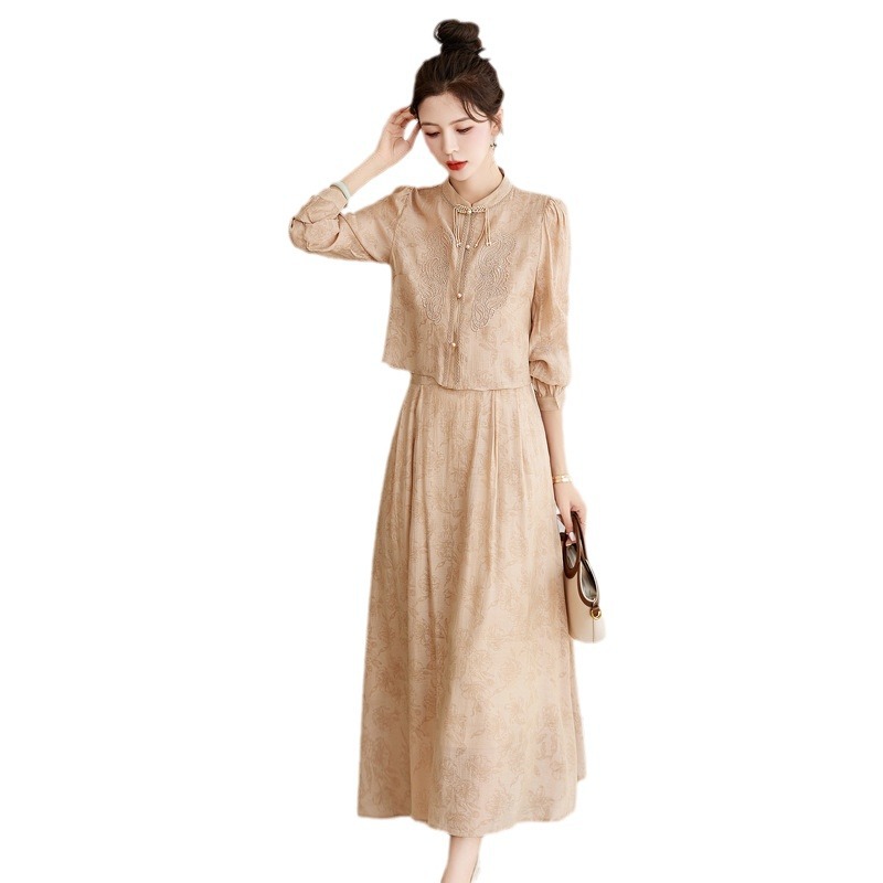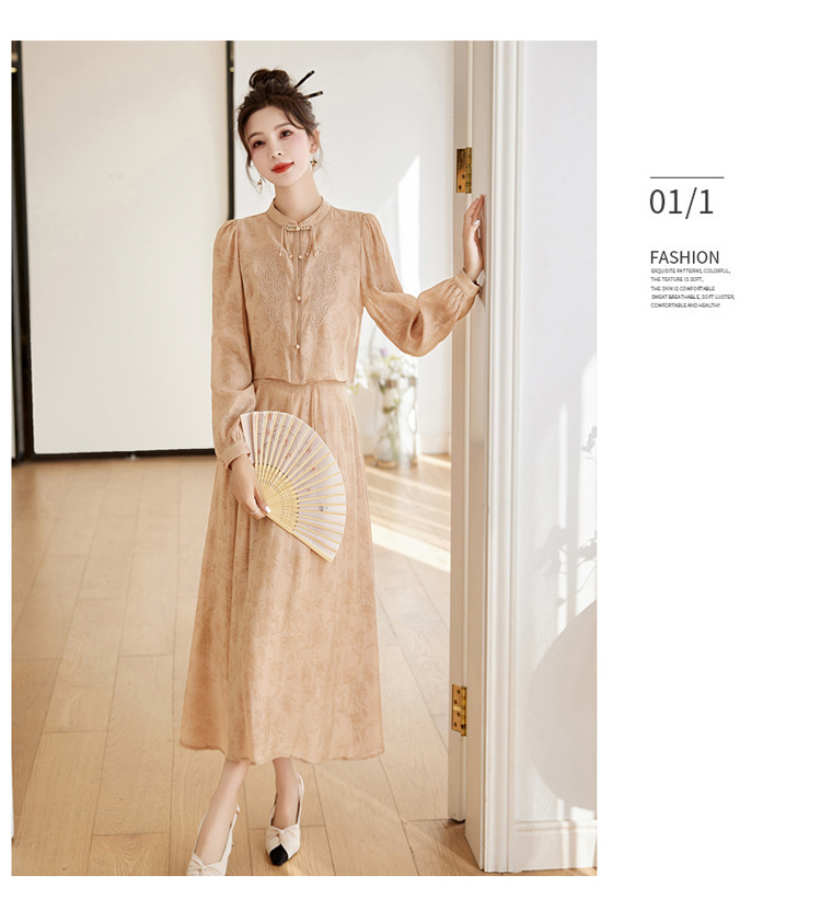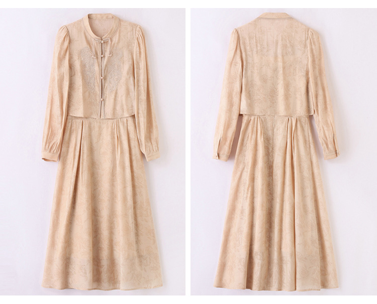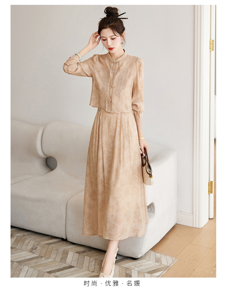 Bộ trang phục hai mảnh này mang phong cách hiện đại kết hợp nét đẹp truyền thống. Chiếc váy midi điểm xuyết họa tiết thêu tinh xảo, mặc cùng áo trên thiết kế đơn giản. Chất liệu vải mềm mại, thoáng mát phù hợp tiết trời xuân thu. Có thể phối mặc đi làm, dự tiệc hay những dịp gặp mặt. Bộ trang phục tôn dáng, giúp người mặc thể hiện nét duyên dáng và thanh lịch riêng. | Tên sản phẩm: Đồ Bộ Nữ Cả Bộ 2 Món Thêu Họa Tiết Hoa Hàng Mùa Xuân Thu Đông - Thời Trang Nữ | Mã sản phẩm: L2399 - Giá: 2.170.000đ | Mã nhà sản xuất: HADA-G05Hình ảnh sản phẩm