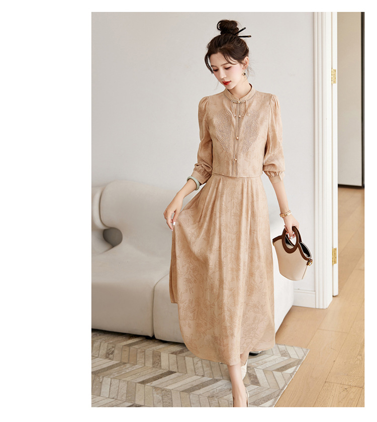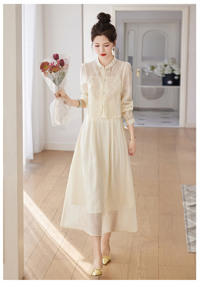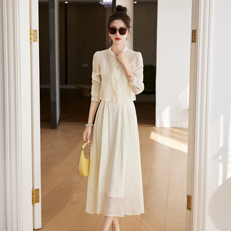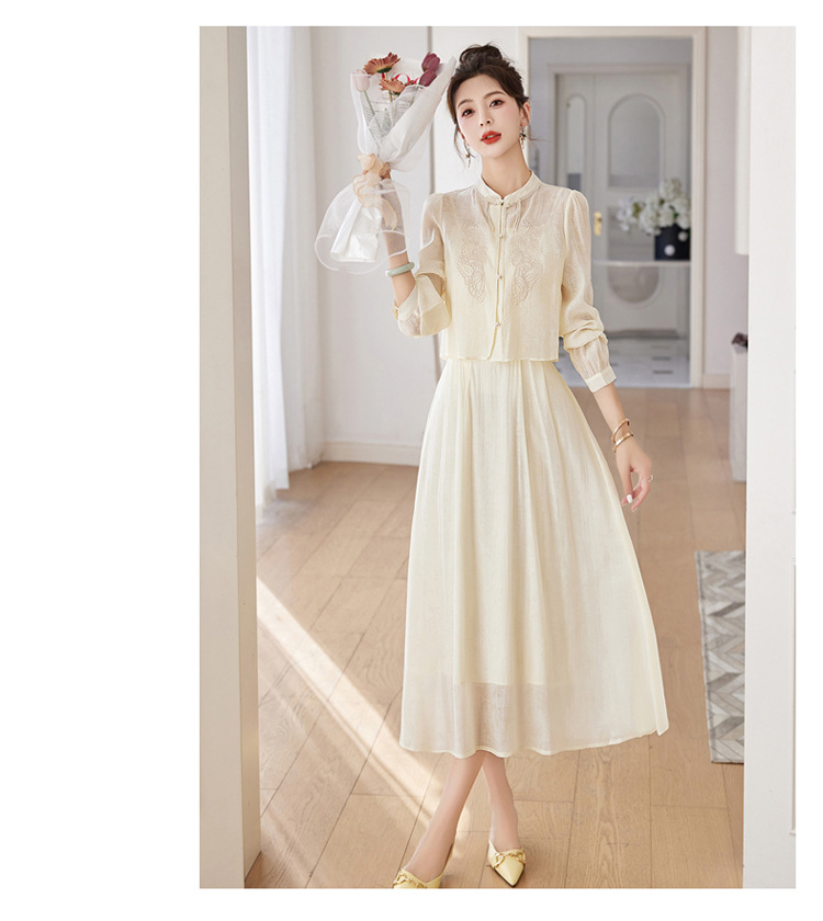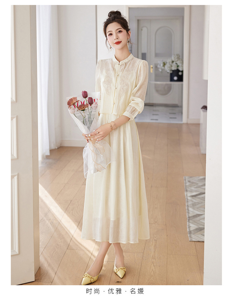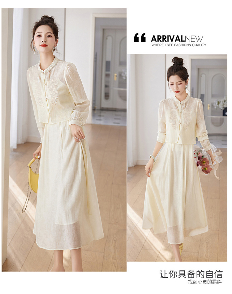 Bộ trang phục hai mảnh này mang phong cách hiện đại kết hợp nét đẹp truyền thống. Chiếc váy midi điểm xuyết họa tiết thêu tinh xảo, mặc cùng áo trên thiết kế đơn giản. Chất liệu vải mềm mại, thoáng mát phù hợp tiết trời xuân thu. Có thể phối mặc đi làm, dự tiệc hay những dịp gặp mặt. Bộ trang phục tôn dáng, giúp người mặc thể hiện nét duyên dáng và thanh lịch riêng. | Tên sản phẩm: Đồ Bộ Nữ Cả Bộ 2 Món Thêu Họa Tiết Hoa Hàng Mùa Xuân Thu Đông - Thời Trang Nữ | Mã sản phẩm: L2399 - Giá: 2.170.000đ | Mã nhà sản xuất: HADA-G05Hình ảnh sản phẩm