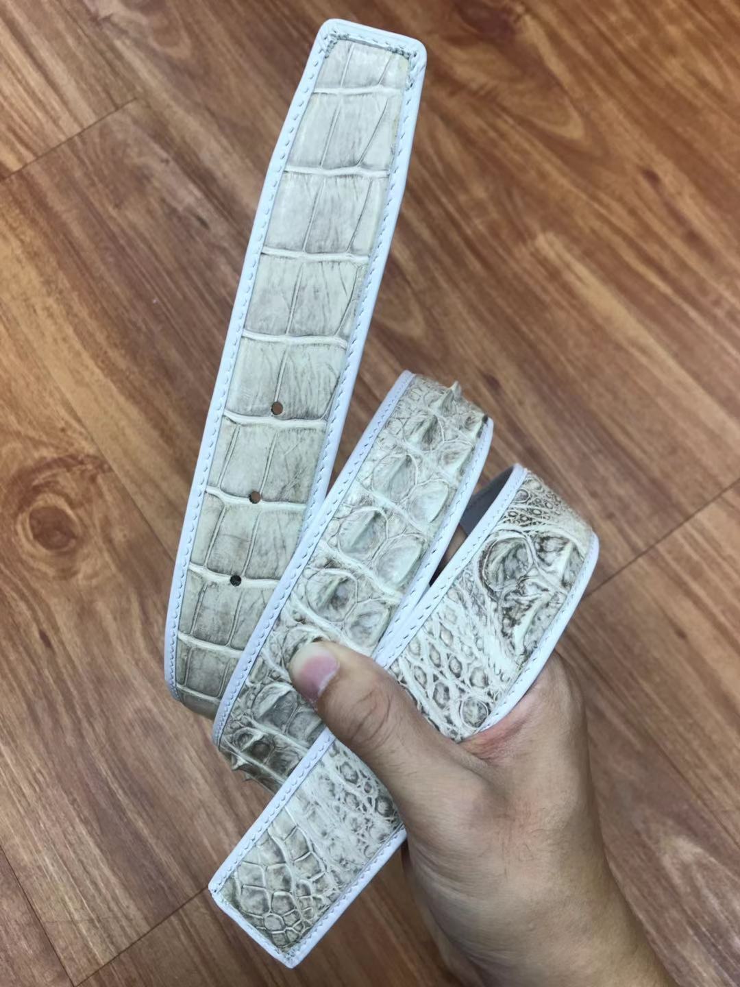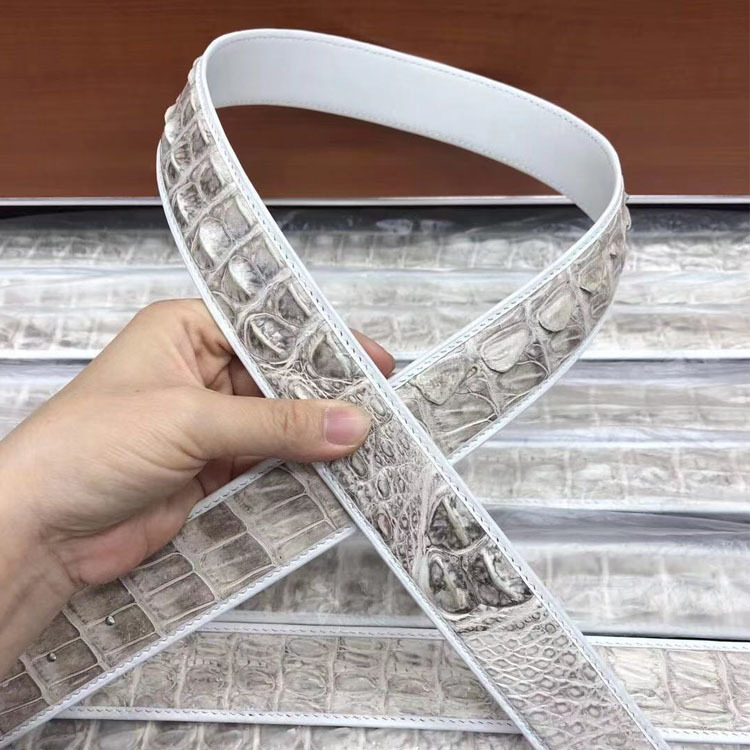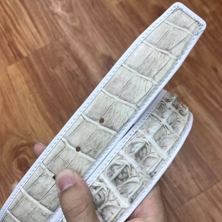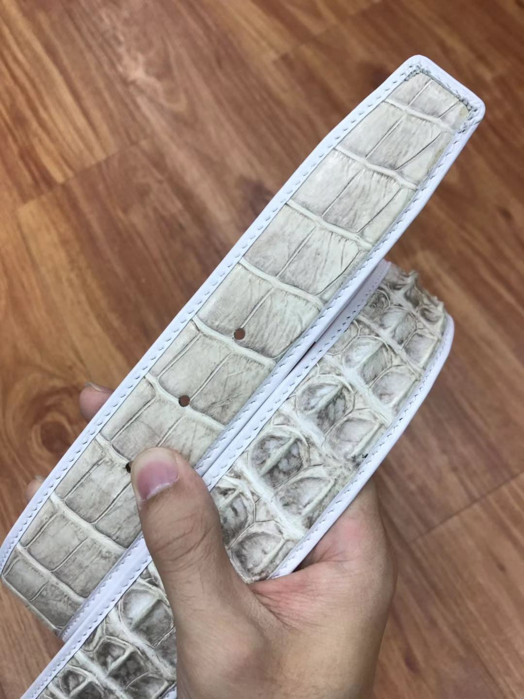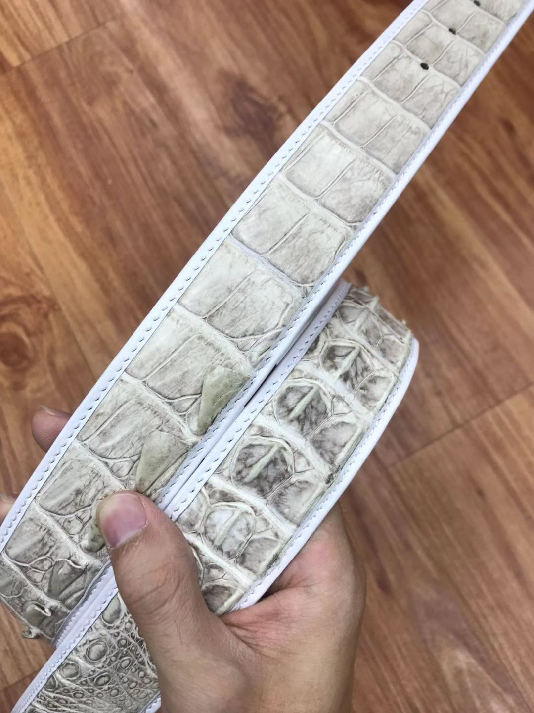 Thắt lưng da nam với mặt cắt đặc biệt từ xương sống cá sấu, tạo điểm nhấn khác biệt. Chất liệu da thật nguyên tấm, bền chắc theo thời gian. Màu trắng trang nhã dễ dàng phối cùng nhiều trang phục như quần âu, quần kaki. Khóa kim loại đơn giản, thao tác đóng mở nhẹ nhàng. Sản phẩm phù hợp cho các dịp làm việc hoặc dạo phố cuối tuần. | Tên sản phẩm: Dây Lưng Nam - Đồng Hồ Phụ Kiện Nam | Mã sản phẩm: L2406 - Giá: 2.500.000đ | Mã nhà sản xuất: GUREG-G05Hình ảnh sản phẩm