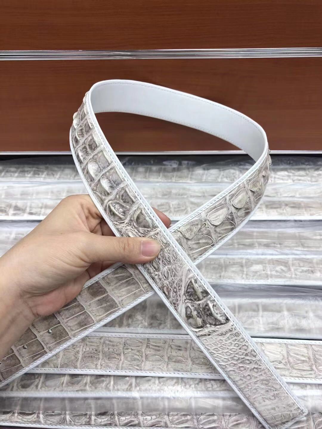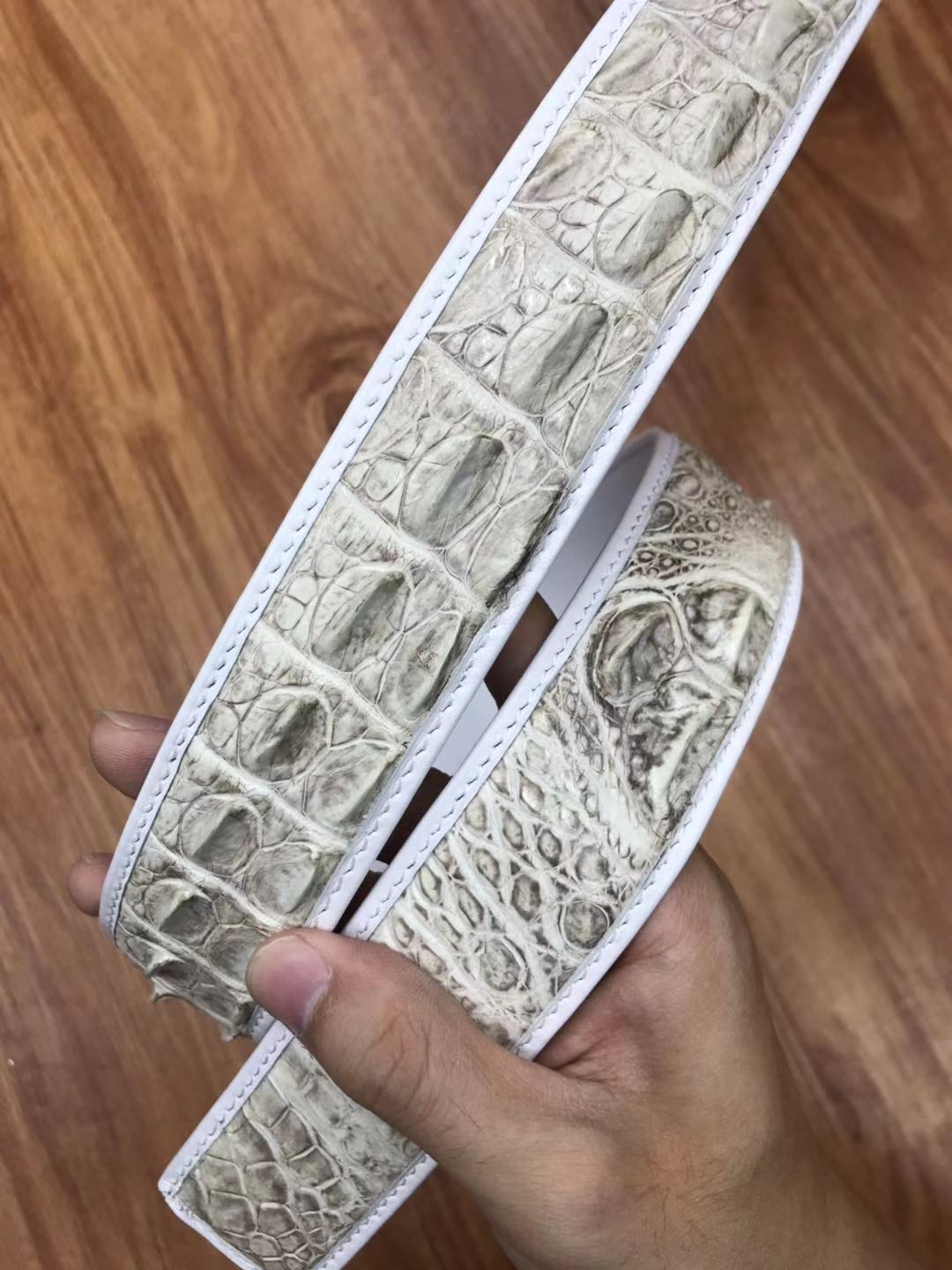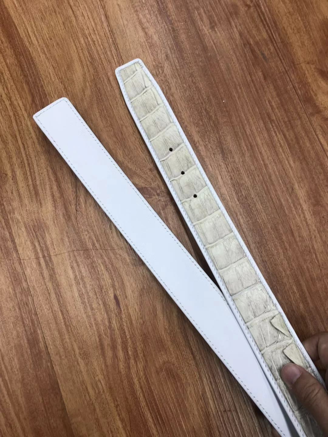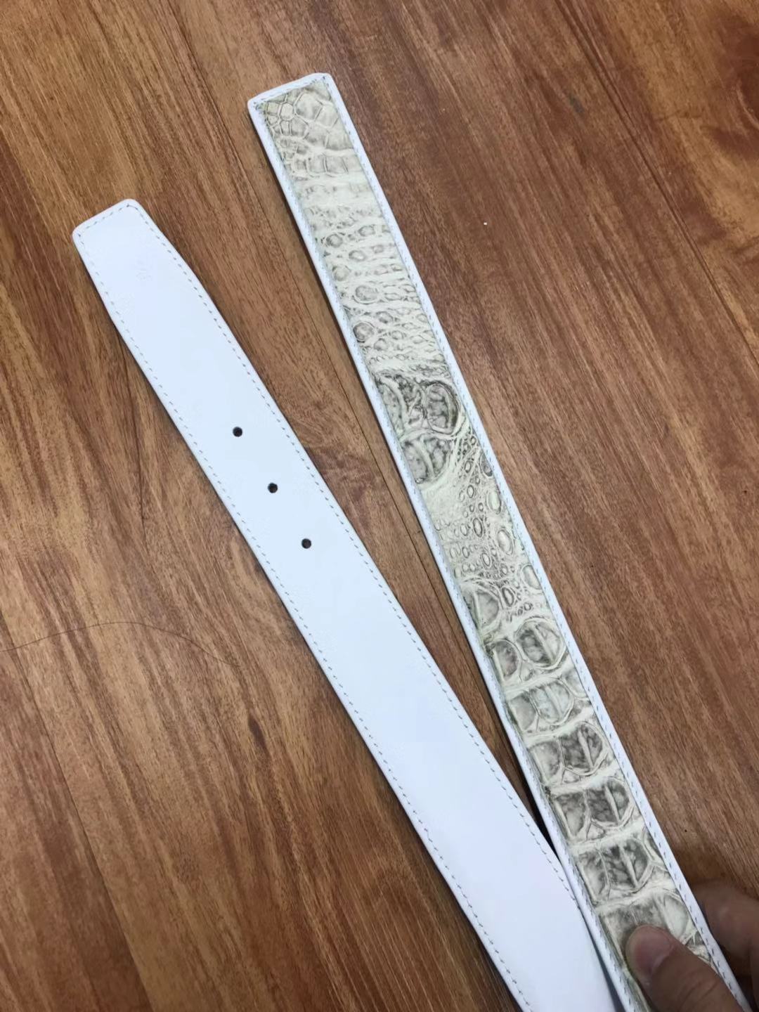Thắt lưng da nam với mặt cắt đặc biệt từ xương sống cá sấu, tạo điểm nhấn khác biệt. Chất liệu da thật nguyên tấm, bền chắc theo thời gian. Màu trắng trang nhã dễ dàng phối cùng nhiều trang phục như quần âu, quần kaki. Khóa kim loại đơn giản, thao tác đóng mở nhẹ nhàng. Sản phẩm phù hợp cho các dịp làm việc hoặc dạo phố cuối tuần. | Tên sản phẩm: Dây Lưng Nam - Đồng Hồ Phụ Kiện Nam | Mã sản phẩm: L2406 - Giá: 2.500.000đ | Mã nhà sản xuất: GUREG-G05Hình ảnh sản phẩm