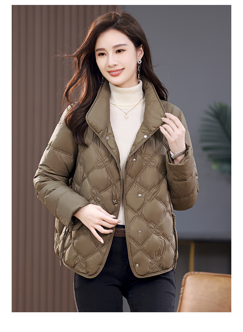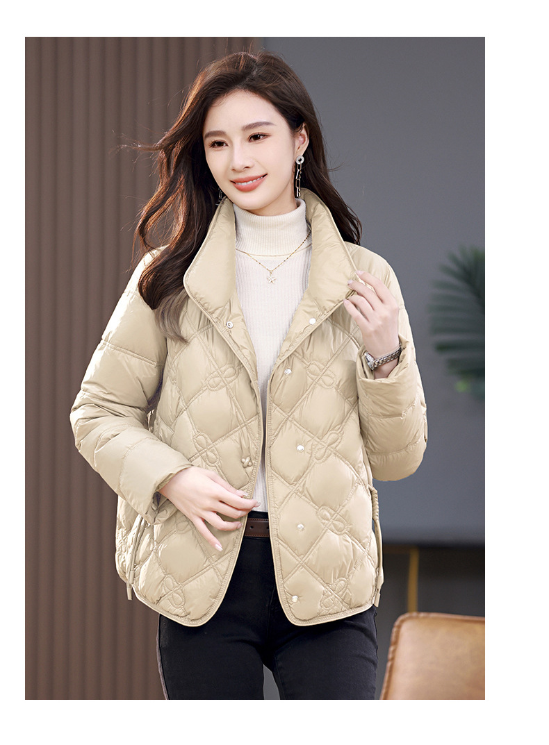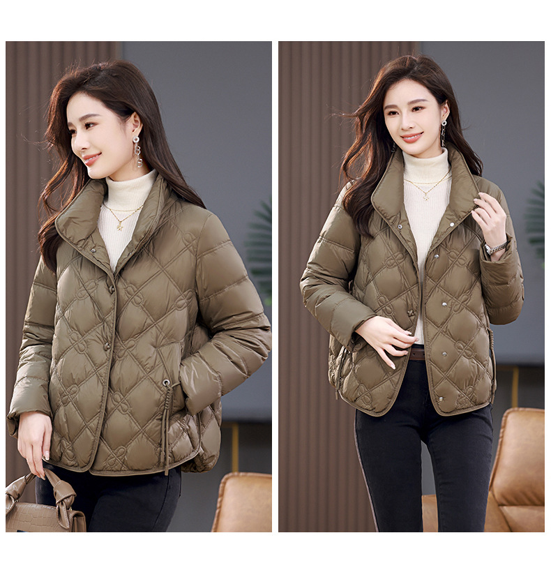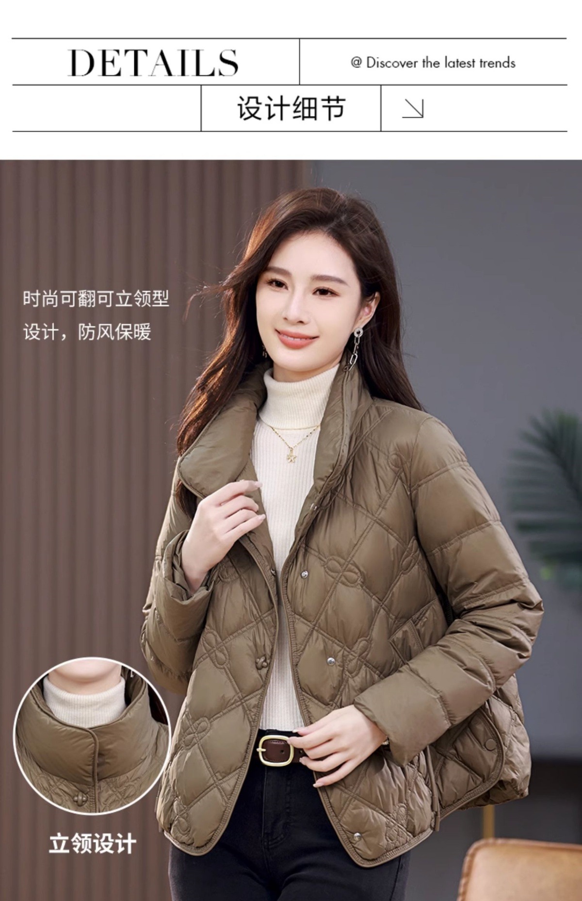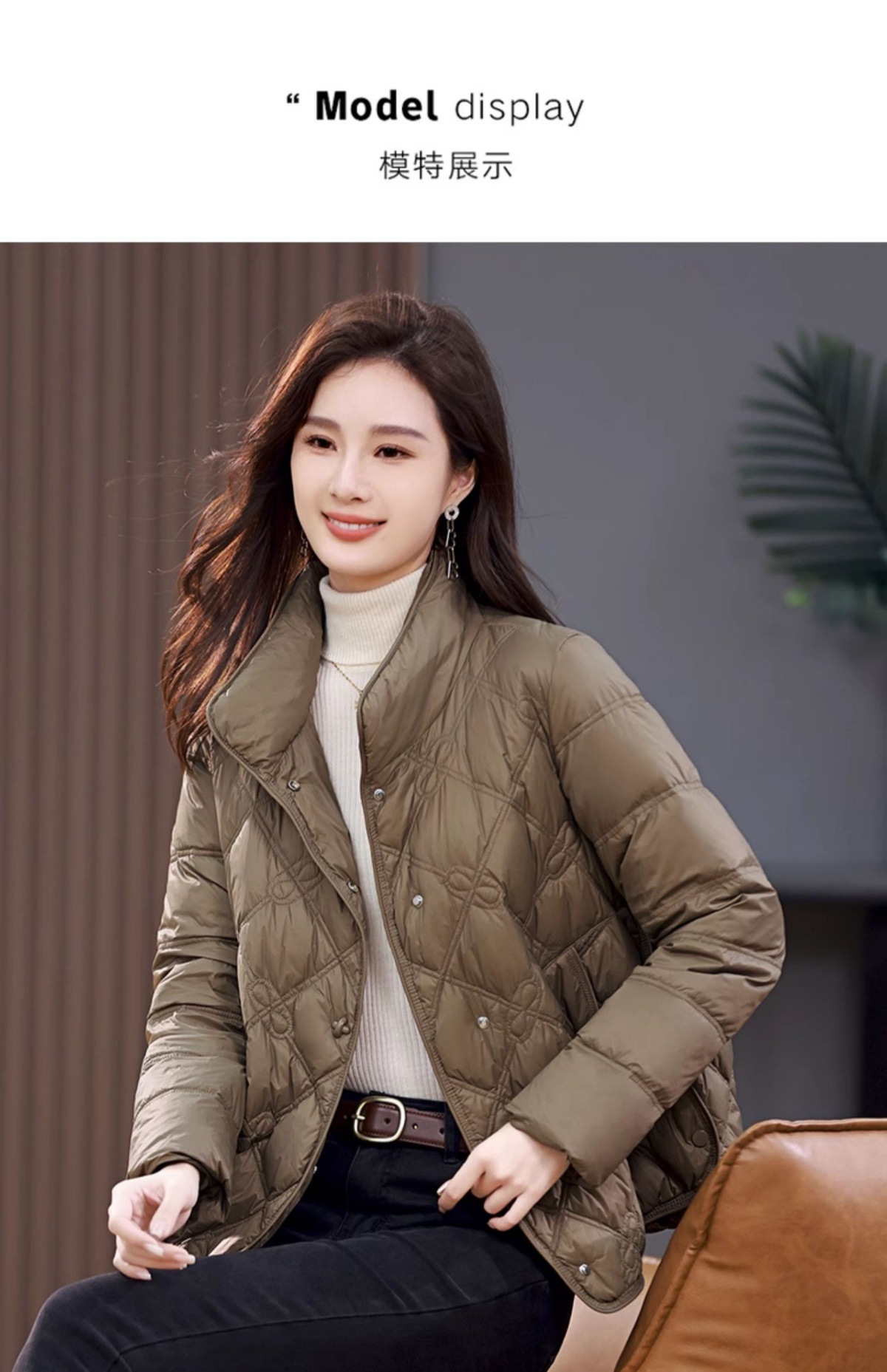 Áo khoác dáng ngắn dành cho phụ nữ, thiết kế vừa vặn và thoải mái. Sản phẩm có cổ dựng, kiểu dáng đơn giản và nhẹ nhàng, rất phù hợp để mặc trong những ngày trời lạnh. Bên trong áo được lót bằng lớp lông vũ tự nhiên của loài vịt trắng, giúp giữ ấm tốt. Bạn có thể mặc chiếc áo này khi đi chơi, đi làm hay trong các sinh hoạt thường ngày. Dễ dàng phối cùng nhiều loại trang phục khác nhau. | Tên sản phẩm: Áo Khoác Nữ Hàng Mùa Xuân Thu Đông Trung Niên - Thời Trang Nữ | Mã sản phẩm: L2409 - Giá: 3.240.000đ | Mã nhà sản xuất: HADA-G06Hình ảnh sản phẩm