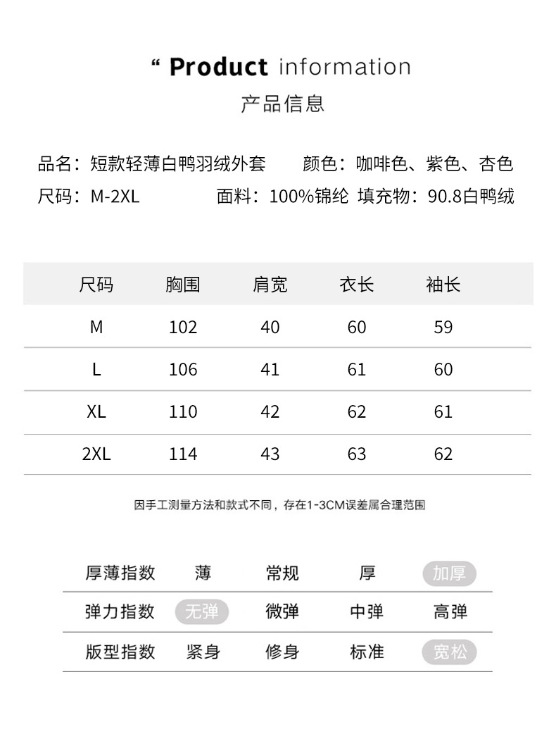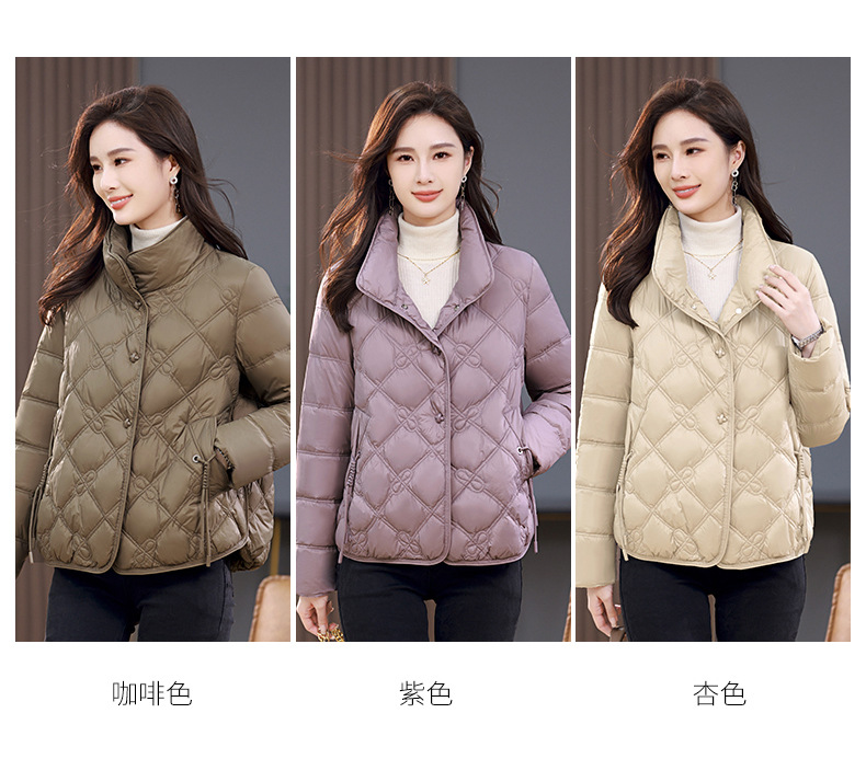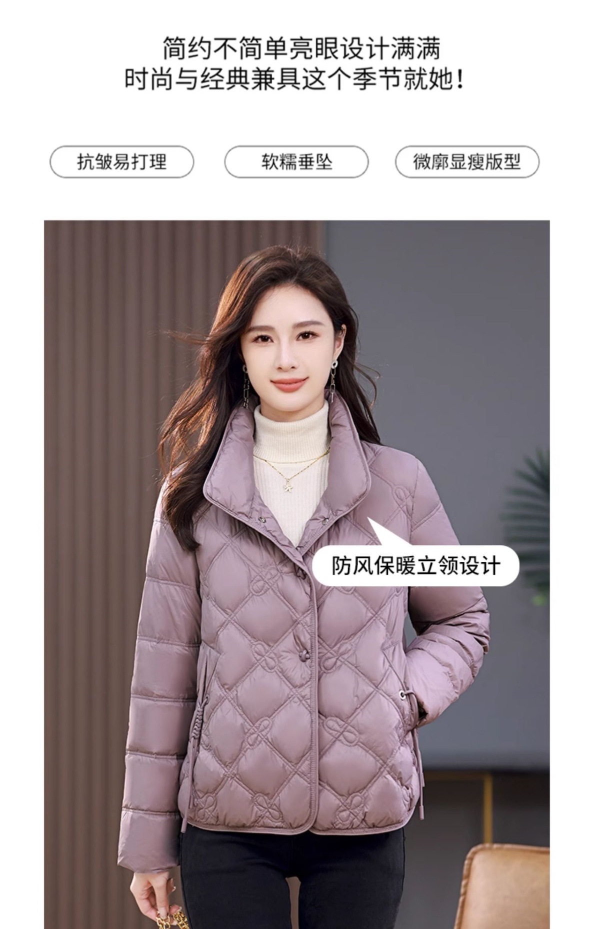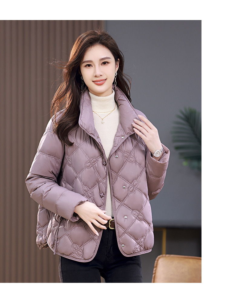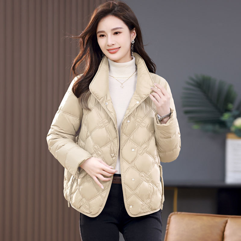 Áo khoác dáng ngắn dành cho phụ nữ, thiết kế vừa vặn và thoải mái. Sản phẩm có cổ dựng, kiểu dáng đơn giản và nhẹ nhàng, rất phù hợp để mặc trong những ngày trời lạnh. Bên trong áo được lót bằng lớp lông vũ tự nhiên của loài vịt trắng, giúp giữ ấm tốt. Bạn có thể mặc chiếc áo này khi đi chơi, đi làm hay trong các sinh hoạt thường ngày. Dễ dàng phối cùng nhiều loại trang phục khác nhau. | Tên sản phẩm: Áo Khoác Nữ Hàng Mùa Xuân Thu Đông Trung Niên - Thời Trang Nữ | Mã sản phẩm: L2409 - Giá: 3.240.000đ | Mã nhà sản xuất: HADA-G06Hình ảnh sản phẩm