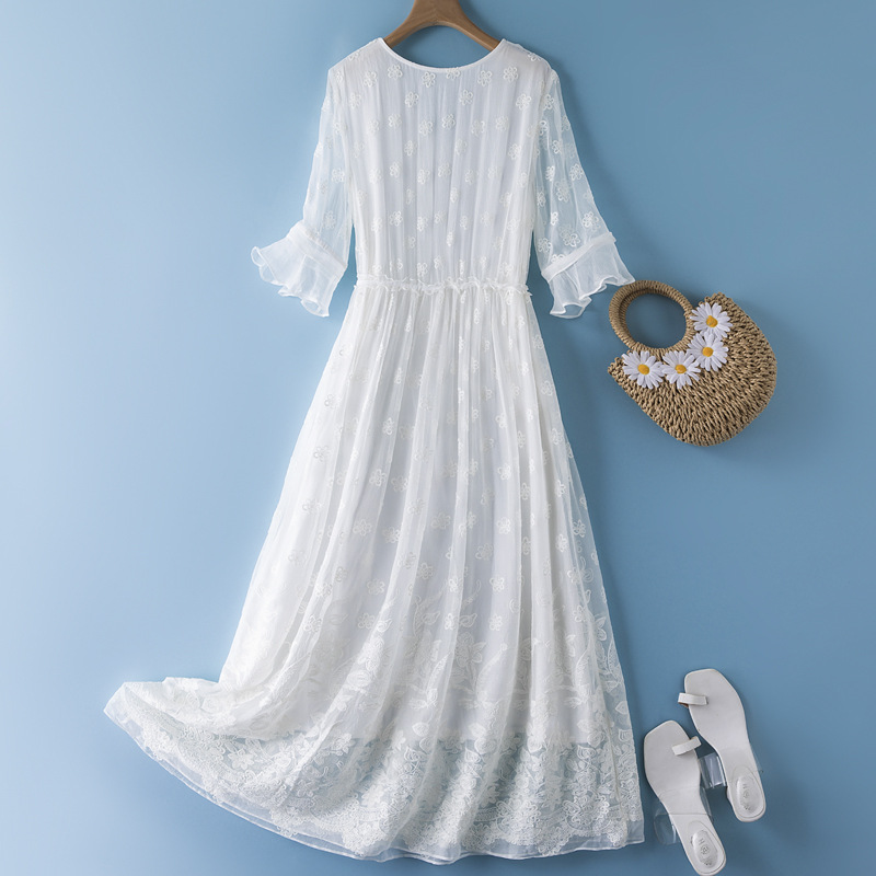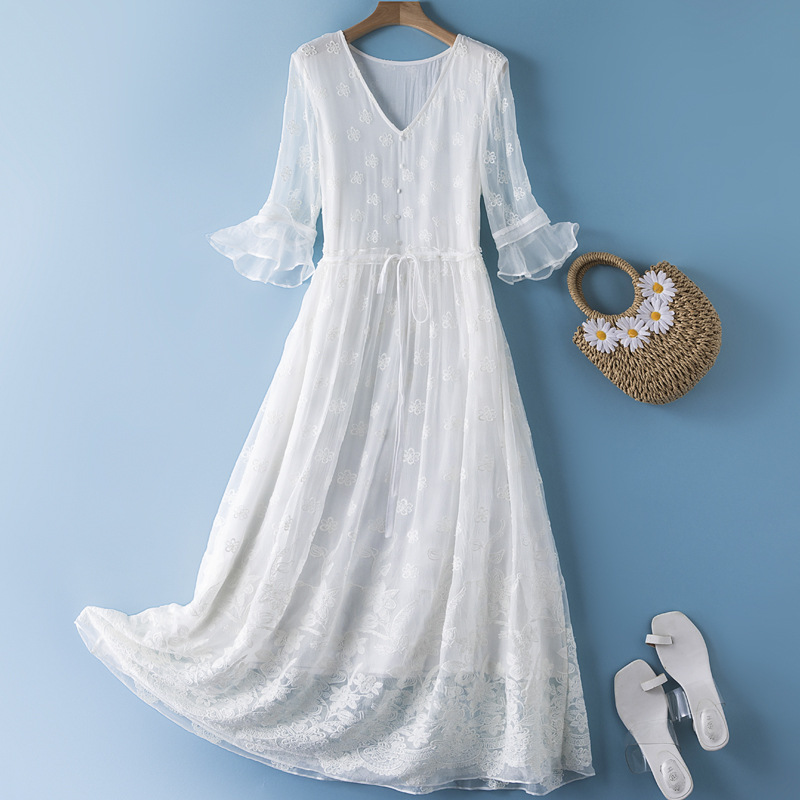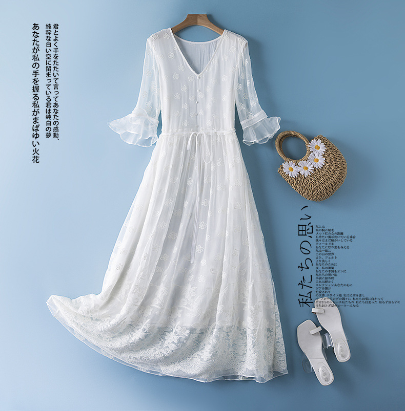 Bộ trang phục mùa hè này gồm hai mảnh, được dệt từ sợi tơ tự nhiên, mang đến cảm giác mát mẻ và thoải mái khi mặc. Kiểu dáng váy dài qua gối kết hợp áo khoác nhẹ tạo vẻ thanh lịch, phù hợp cho nhiều dịp khác nhau. Thiết kế ôm vừa phải giúp tôn dáng một cách tinh tế. Sản phẩm dễ dàng phối cùng phụ kiện và giày dép có sẵn. Khi giặt, nên vò nhẹ nhàng và phơi ở nơi râm mát để giữ chất vải bền đẹp. | Tên sản phẩm: Váy Đầm Liền Thân Nữ Chất Liệu Lụa Tơ Tằm Dài Quá Gối Cả Bộ 2 Món Trông Trẻ Hơn Tuổi Hàng Mùa Hè Trung Niên - Thời Trang Nữ | Mã sản phẩm: L2422 - Giá: 2.360.000đ | Mã nhà sản xuất: SHDA-G05Hình ảnh sản phẩm