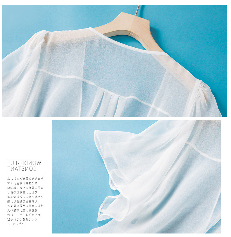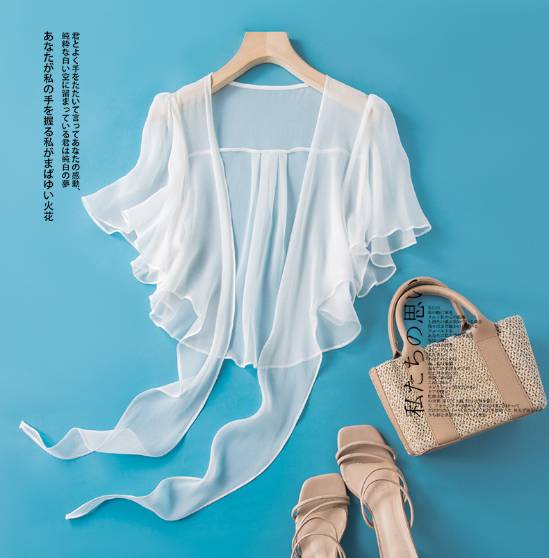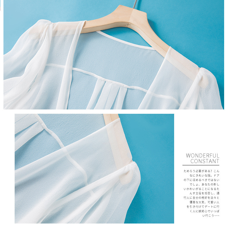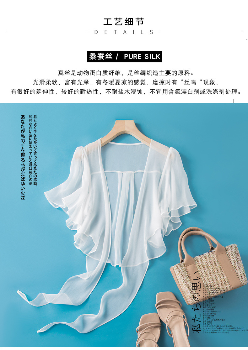 Áo khoác nữ mỏng nhẹ, tay dài ba phần tư, được dệt từ sợi tơ tự nhiên. Chất liệu này mang đến cảm giác mát mẻ, thoáng khí và thoải mái khi mặc. Áo giúp bảo vệ làn da khỏi ánh nắng mặt trời khi bạn đi ra ngoài. Kiểu dáng đơn giản, dễ mặc, có thể mặc như một lớp áo bên ngoài để đi làm, dạo phố hoặc ngồi trong phòng có máy lạnh. | Tên sản phẩm: Áo Khoác Nữ Chất Liệu Lụa Tơ Tằm Dáng Dộng - Thời Trang Nữ | Mã sản phẩm: L2459 - Giá: 1.300.000đ | Mã nhà sản xuất: SHDA-G04Hình ảnh sản phẩm