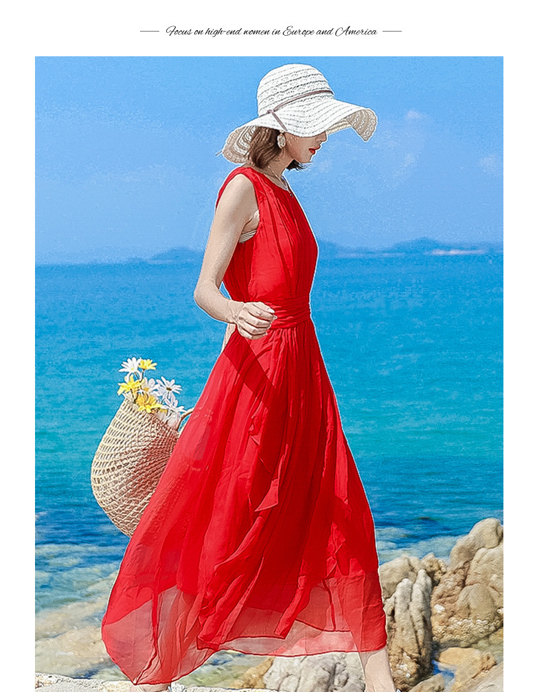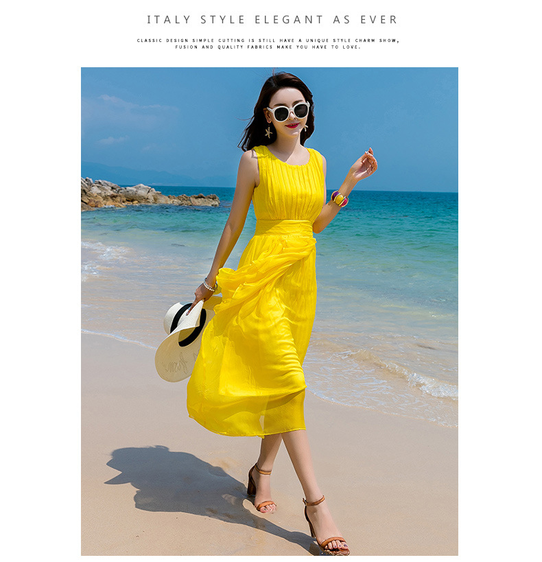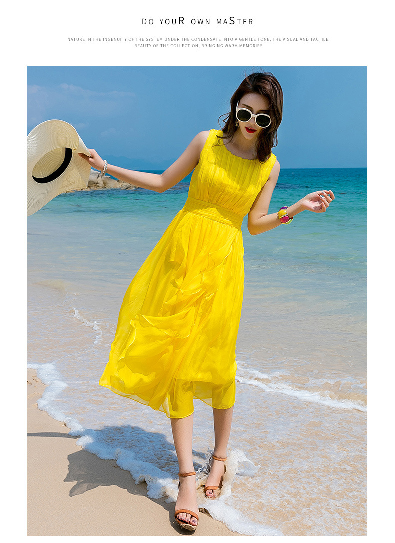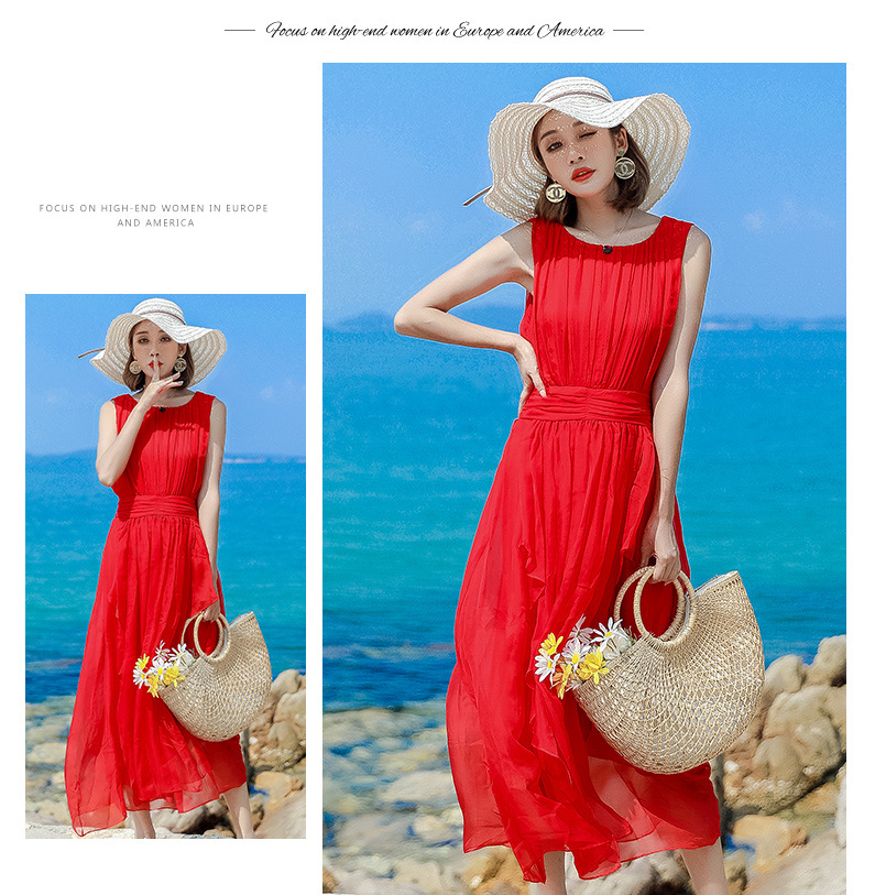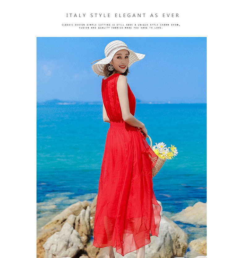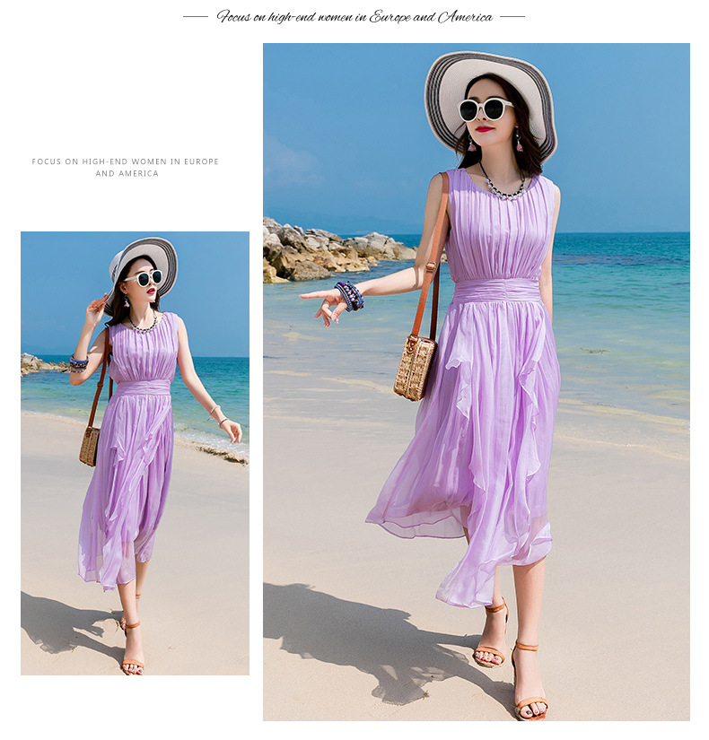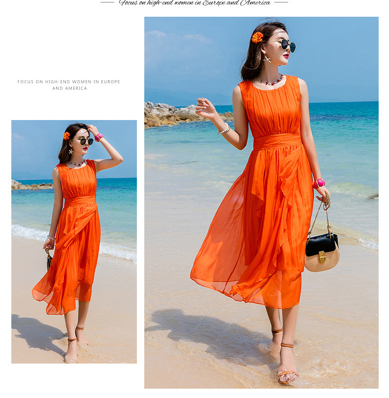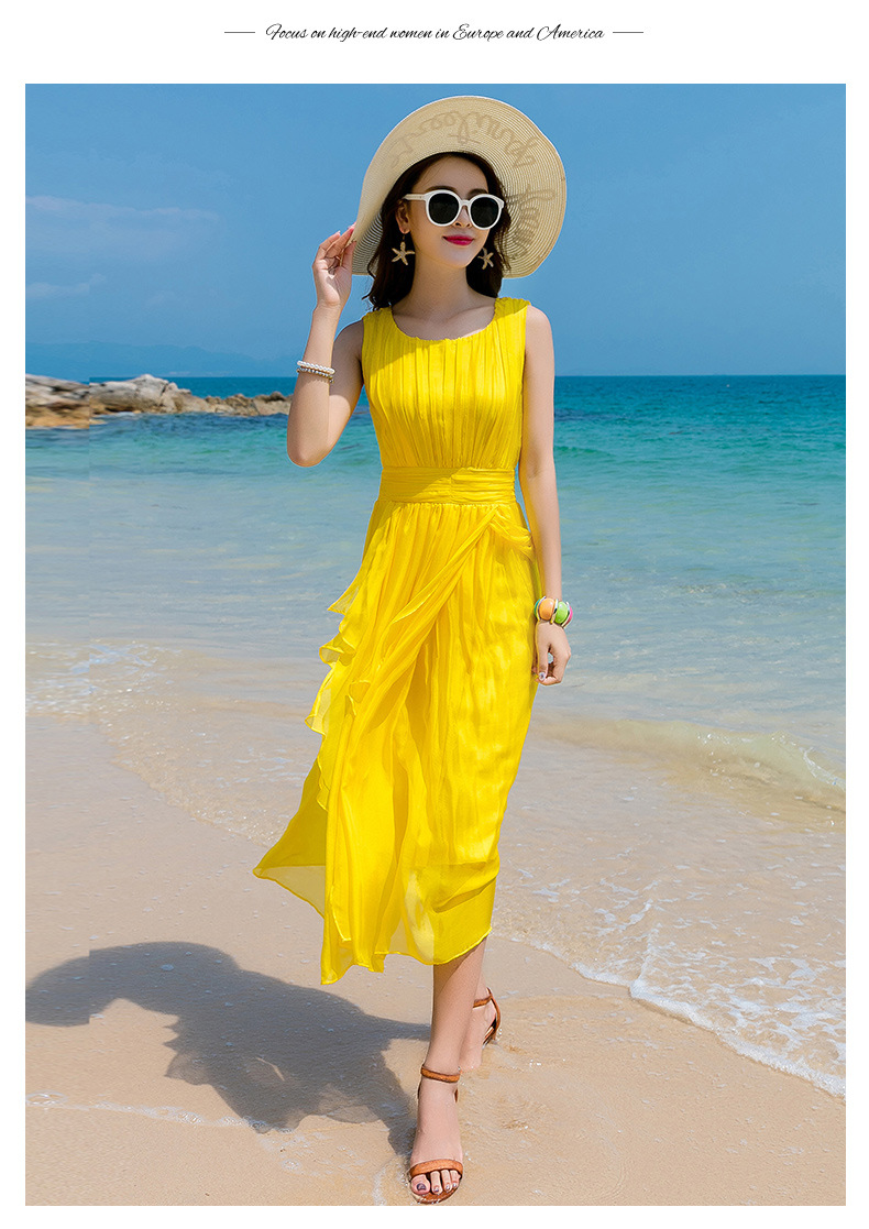 Chiếc đầm dáng dài thướt tha, ôm nhẹ vòng eo giúp tôn dáng người mặc. Chất vải lụa mềm mại, thoáng mát, rất phù hợp cho những chuyến du lịch biển hay dạo phố. Thiết kế một màu thuần túy với phong cách phóng khoáng, mang đến cảm giác thoải mái và nữ tính. Có thể mặc kết hợp với dép bệt và mũ rộng vành để tạo nên một set đồ hoàn chỉnh. | Tên sản phẩm: Váy Đầm Liền Thân Nữ Chất Liệu Lụa Tơ Tằm Dáng Ôm Đồ Đi Biển Váy Maxi - Thời Trang Nữ | Mã sản phẩm: L2465 - Giá: 2.120.000đ | Mã nhà sản xuất: SHDA-G05Hình ảnh sản phẩm
