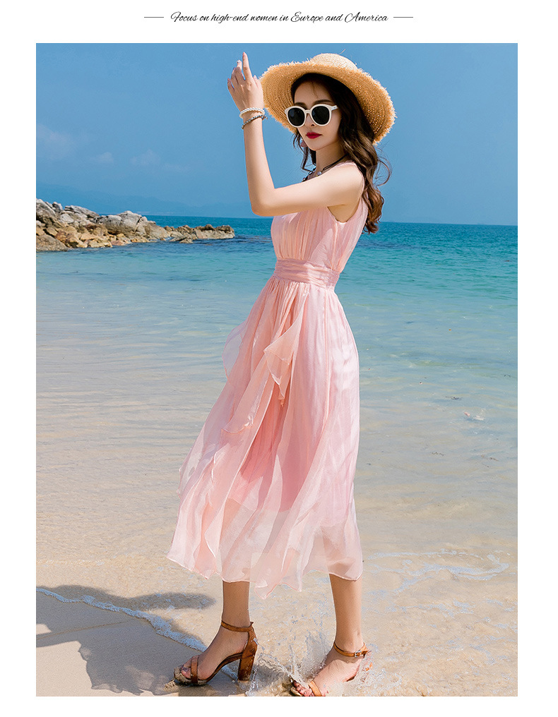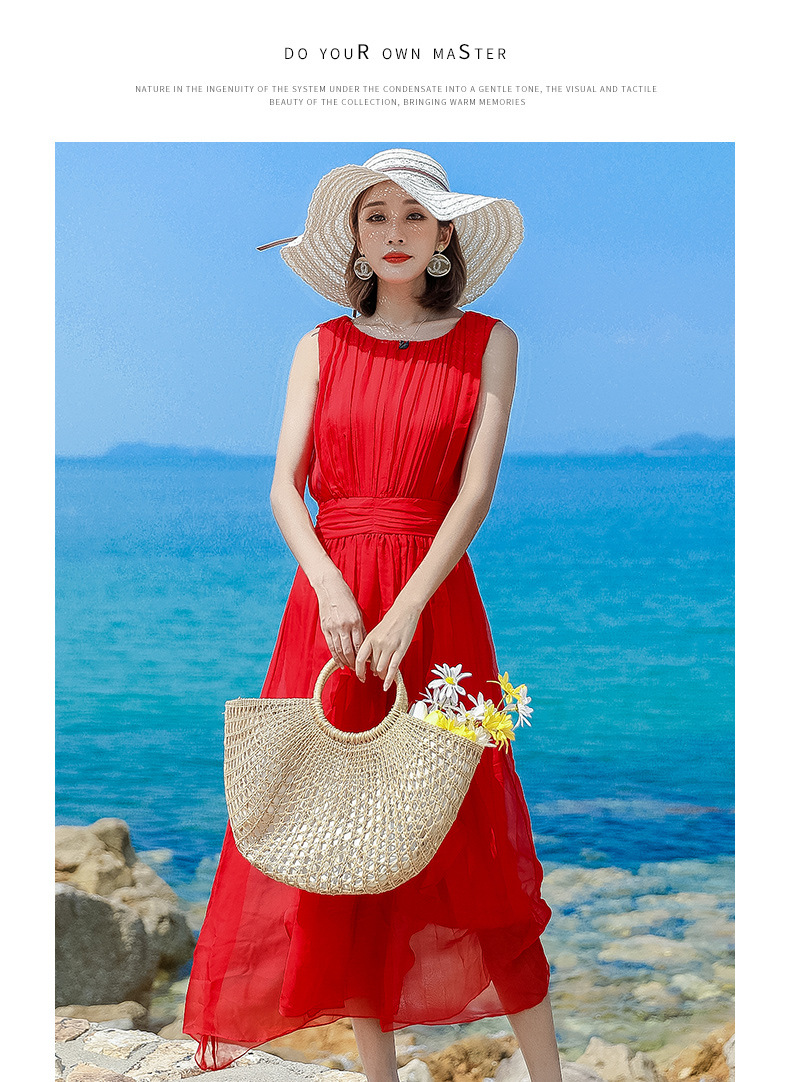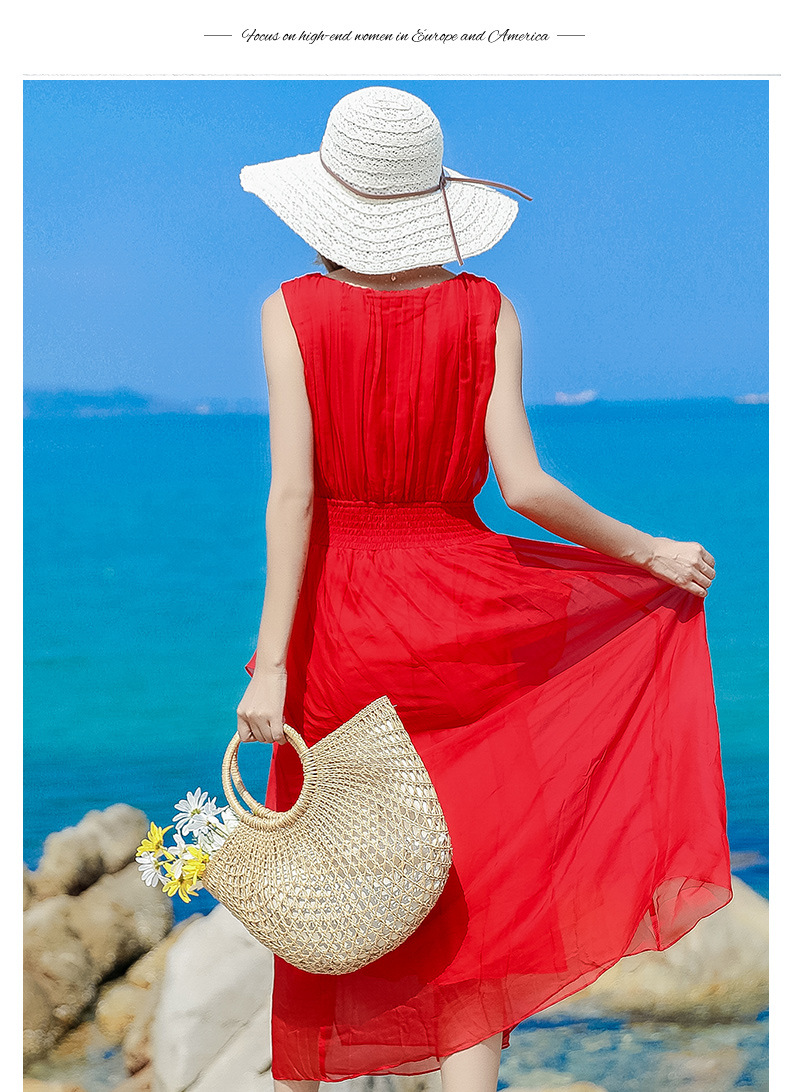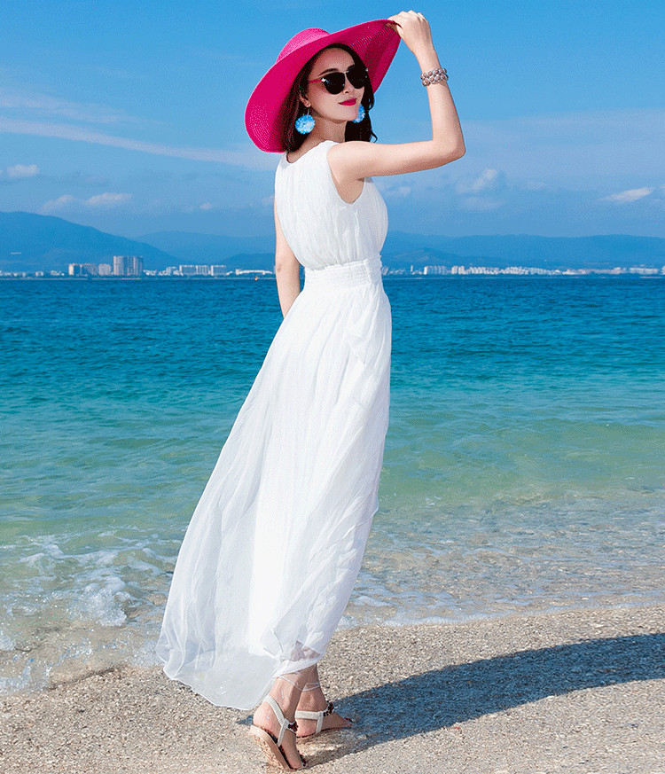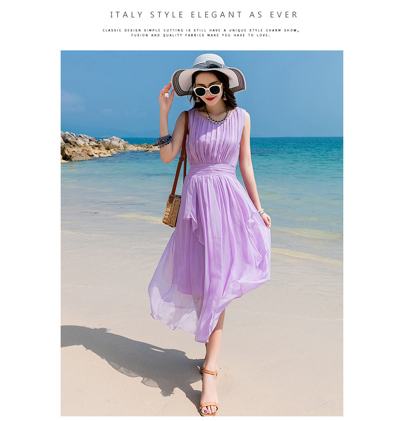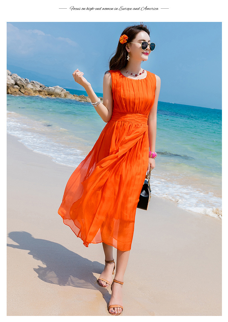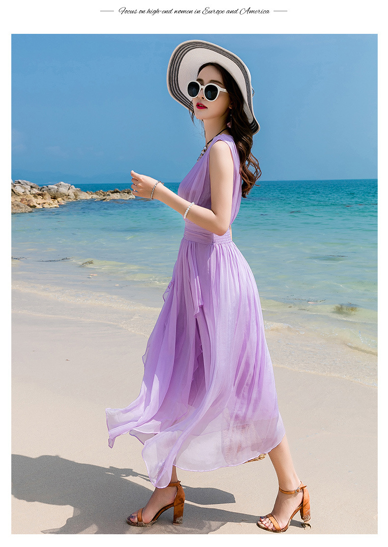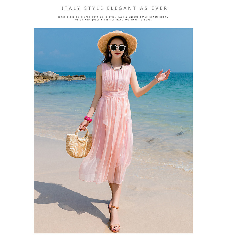 Chiếc đầm dáng dài thướt tha, ôm nhẹ vòng eo giúp tôn dáng người mặc. Chất vải lụa mềm mại, thoáng mát, rất phù hợp cho những chuyến du lịch biển hay dạo phố. Thiết kế một màu thuần túy với phong cách phóng khoáng, mang đến cảm giác thoải mái và nữ tính. Có thể mặc kết hợp với dép bệt và mũ rộng vành để tạo nên một set đồ hoàn chỉnh. | Tên sản phẩm: Váy Đầm Liền Thân Nữ Chất Liệu Lụa Tơ Tằm Dáng Ôm Đồ Đi Biển Váy Maxi - Thời Trang Nữ | Mã sản phẩm: L2465 - Giá: 2.120.000đ | Mã nhà sản xuất: SHDA-G05Hình ảnh sản phẩm