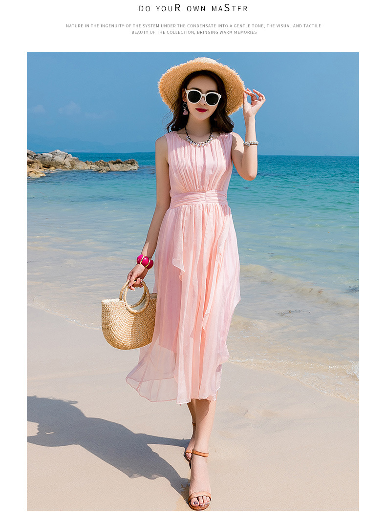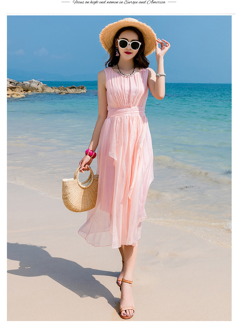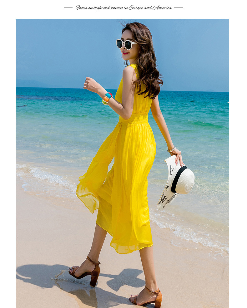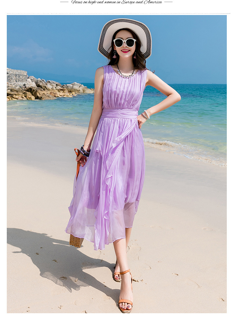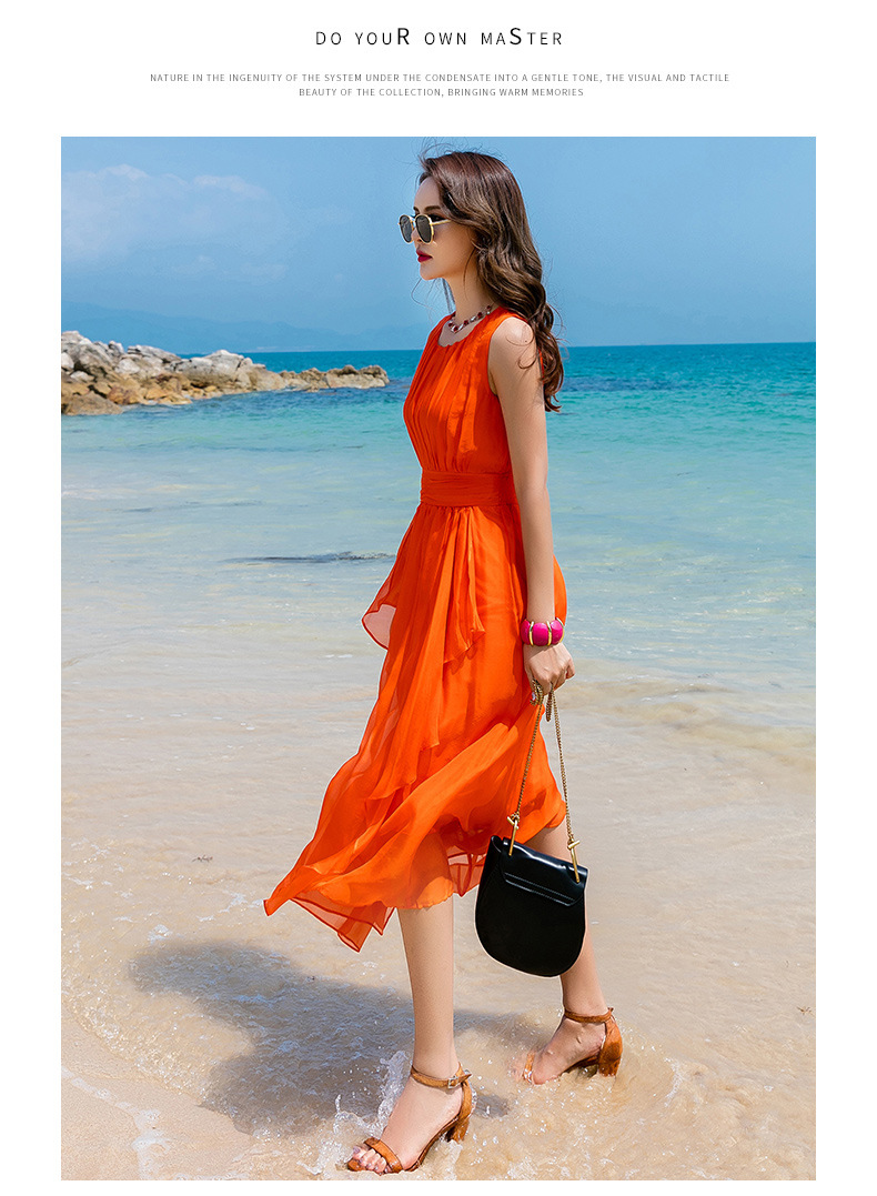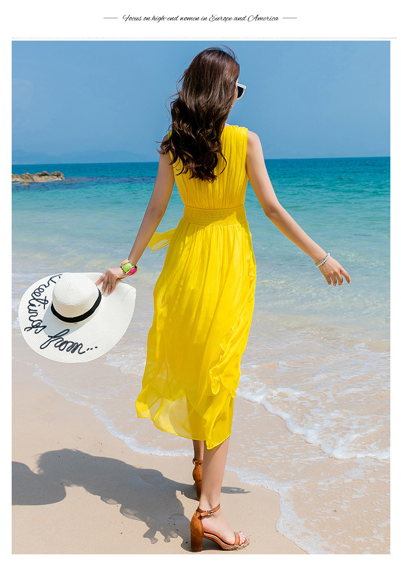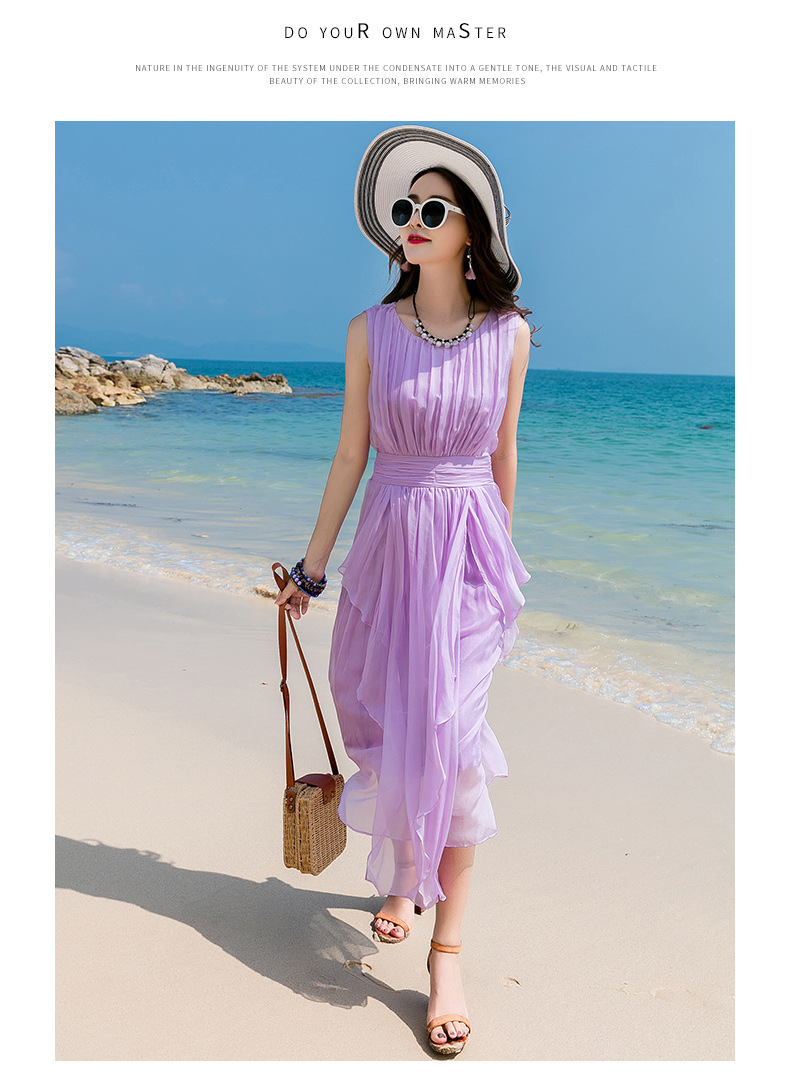 Chiếc đầm dáng dài thướt tha, ôm nhẹ vòng eo giúp tôn dáng người mặc. Chất vải lụa mềm mại, thoáng mát, rất phù hợp cho những chuyến du lịch biển hay dạo phố. Thiết kế một màu thuần túy với phong cách phóng khoáng, mang đến cảm giác thoải mái và nữ tính. Có thể mặc kết hợp với dép bệt và mũ rộng vành để tạo nên một set đồ hoàn chỉnh. | Tên sản phẩm: Váy Đầm Liền Thân Nữ Chất Liệu Lụa Tơ Tằm Dáng Ôm Đồ Đi Biển Váy Maxi - Thời Trang Nữ | Mã sản phẩm: L2465 - Giá: 2.120.000đ | Mã nhà sản xuất: SHDA-G05Hình ảnh sản phẩm