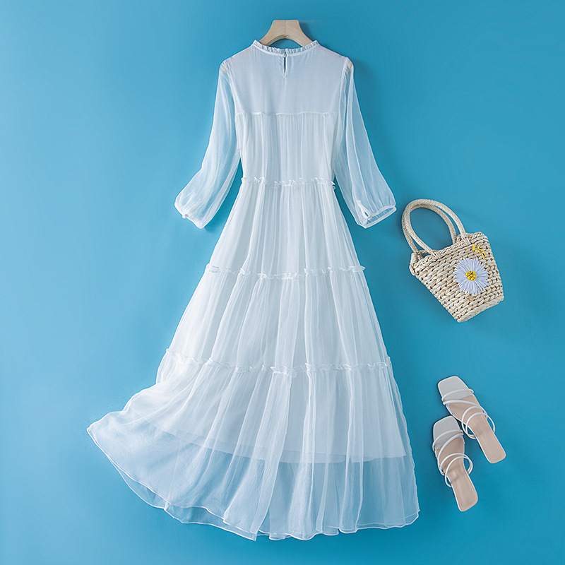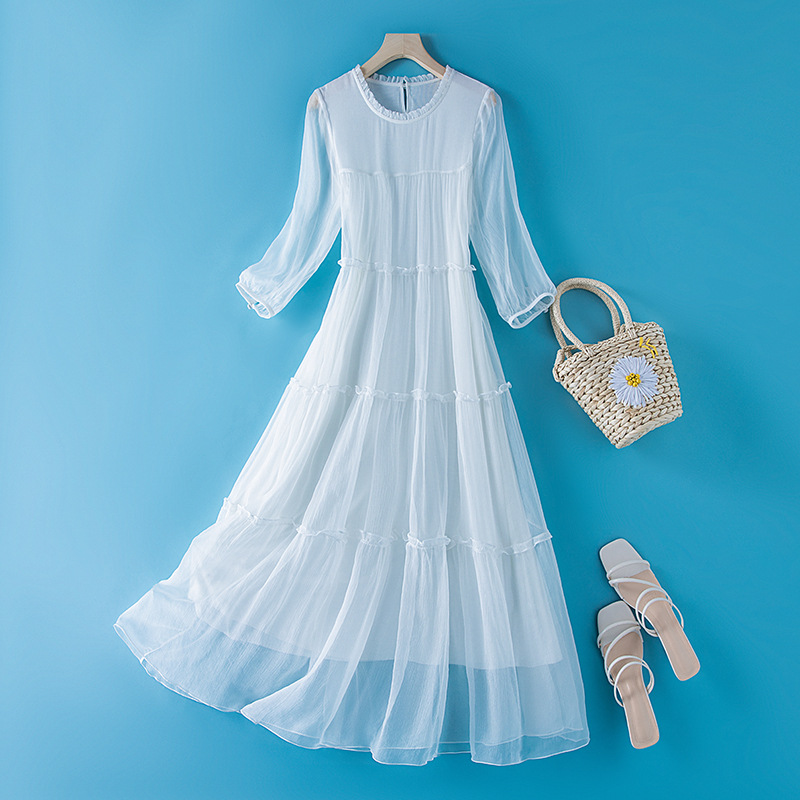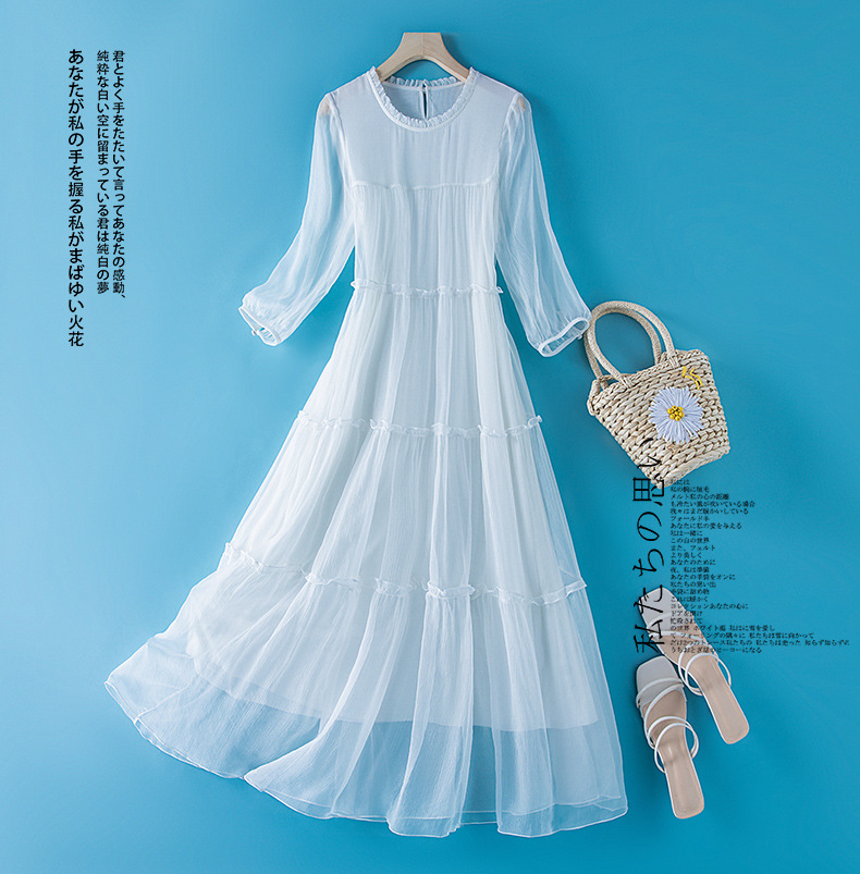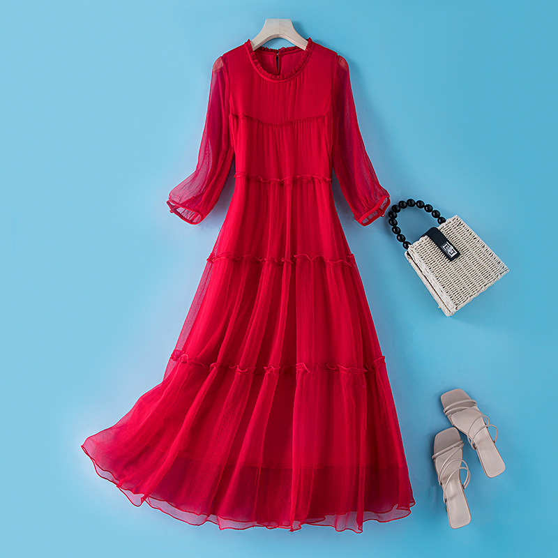 Chiếc váy dài từ chất liệu tơ lụa mềm mại, mang phong cách dân gian phóng khoáng. Thiết kế dáng rộng thoải mái, tôn vinh nét đẹp dịu dàng và thanh lịch. Sản phẩm thích hợp cho những ngày hè oi bức hoặc dạo phố cuối tuần. Cách sử dụng đơn giản, kết hợp cùng dép mỏng và túi xách vải để tạo điểm nhấn. Dễ dàng giặt tay và phơi trong bóng mát để giữ form vải bền lâu. | Tên sản phẩm: Váy Đầm Liền Thân Dáng Dài Nữ Chất Liệu Lụa Tơ Tằm Hàng Mùa Hè - Thời Trang Nữ | Mã sản phẩm: L2478 - Giá: 2.310.000đ | Mã nhà sản xuất: SHDA-G05Hình ảnh sản phẩm