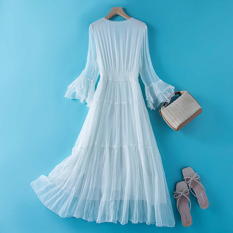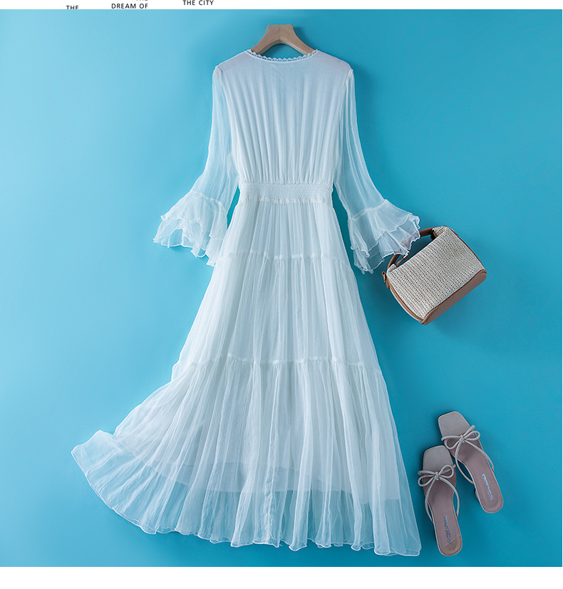 Chiếc đầm dài mang phong cách Pháp, lý tưởng cho những kỳ nghỉ ở bãi biển. Chất vải lụa tự nhiên mang lại cảm giác mát mẻ và thoải mái suốt ngày dài. Thiết kế ôm nhẹ ở eo tôn lên những đường nét cơ thể một cách dịu dàng. Bạn có thể mặc nó khi dạo chơi ven biển, kết hợp cùng một chiếc mũ rộng vành và kính mát để hoàn thiện bộ trang phục. | Tên sản phẩm: Váy Đầm Liền Thân Dáng Dài Nữ Chất Liệu Lụa Tơ Tằm Hàng Mùa Hè Đồ Đi Biển Váy Maxi - Thời Trang Nữ | Mã sản phẩm: L2480 - Giá: 2.210.000đ | Mã nhà sản xuất: SHDA-G05Hình ảnh sản phẩm