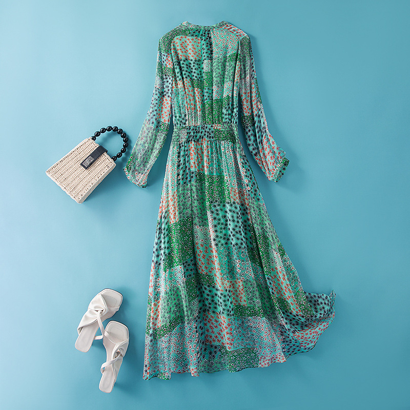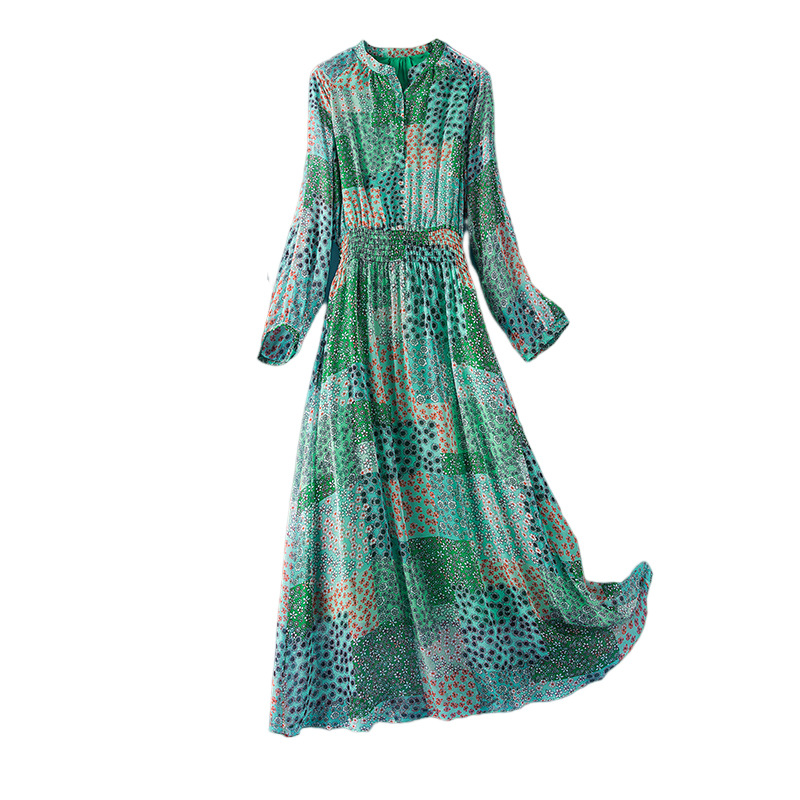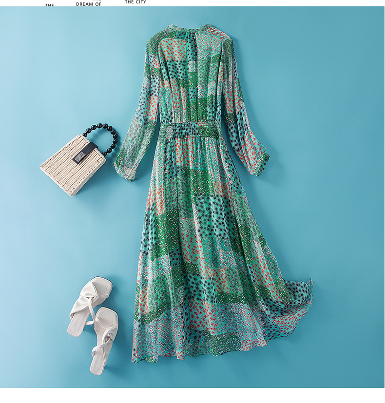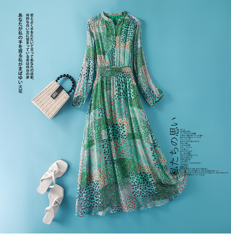 Chiếc đầm dáng dài tay thích hợp cho mùa xuân và thu. Chất vải lụa mềm mại, thoáng mát mang lại cảm giác dễ chịu khi mặc. Thiết kế ôn nhẹ cơ thể, eo có dây thun co giãn ôm vừa vặn, tôn lên những đường nét của người mặc. Kiểu dáng trẻ trung, năng động với sắc xanh tươi mát điểm xuyết nét đỏ rực rỡ. Có thể phối cùng giày bệt hoặc sandal để tạo nên vẻ đẹp dịu dàng, thanh lịch cho những dịp gặp gỡ hằng ngày. | Tên sản phẩm: Váy Đầm Liền Thân Dáng Dài Nữ Chất Liệu Lụa Tơ Tằm Dáng Ôm Hàng Mùa Xuân Thu Đông - Thời Trang Nữ | Mã sản phẩm: L2482 - Giá: 2.360.000đ | Mã nhà sản xuất: SHDA-G05Hình ảnh sản phẩm