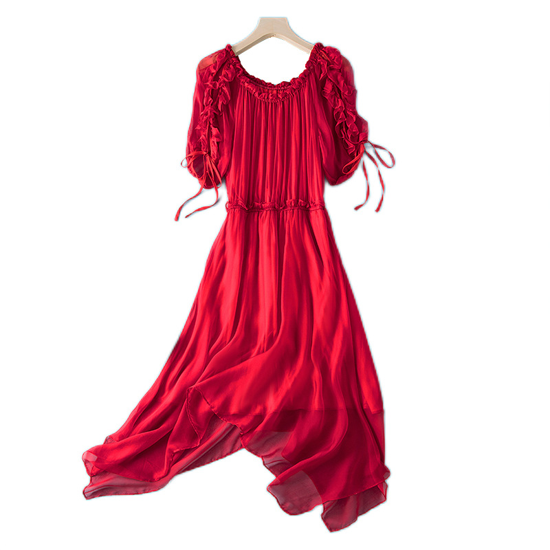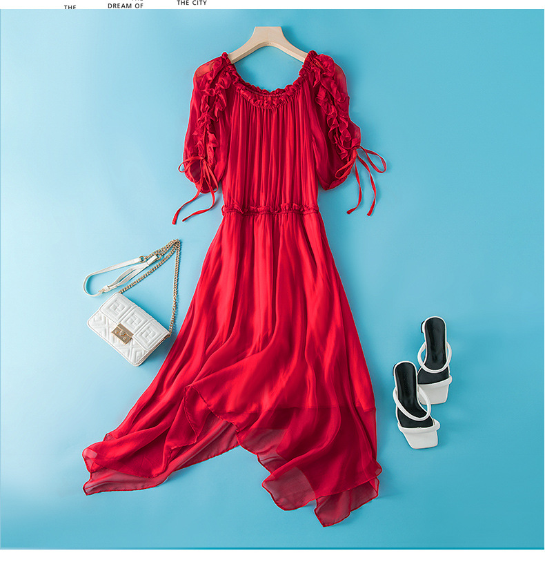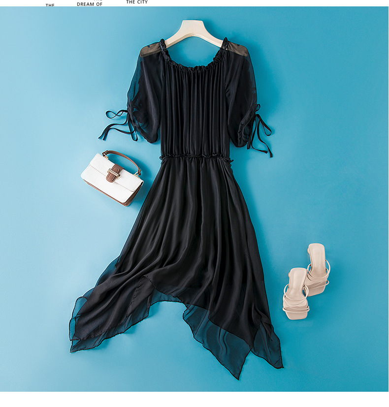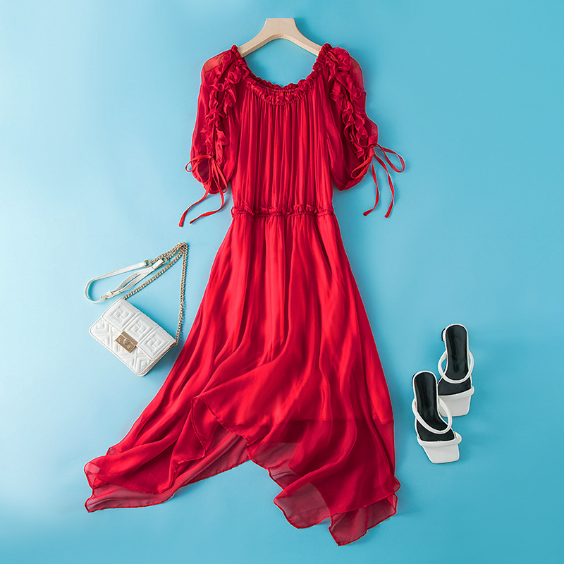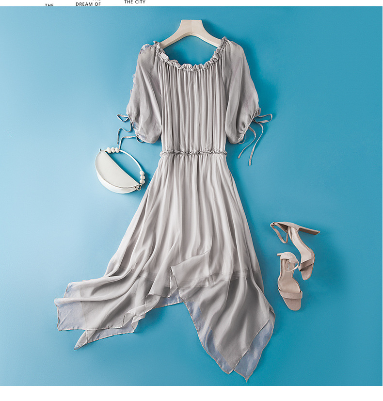 Chiếc đầm mới dành cho mùa hè, được dệt từ chất liệu tơ lụa mềm mại và thoáng mát. Thiết kế có phần cổ và tay áo điểm xuyến những đường viền dập ly độc đáo. Điểm nhấn ấn tượng là phần chân váy dài ngang bắp chân với kiểu cắt xẻ không đều nhau, tạo nên sự uyển chuyển với mỗi bước di chuyển. Mẫu đầm này rất phù hợp để dạo phố hay đi chơi ở bãi biển. | Tên sản phẩm: Váy Đầm Liền Thân Nữ Chất Liệu Lụa Tơ Tằm Hàng Mùa Hè - Thời Trang Nữ | Mã sản phẩm: L2483 - Giá: 2.160.000đ | Mã nhà sản xuất: SHDA-G05Hình ảnh sản phẩm