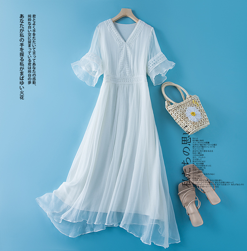 Chiếc váy dài thướt tha, hoàn hảo cho những ngày hè. Chất liệu tơ lụa mềm mại, nhẹ nhàng và thoáng mát, mang lại cảm giác dễ chịu khi mặc. Thiết kế dáng dài phù hợp để dạo phố hay đi chơi biển. Kiểu váy đơn giản nhưng thanh lịch, dễ dàng phối cùng các loại phụ kiện. Bạn chỉ cần mặc vào và tận hưởng cảm giác thoải mái, tự tin tỏa sáng trong mọi hoạt động. | Tên sản phẩm: Váy Đầm Liền Thân Nữ Chất Liệu Lụa Tơ Tằm Hàng Mùa Hè - Thời Trang Nữ | Mã sản phẩm: L2488 - Giá: 1.730.000đ | Mã nhà sản xuất: SHDA-G05Hình ảnh sản phẩm