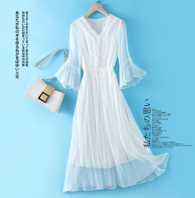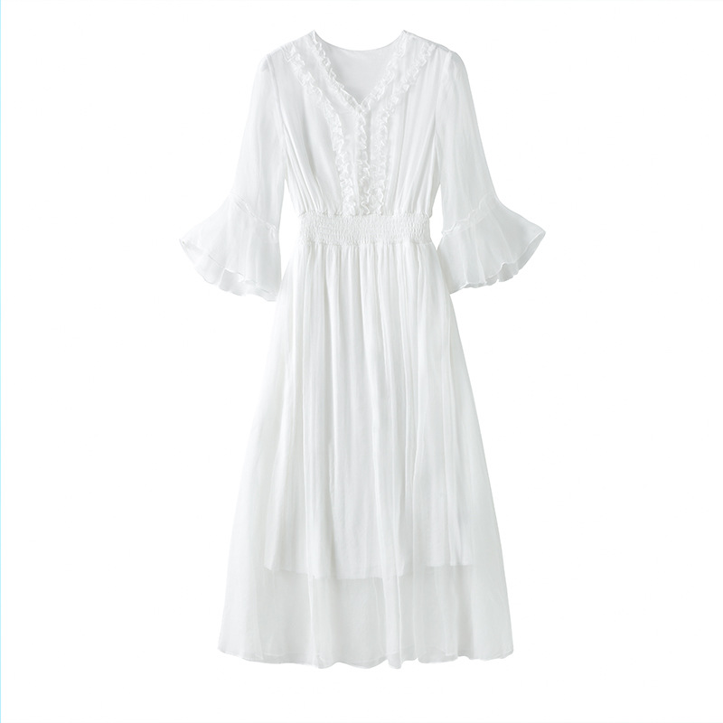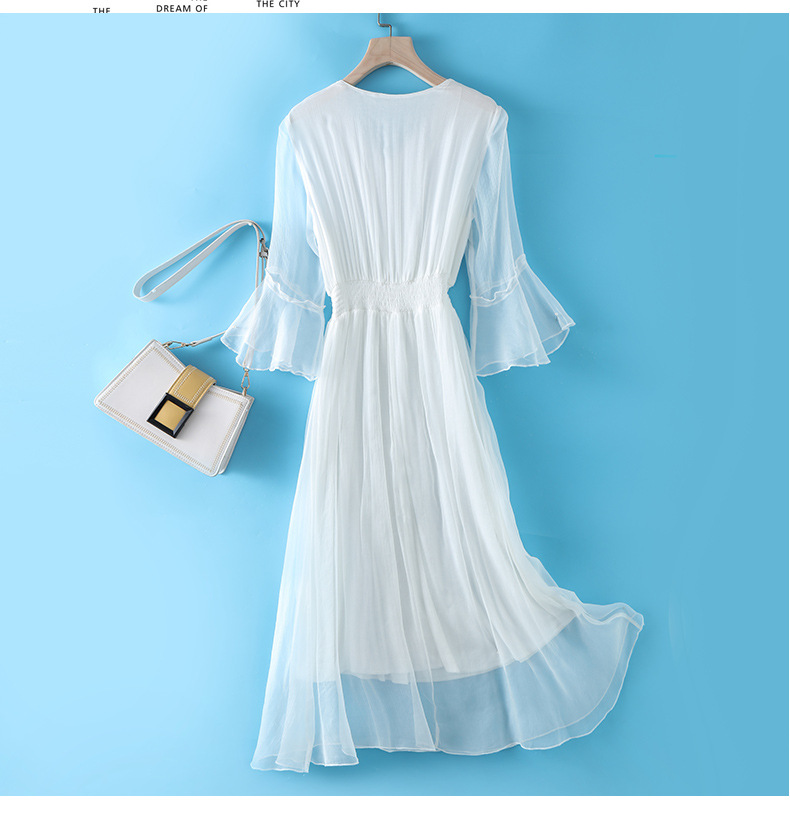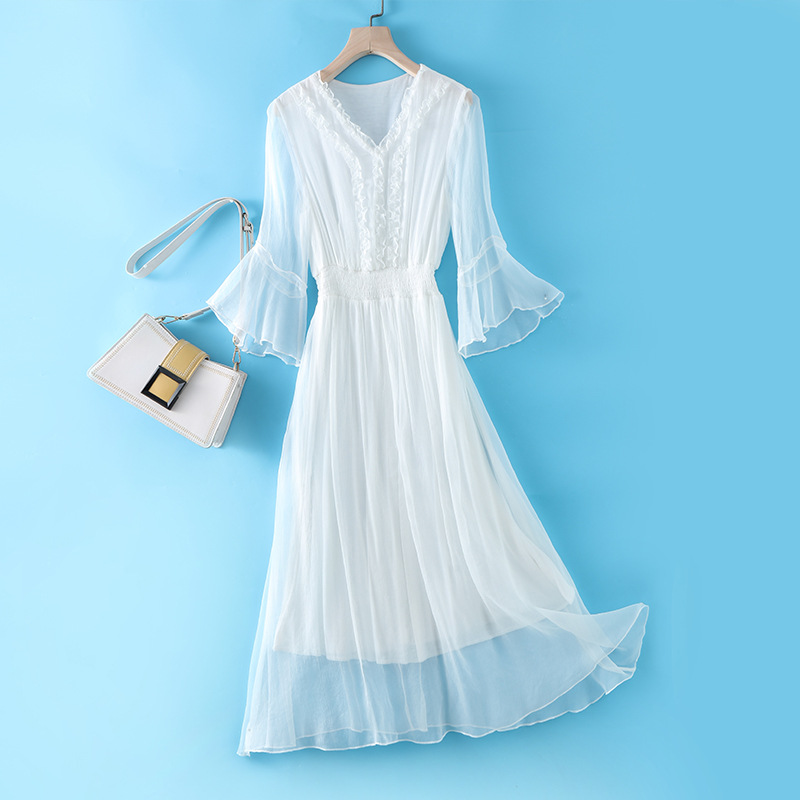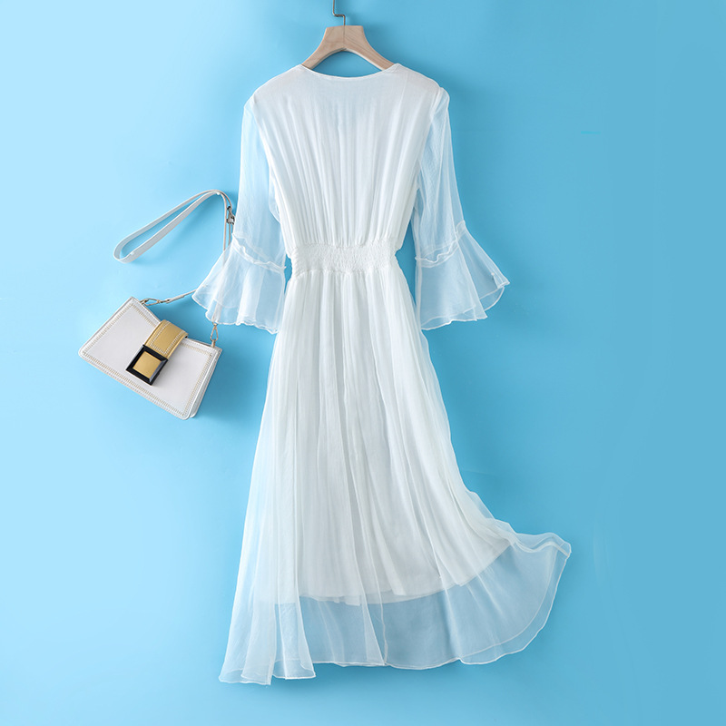 Chiếc đầm dài mang phong cách dạo biển, điểm nhấn là phần eo được may ôn tạo dáng thanh thoát. Chất vải mềm mại và nhẹ, giúp người mặc cảm thấy dễ chịu trong những ngày hè. Kiểu dáng bồng bềnh, điệu đà, phù hợp để đi chơi hoặc dạo bờ biển. Có thể phối cùng dép qu hậu và một chiếc mũ rộng vành để trông thật xinh xắn. | Tên sản phẩm: Váy Đầm Liền Thân Nữ Chất Liệu Lụa Tơ Tằm Hàng Mùa Hè - Thời Trang Nữ | Mã sản phẩm: L2497 - Giá: 2.210.000đ | Mã nhà sản xuất: SHDA-G05Hình ảnh sản phẩm