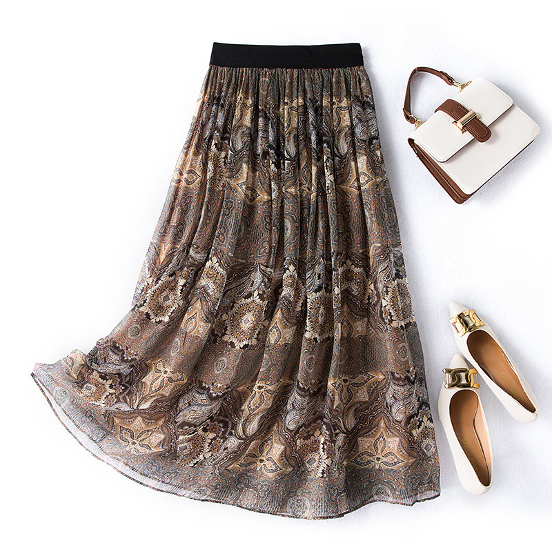 Chiếc váy dài mùa hè này có họa tiết hoa tươi sáng, được dệt từ chất liệu tơ lụa mềm mại và thoáng mát. Thiết kế ôn nhẹ giúp tôn lên dáng người một cách tự nhiên. Phần eo có dây thun co giãn, tạo cảm giác dễ chịu và dễ dàng mặc vào. Sản phẩm phù hợp cho nhiều dịp đi chơi, mang đến vẻ ngoại hình nữ tính và thoải mái. | Tên sản phẩm: Chân Váy Đầm Nữ Chất Liệu Lụa Tơ Tằm Dáng Ôm Họa Tiết Hoa Hàng Mùa Hè - Thời Trang Nữ | Mã sản phẩm: L2505 - Giá: 1.490.000đ | Mã nhà sản xuất: SHDA-G04Hình ảnh sản phẩm