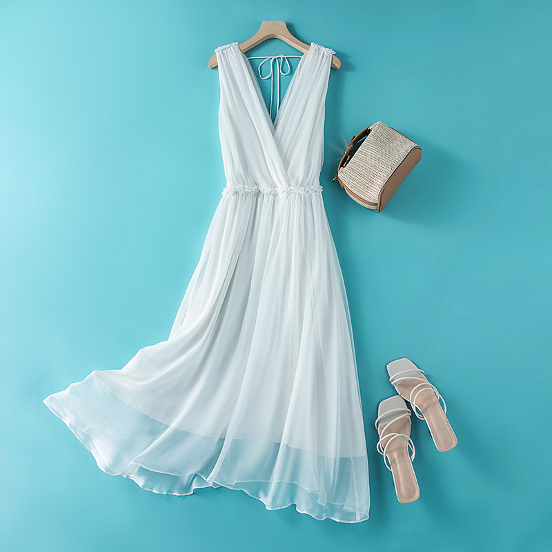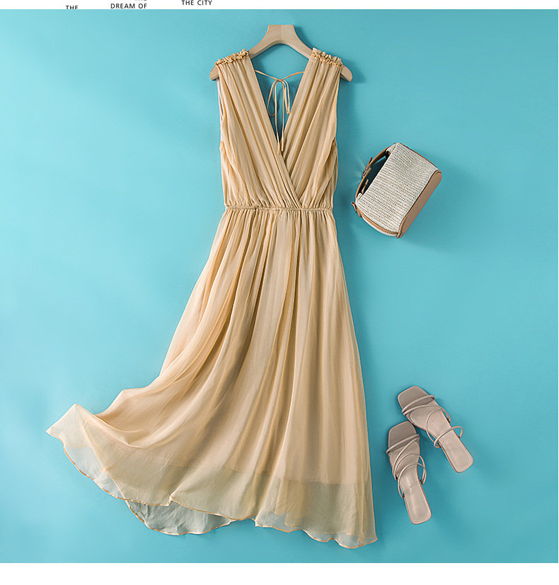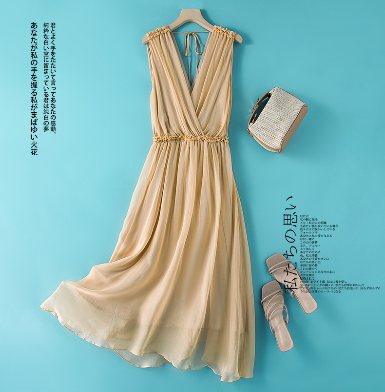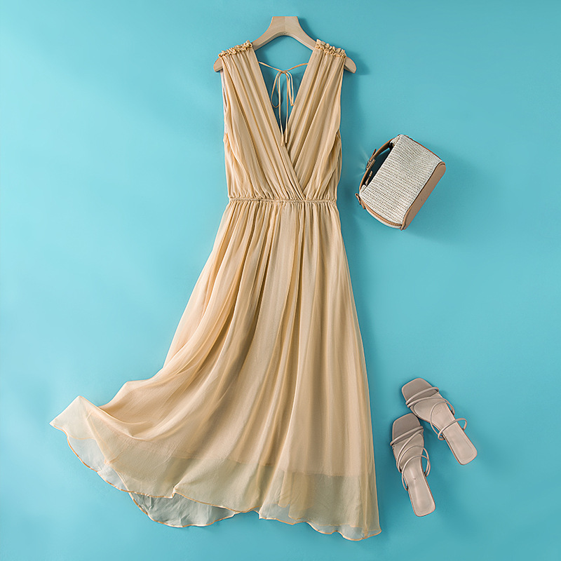 Chiếc váy dài dành cho kỳ nghỉ hè, mang phong cách nhẹ nhàng và thanh thoát. Chất vải lụa mềm mại, thoáng mát giúp bạn cảm thấy dễ chịu khi mặc ở biển hay dạo phố. Thiết kế cổ chữ V và tay dài tôn vinh vẻ đẹp dịu dàng. Sản phẩm phù hợp để mặc đi chơi, chụp ảnh. Có thể giặt tay nhẹ nhàng và phơi trong bóng râm để giữ vải bền đẹp. | Tên sản phẩm: Váy Đầm Liền Thân Dáng Dài Nữ Chất Liệu Lụa Tơ Tằm Cổ Chữ V Hàng Mùa Hè - Thời Trang Nữ | Mã sản phẩm: L2552 - Giá: 2.020.000đ | Mã nhà sản xuất: SHDA-G05Hình ảnh sản phẩm