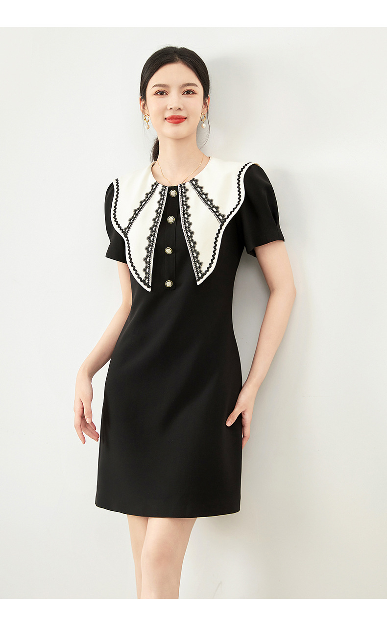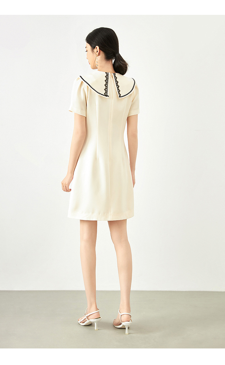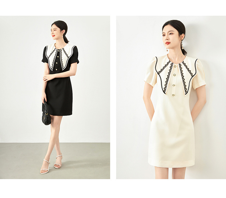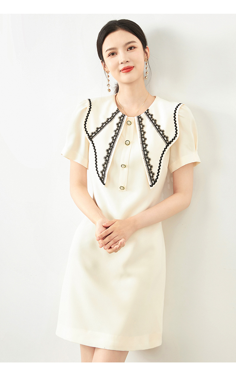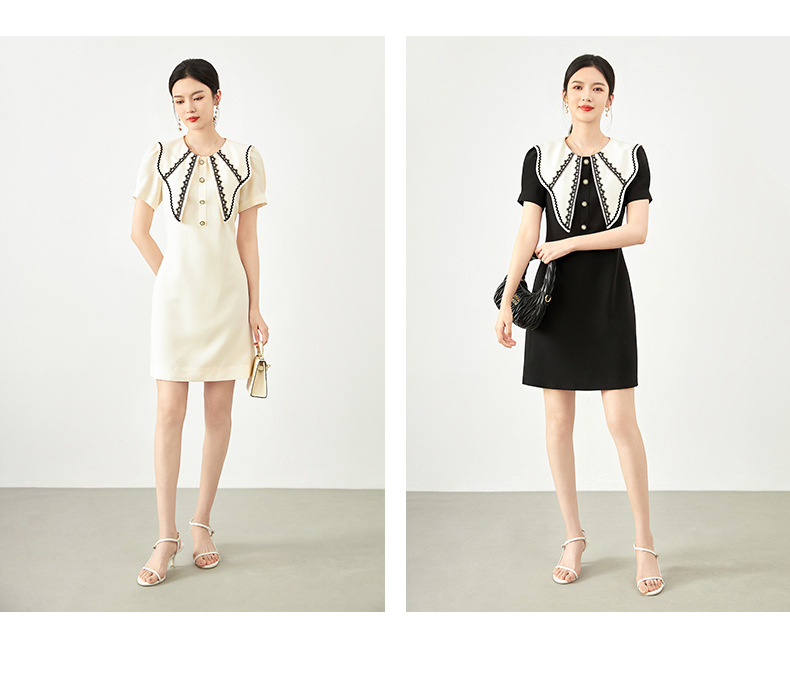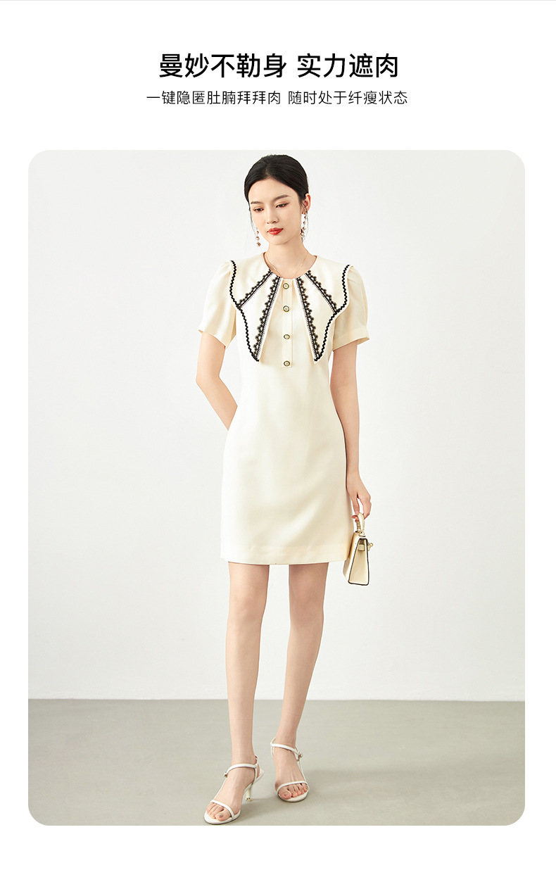 Chiếc đầm mới mang phong cách Pháp với điểm nhấn là cổ áo bèo cách điệu, giúp tôn vẻ tươi trẻ. Thiết kế ôm eo tinh tế kết hợp cùng tay bồng duyên dáng, tạo nên một tổng thể thanh lịch và nữ tính. Chất vải mềm mại mang đến sự dễ chịu khi mặc. Sản phẩm phù hợp cho nhiều dịp khác nhau trong ngày, từ dạo phố đến những buổi gặp mặt. Có thể giặt bằng tay và phơi ở nơi thoáng mát để giữ dáng áo bền đẹp. | Tên sản phẩm: Váy Đầm Liền Thân Nữ Trông Trẻ Hơn Tuổi - Thời Trang Nữ | Mã sản phẩm: L2564 - Giá: 1.960.000đ | Mã nhà sản xuất: SHDY-G05Hình ảnh sản phẩm