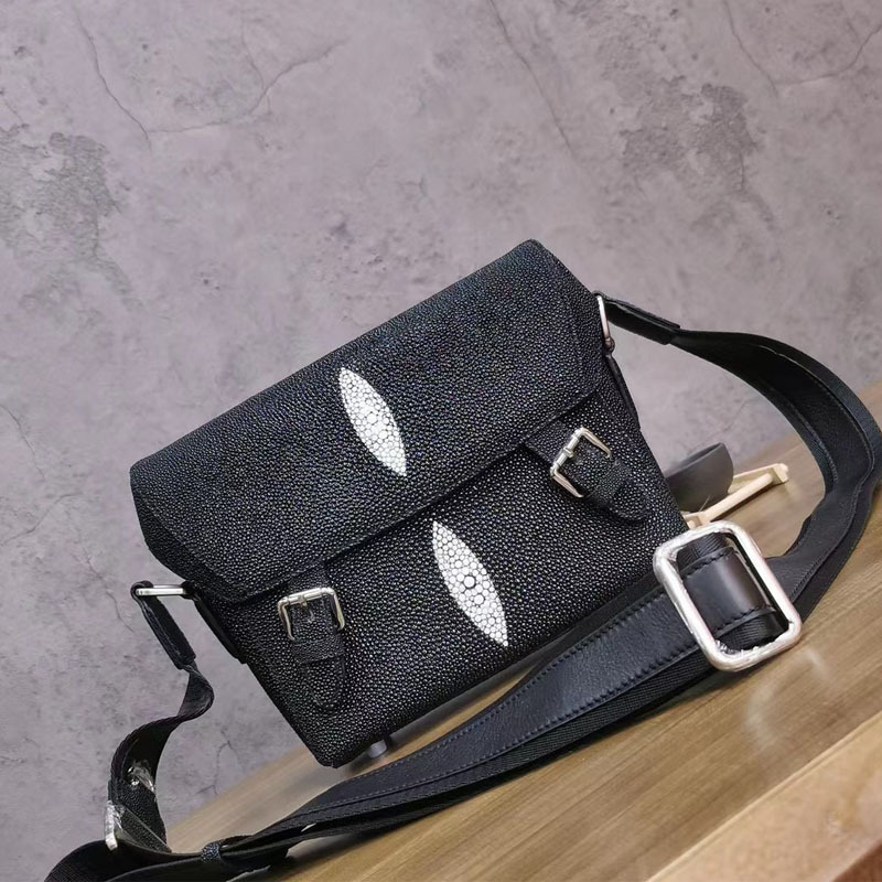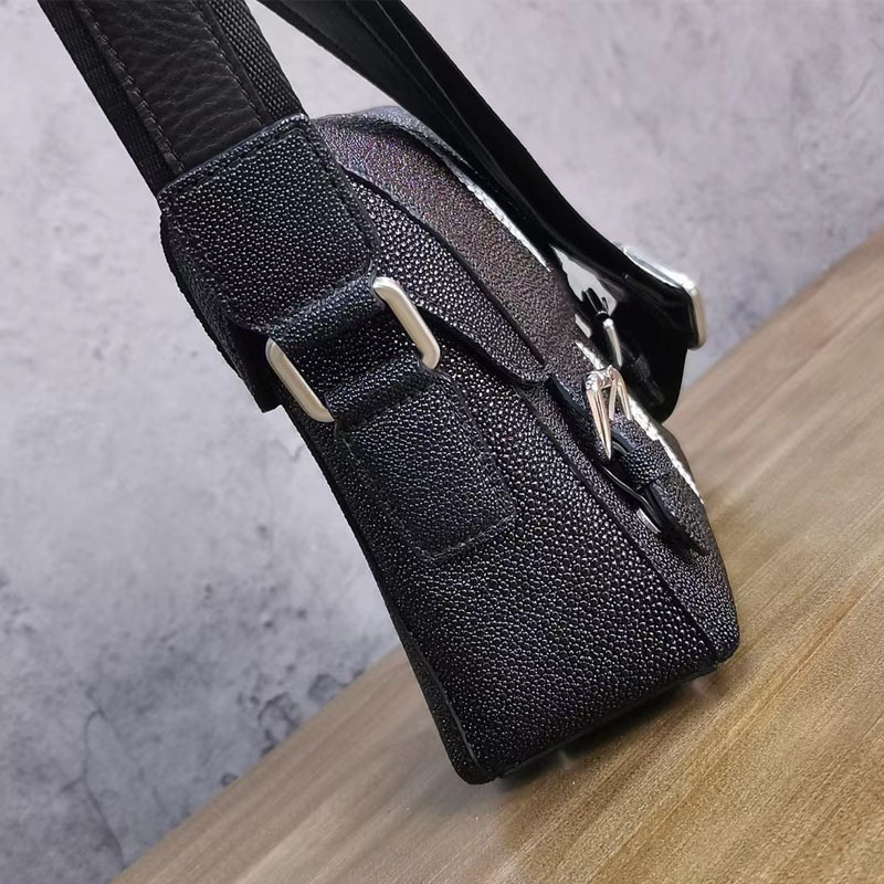 Chiếc túi đeo chéo này được làm từ chất liệu da cá đuối tự nhiên, mang đến vẻ ngoài độc đáo với bề mặt hạt lấp lánh như ngọc tr. Kiểu dáng thiết kế hiện đại, phù hợp cho nhiều dịp sử dụng hằng ngày. Túi có qu đeo v điều chỉnh được và ngăn chứa đồ rộng rãi bên trong. Bạn có thể đeo túi một cách thoải mái khi đi làm, đi chơi hay du lịch. Sản phẩm dành riêng cho nam giới, tôn vinh nét phong cách mạnh mẽ và cá tính. | Tên sản phẩm: Túi Đeo Vai Nam - Túi Xách Ví Nam | Mã sản phẩm: L2581 - Giá: 14.800.000đ | Mã nhà sản xuất: GUREG-G06Hình ảnh sản phẩm