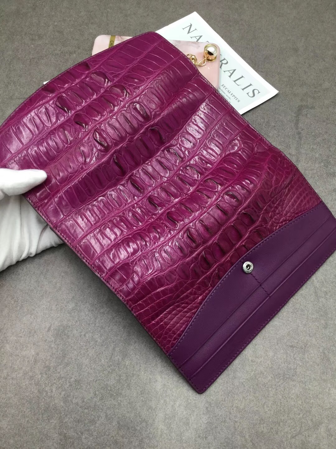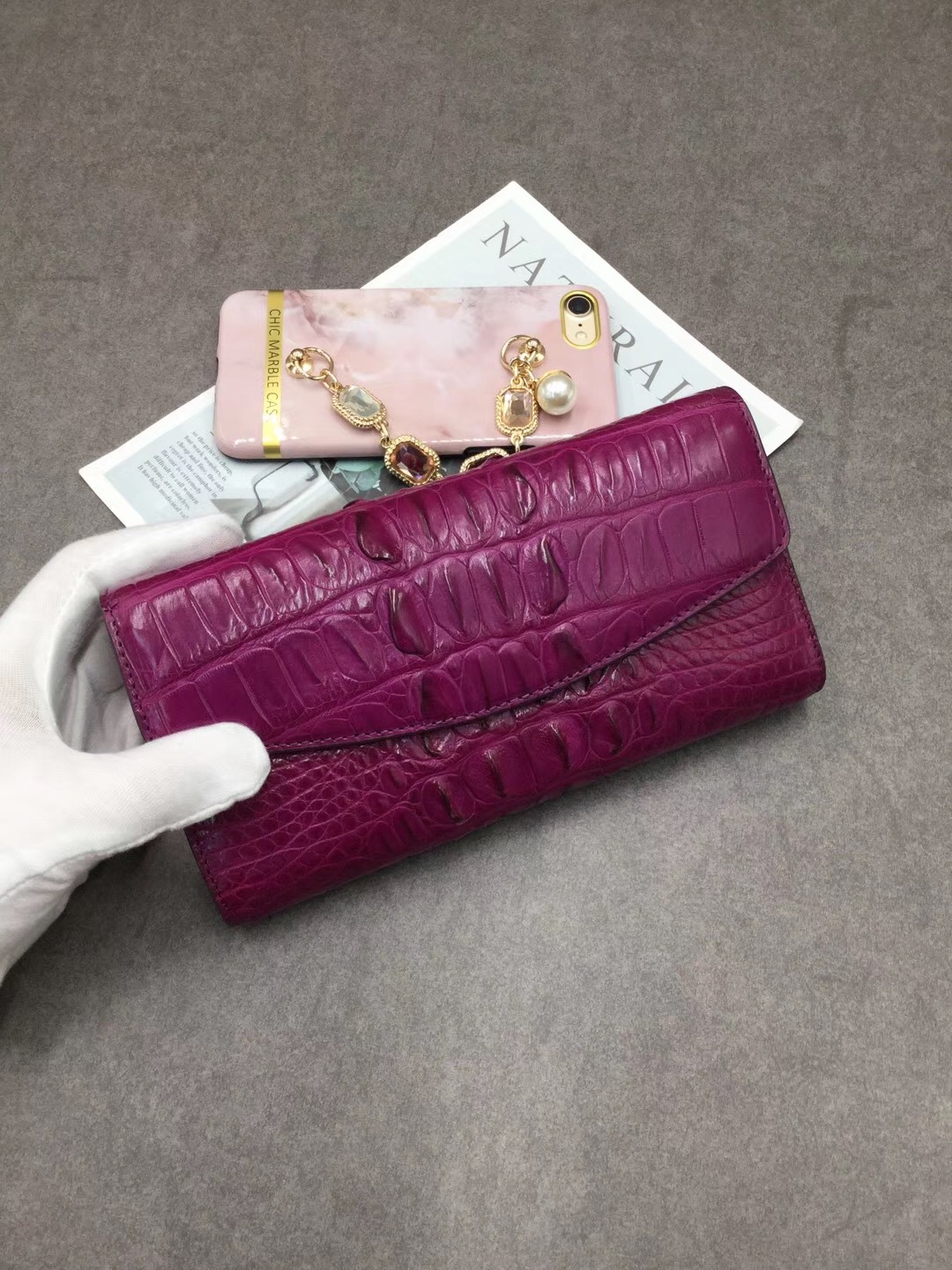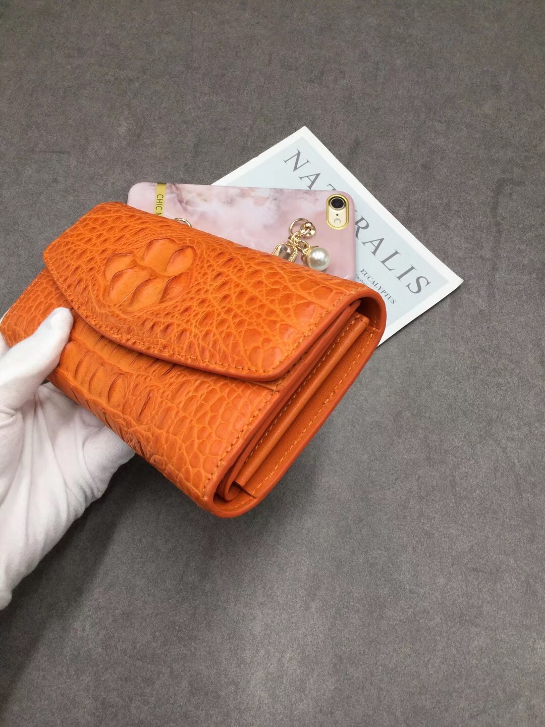Ví tiền gập ba dành cho nữ, điểm nhấn độc đáo với mặt trước được tạo hình xương cá sấu Thái Lan đầy ấn tượng. Kiểu dáng thời trang, phù hợp cho các dịp đi chơi hoặc dạo phố. Sản phẩm có ngăn đựng tiền và nhiều ngăn nhỏ tiện lợi cho thẻ, giấy tờ. Cách dùng đơn giản, chỉ cần mở khóa gập và sắp xếp đồ vật vào các ngăn được thiết kế sẵn. | Tên sản phẩm: Ví Bóp Cầm Tay Nữ - Túi Ví Nữ | Mã sản phẩm: L2603 - Giá: 4.160.000đ | Mã nhà sản xuất: GUREG-G06Hình ảnh sản phẩm