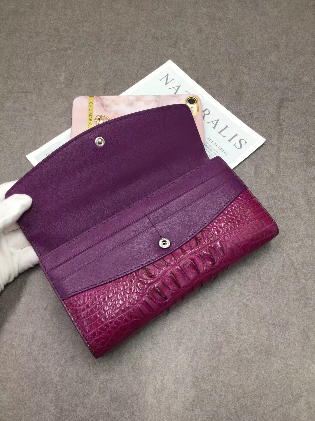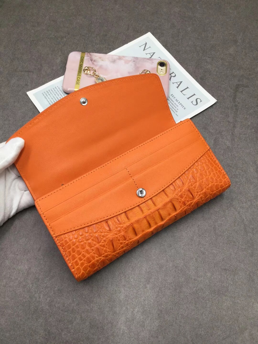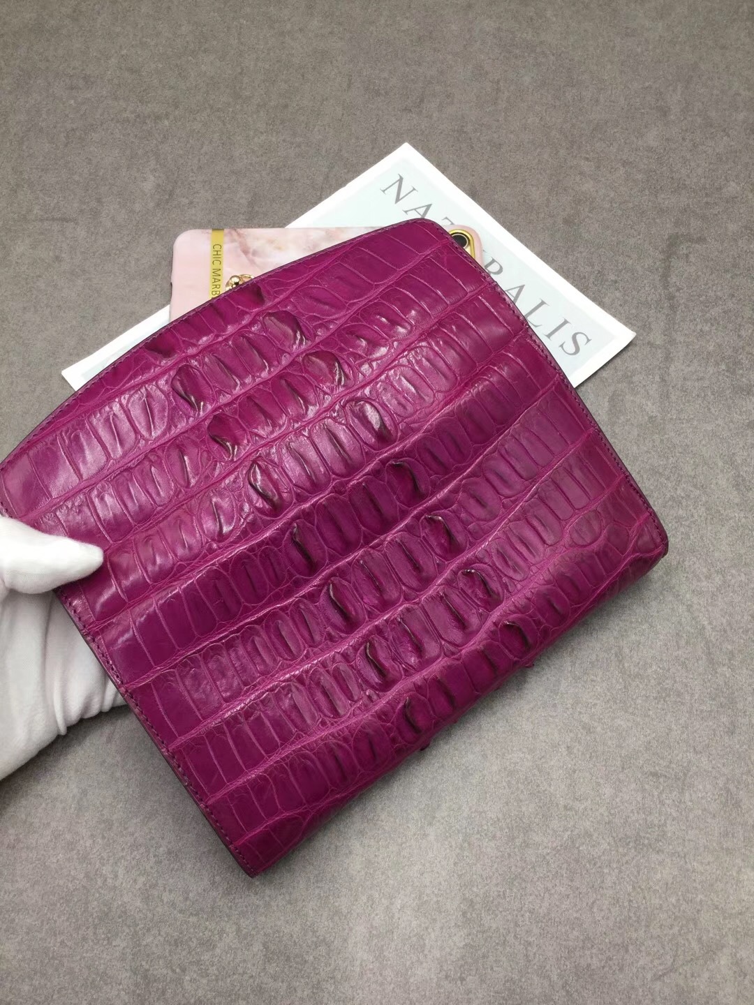 Ví tiền gập ba dành cho nữ, điểm nhấn độc đáo với mặt trước được tạo hình xương cá sấu Thái Lan đầy ấn tượng. Kiểu dáng thời trang, phù hợp cho các dịp đi chơi hoặc dạo phố. Sản phẩm có ngăn đựng tiền và nhiều ngăn nhỏ tiện lợi cho thẻ, giấy tờ. Cách dùng đơn giản, chỉ cần mở khóa gập và sắp xếp đồ vật vào các ngăn được thiết kế sẵn. | Tên sản phẩm: Ví Bóp Cầm Tay Nữ - Túi Ví Nữ | Mã sản phẩm: L2603 - Giá: 4.160.000đ | Mã nhà sản xuất: GUREG-G06Hình ảnh sản phẩm