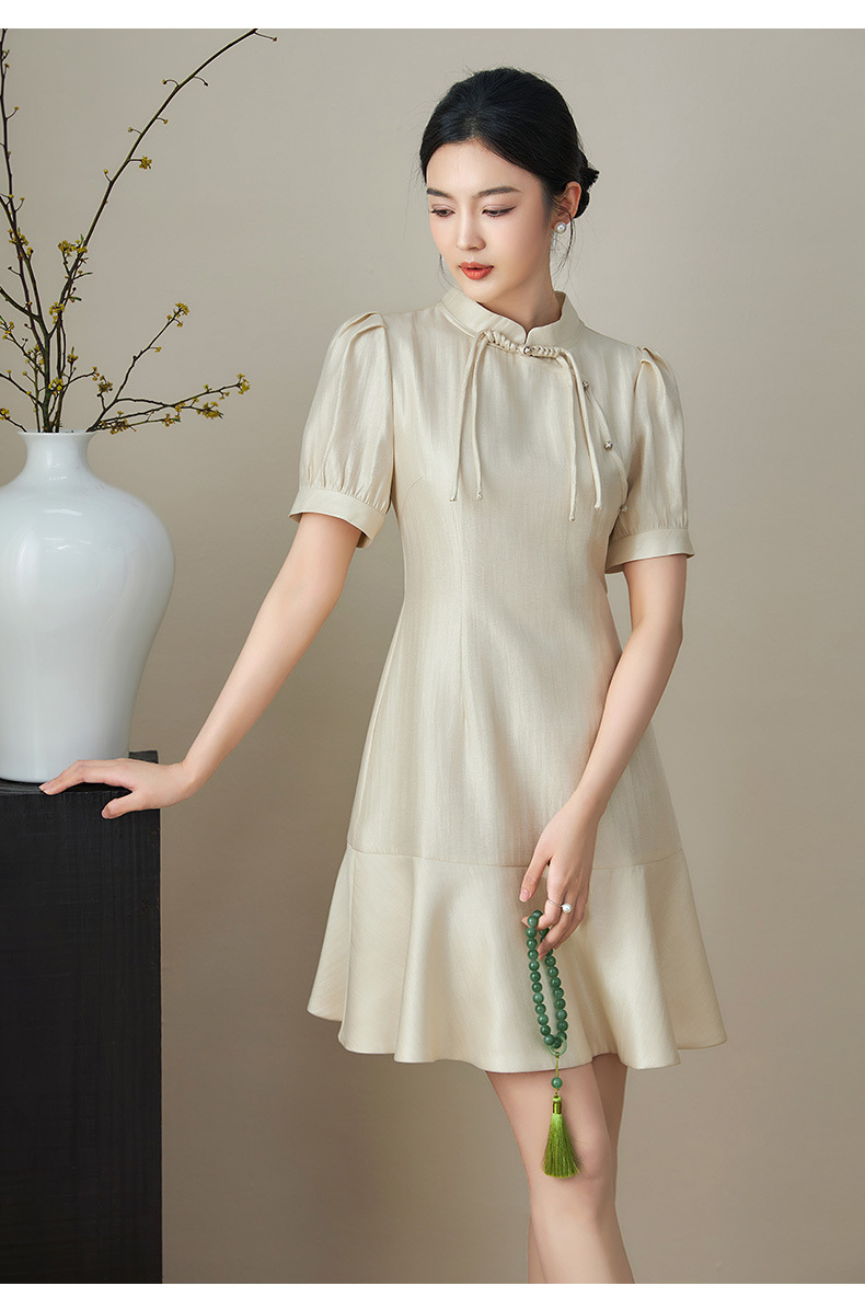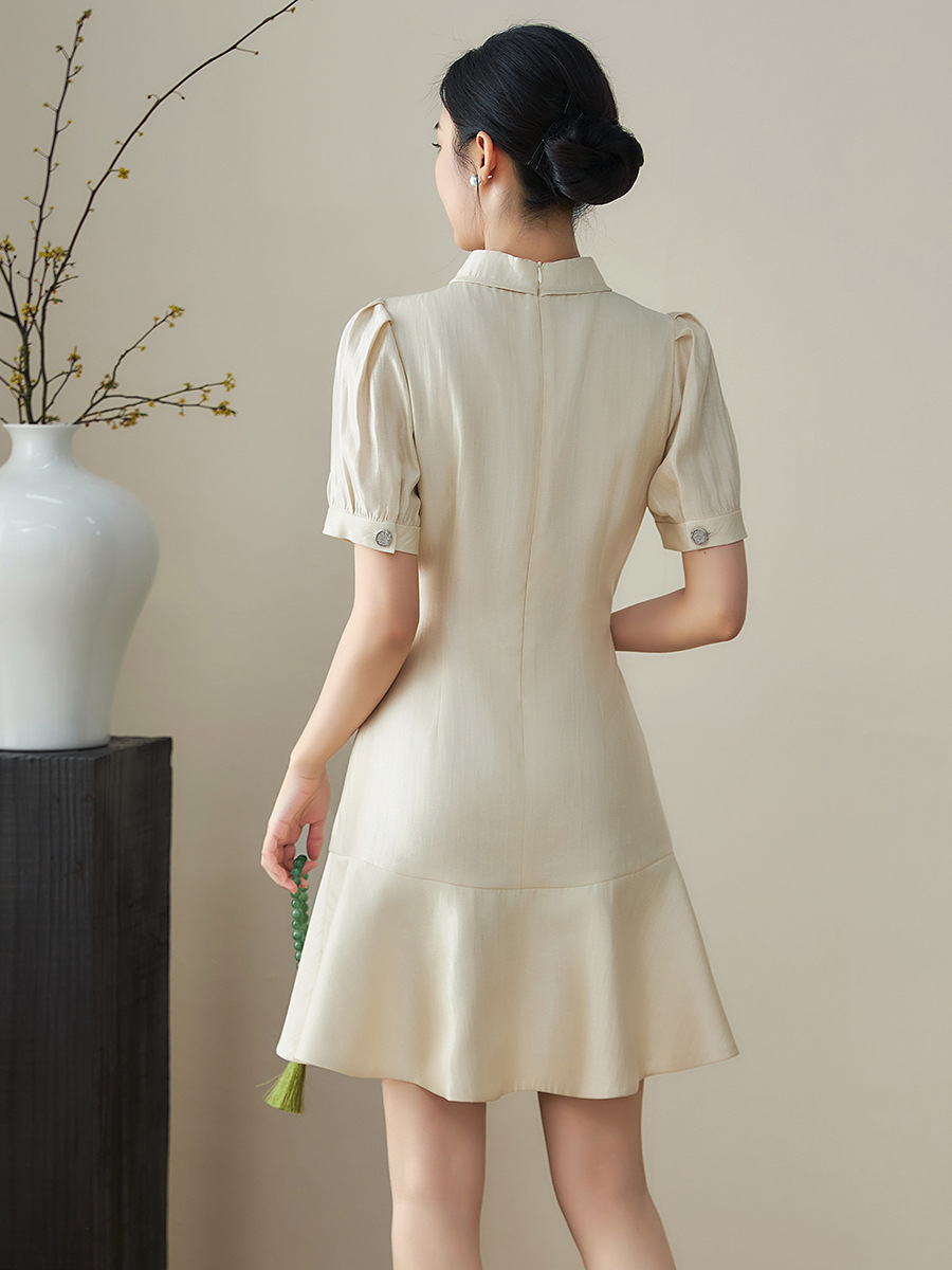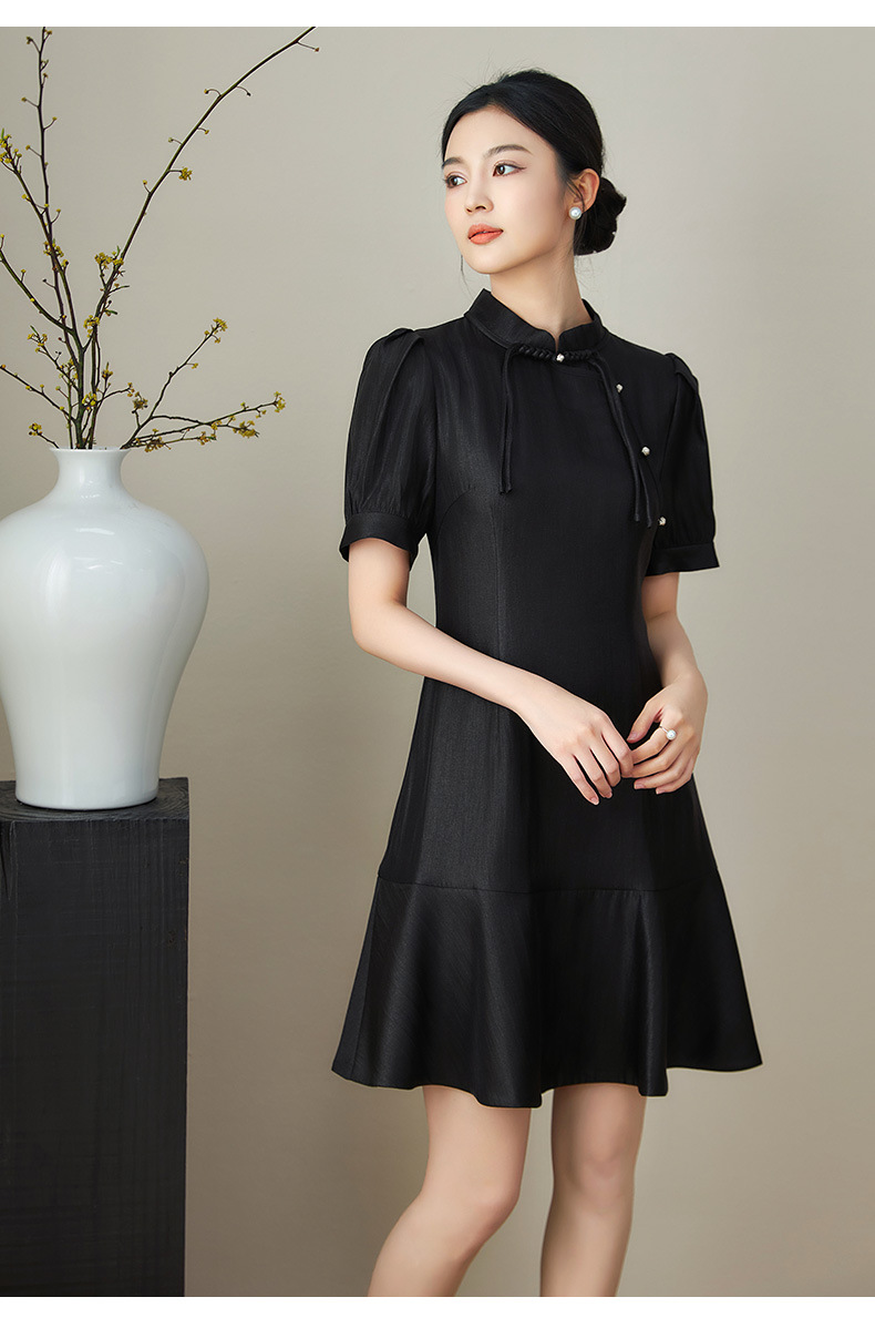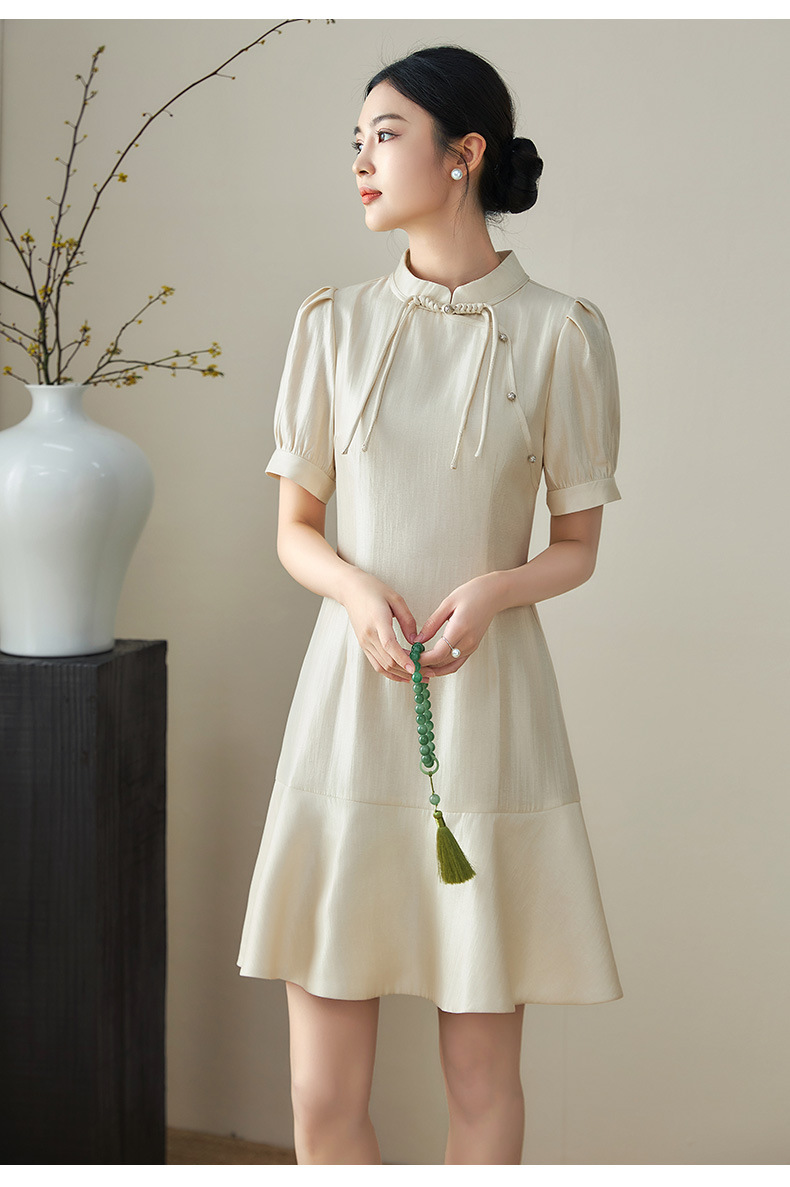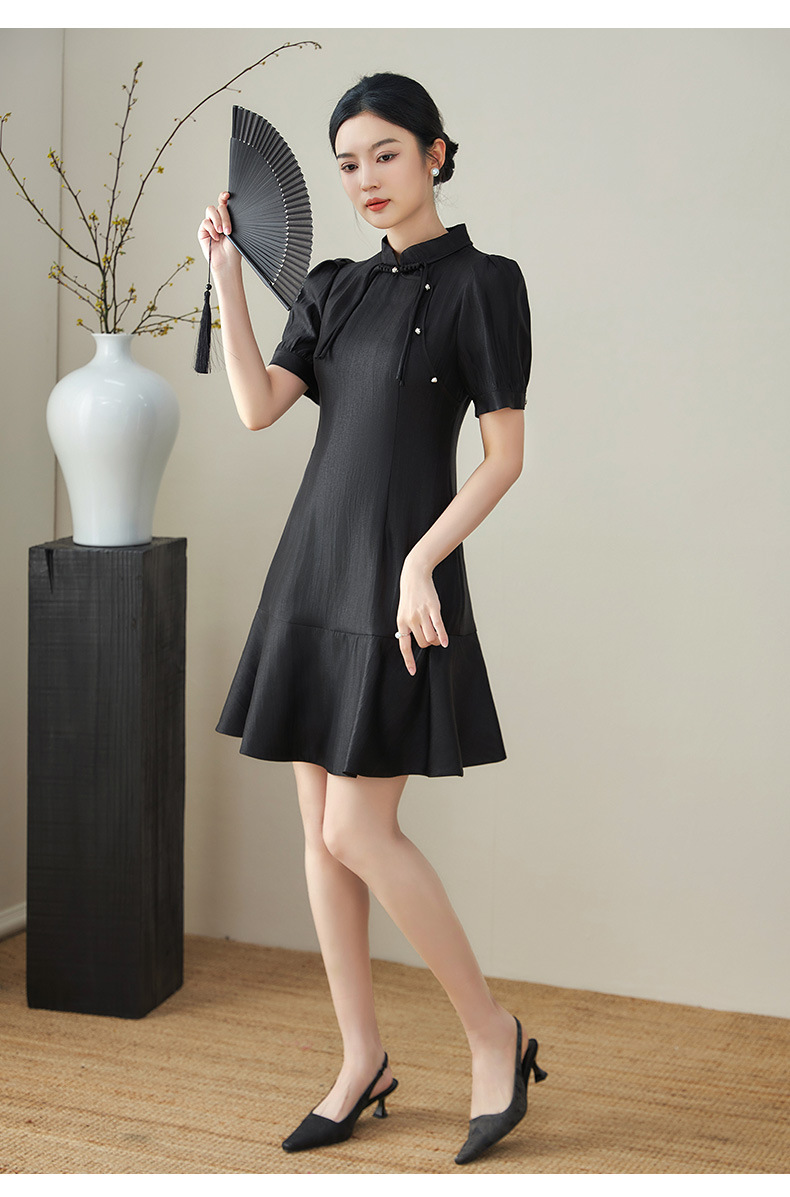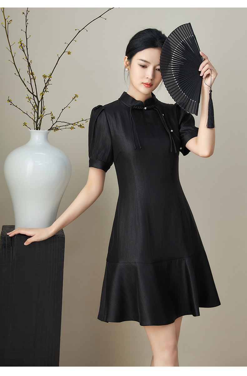 Chiếc đầm này kết hợp tinh hoa của nét đẹp xưa và hiện đại. Thiết kế cổ áo truyền thống cùng hào vải rủ tạo điểm nhấn thanh lịch. Form dáng ôm nhẹ cơ thể, mang đến vẻ dịu dàng và thoải mái cho người mặc. Bạn có thể diện nó trong những buổi gặp mặt thân mật hoặc các dịp cần sự lịch sự nhẹ nhàng. Chất vải mềm mại giúp bạn dễ dàng vận động mà vẫn giữ được nét duyên dáng. | Tên sản phẩm: Váy Đầm Liền Thân Nữ Phục Cổ Cổ Điển - Thời Trang Nữ | Mã sản phẩm: L2607 - Giá: 2.090.000đ | Mã nhà sản xuất: SHDY-G05Hình ảnh sản phẩm