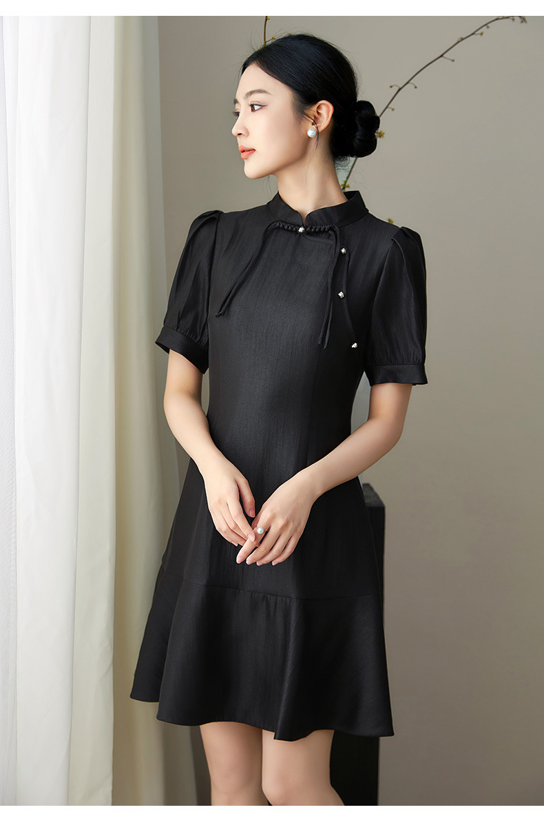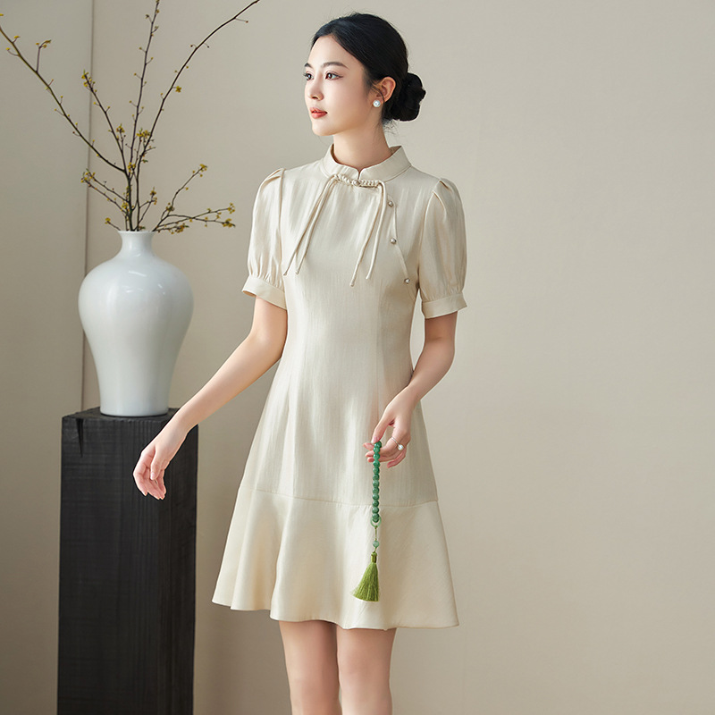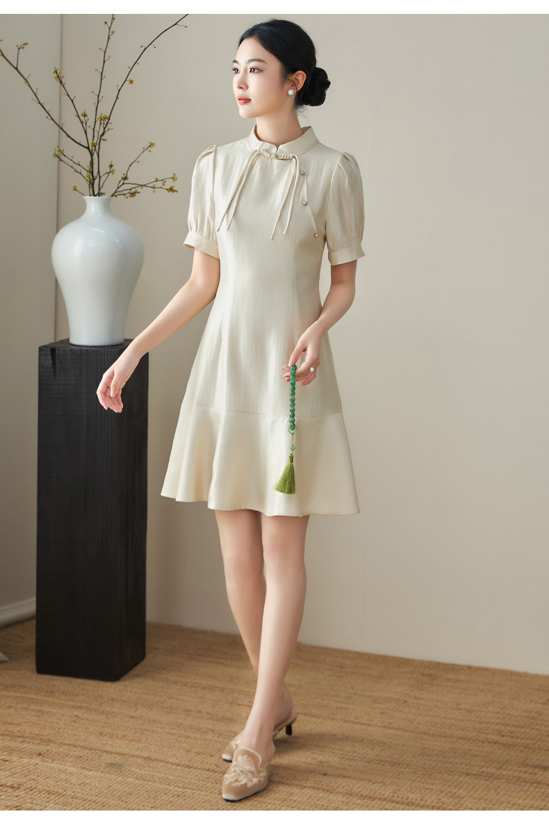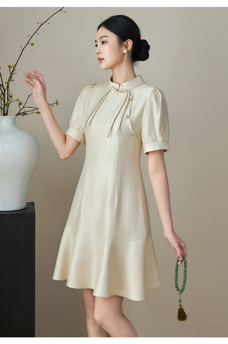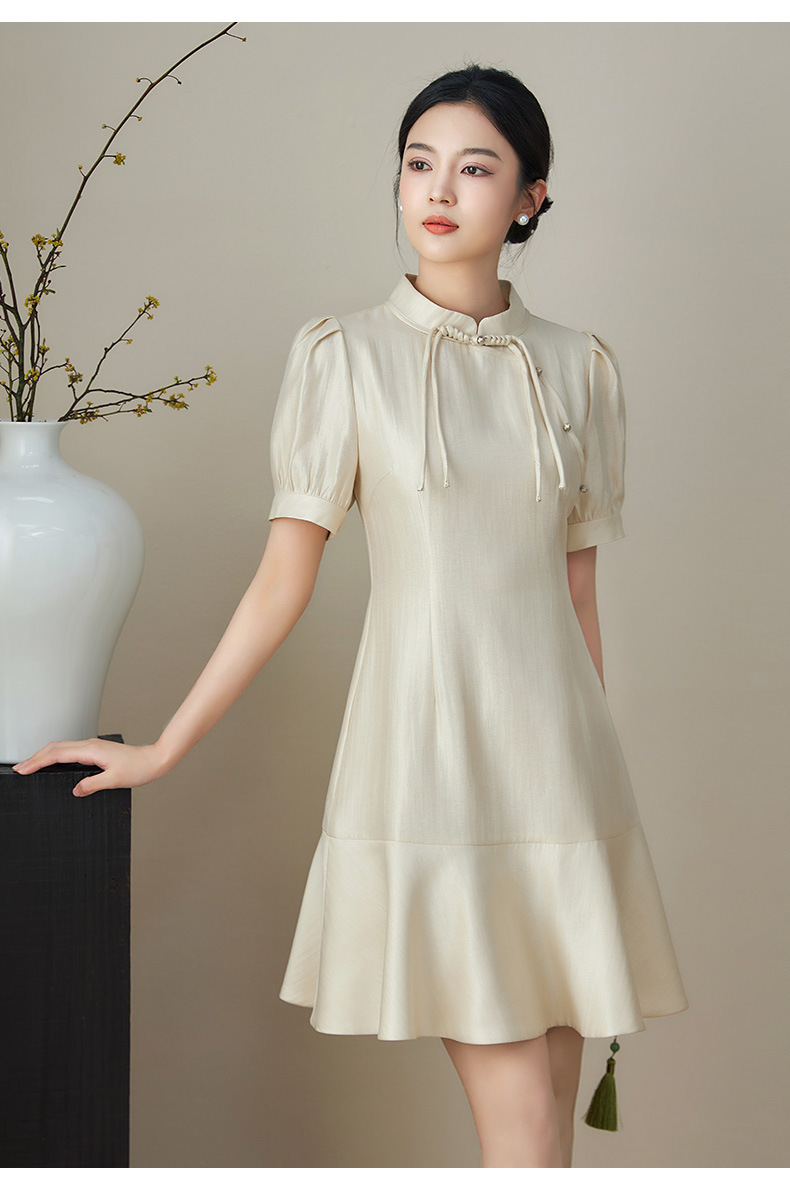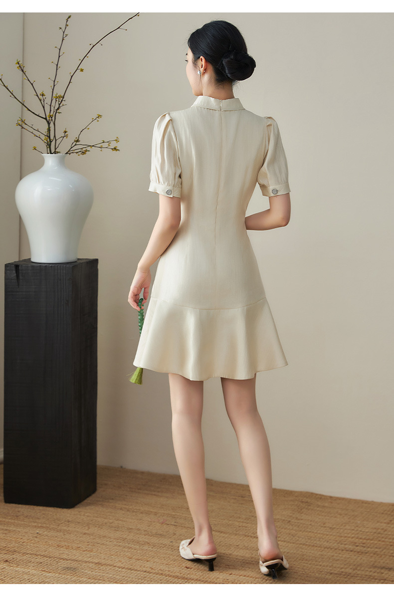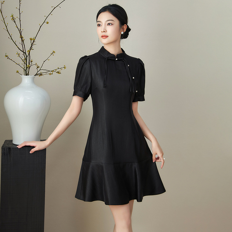 Chiếc đầm này kết hợp tinh hoa của nét đẹp xưa và hiện đại. Thiết kế cổ áo truyền thống cùng hào vải rủ tạo điểm nhấn thanh lịch. Form dáng ôm nhẹ cơ thể, mang đến vẻ dịu dàng và thoải mái cho người mặc. Bạn có thể diện nó trong những buổi gặp mặt thân mật hoặc các dịp cần sự lịch sự nhẹ nhàng. Chất vải mềm mại giúp bạn dễ dàng vận động mà vẫn giữ được nét duyên dáng. | Tên sản phẩm: Váy Đầm Liền Thân Nữ Phục Cổ Cổ Điển - Thời Trang Nữ | Mã sản phẩm: L2607 - Giá: 2.090.000đ | Mã nhà sản xuất: SHDY-G05Hình ảnh sản phẩm