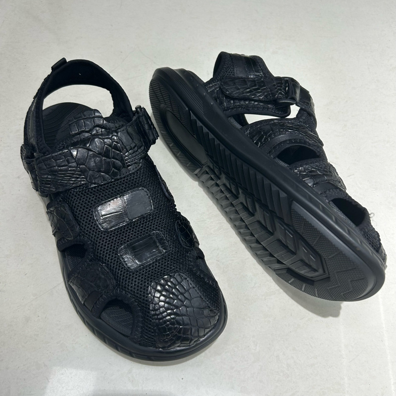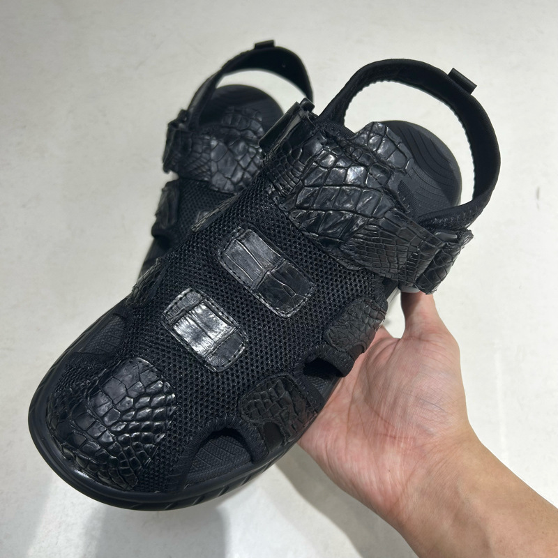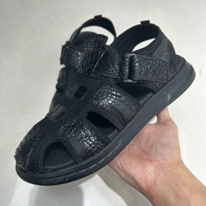 Dép đi biển nam kiểu mới, được làm từ chất liệu da cá sấu thật, mang đến cảm giác bền chắc và thoải mái. Thiết kế mang phong cách giải trí, dễ dàng kết hợp với nhiều loại trang phục khác nhau. Màu đen thời thượng giúp đôi chân bạn trông lịch sự hơn. Sản phẩm có khả năng chống mài mòn tốt, phù hợp cho những buổi dạo biển hoặc sử dụng hằng ngày. Chỉ cần xỏ vào và bạn đã sẵn sàng để bước đi. | Tên sản phẩm: Giày Dép Sandal Nam - Giày Dép Nam | Mã sản phẩm: L2618 - Giá: 2.310.000đ | Mã nhà sản xuất: GUREG-G05Hình ảnh sản phẩm