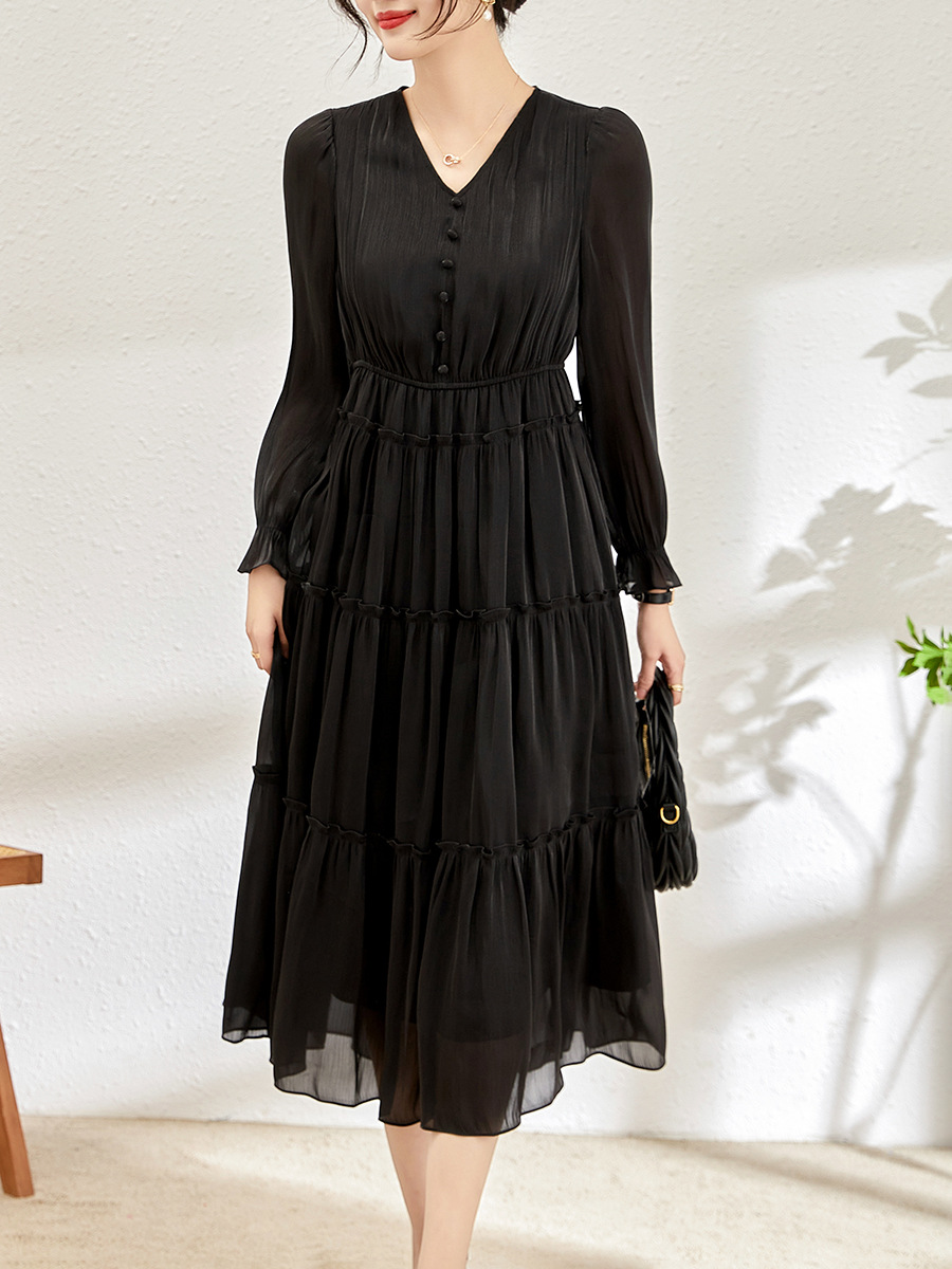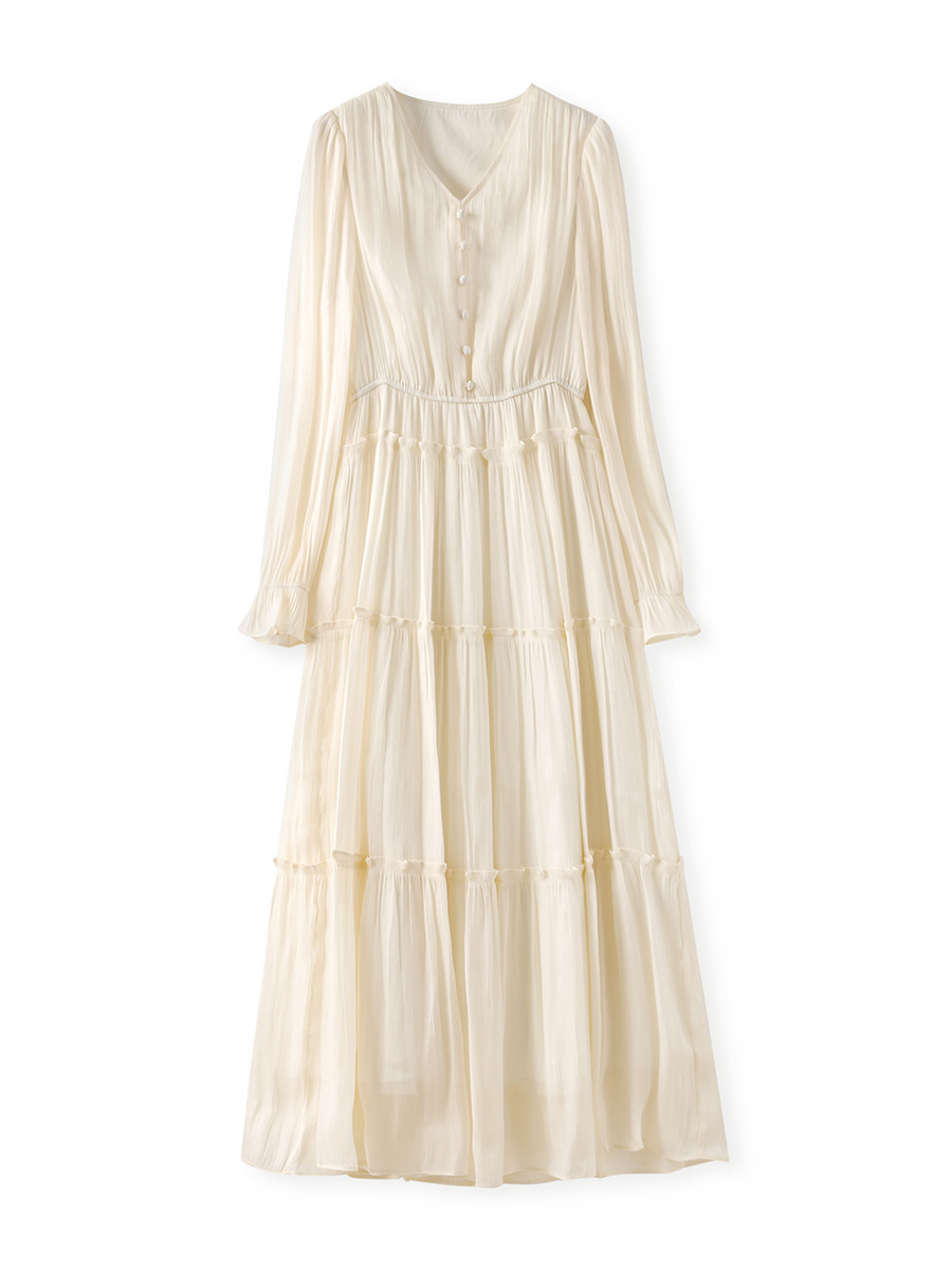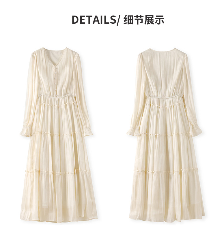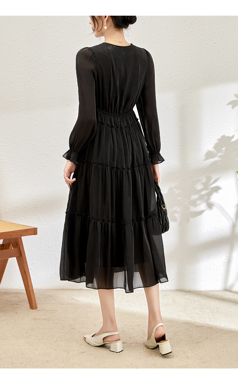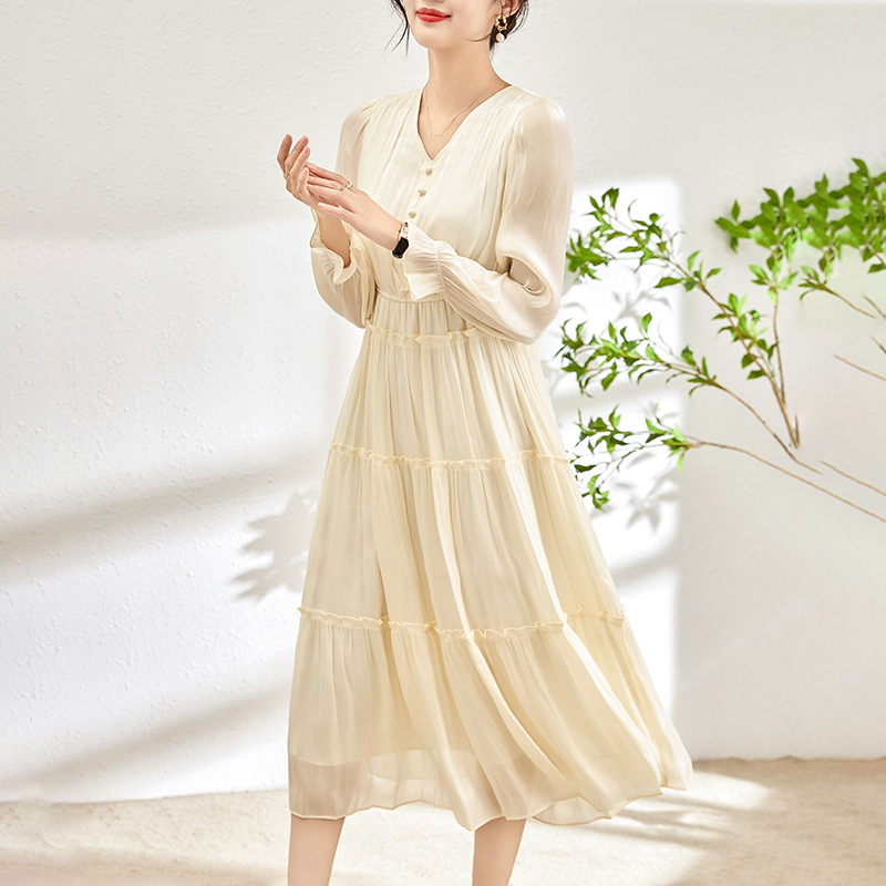 Chiếc đầm ôm dáng tôn lên những đường nét cơ thể một cách dịu dàng. Cổ chữ V giúp phần cổ trông thanh thoát hơn. Điểm nổi bật là phần viền tay và vạt áo được cách điệu như những cánh sen, tạo nét duyên dáng. Chất vải mỏng nhẹ có ánh ngọc tr lấp lánh dưới ánh đèn. Mặc kèm áo khoác mỏng hoặc phụ kiện đơn giản để phù hợp cho nhiều dịp. | Tên sản phẩm: Váy Đầm Liền Thân Nữ Cổ Chữ V - Thời Trang Nữ | Mã sản phẩm: L2623 - Giá: 2.060.000đ | Mã nhà sản xuất: SHDY-G05Hình ảnh sản phẩm